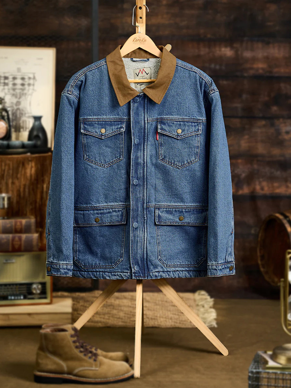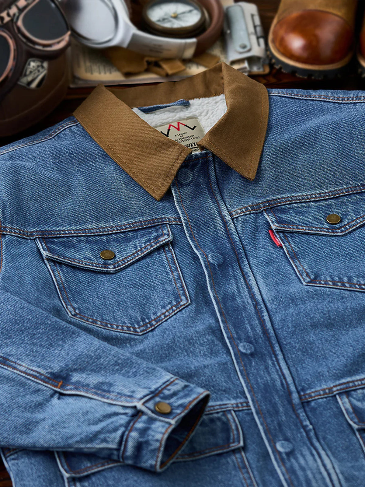 Denim Jacket with Symmetrical Pocket Stitching