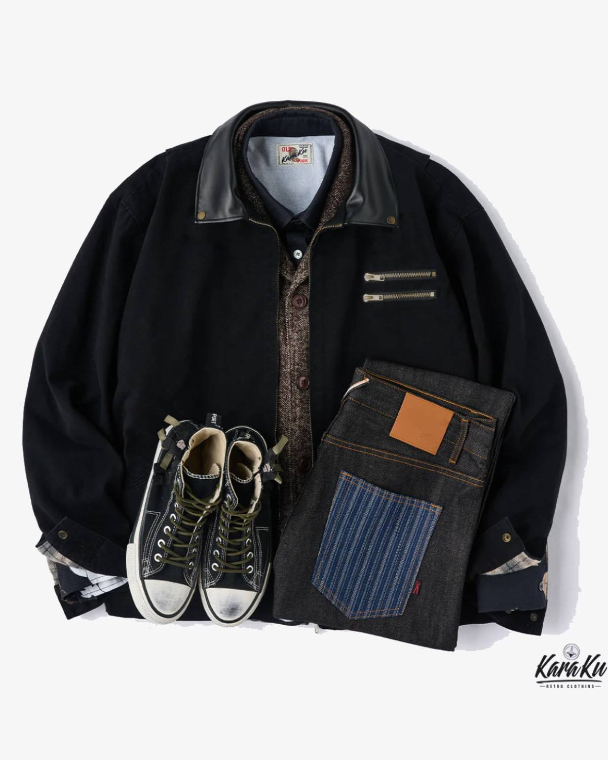 The Karaku Detroit Jacket represents a timeless blend of rugged utility and understated style. With its origins in American workwear, this jacket style became an iconic staple in the mid-20th century, favored by workers and outdoor enthusiasts for its durability, warmth, and practical design.