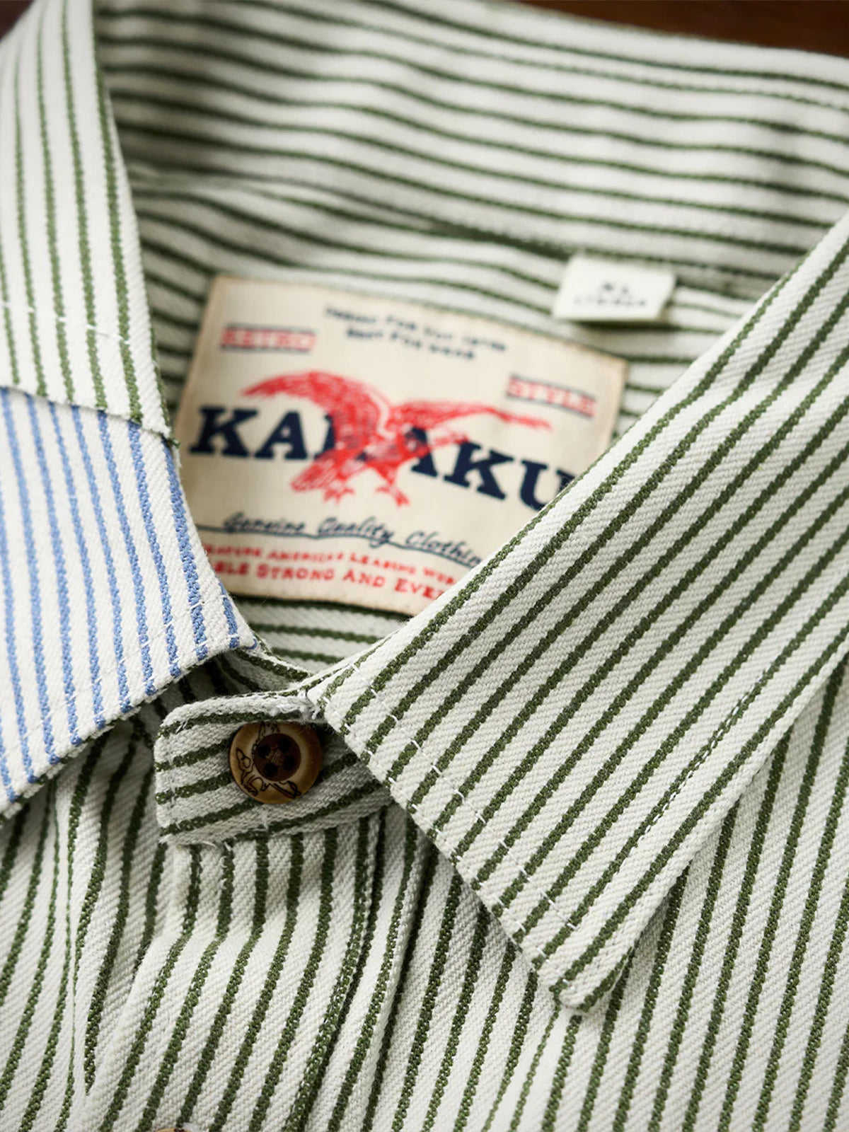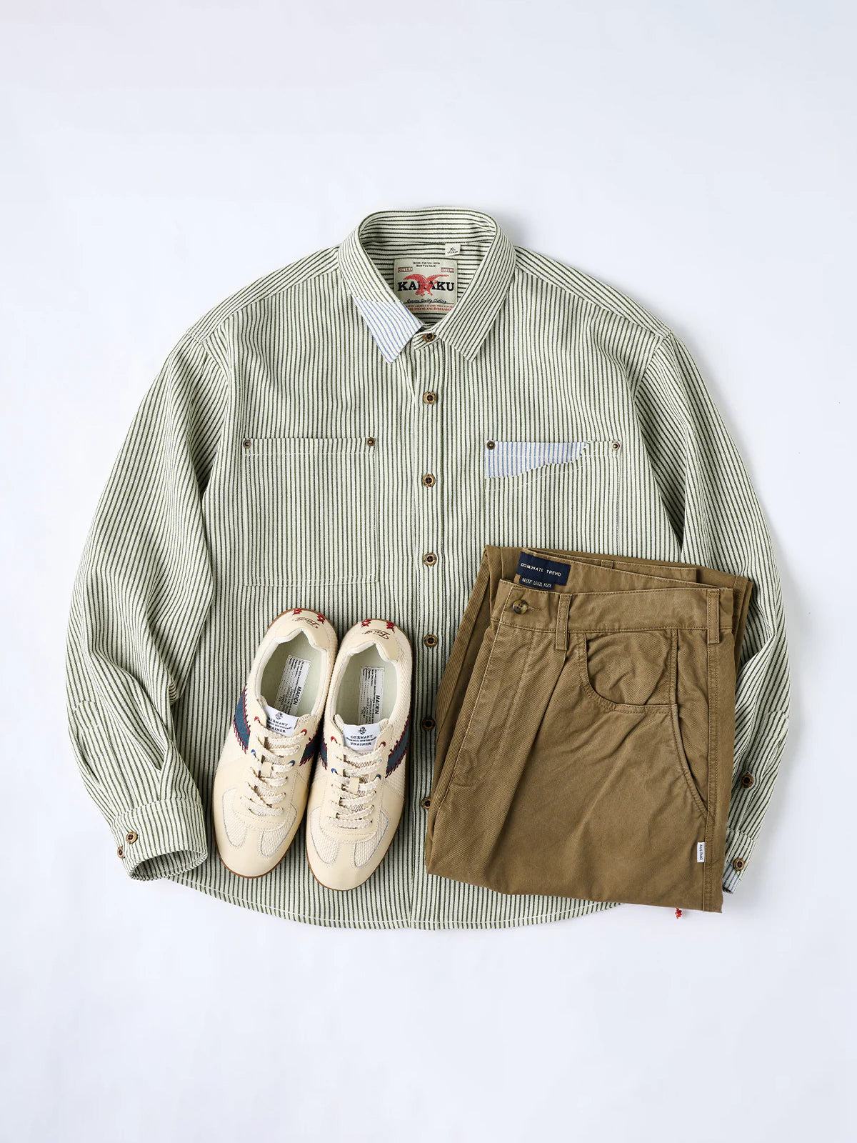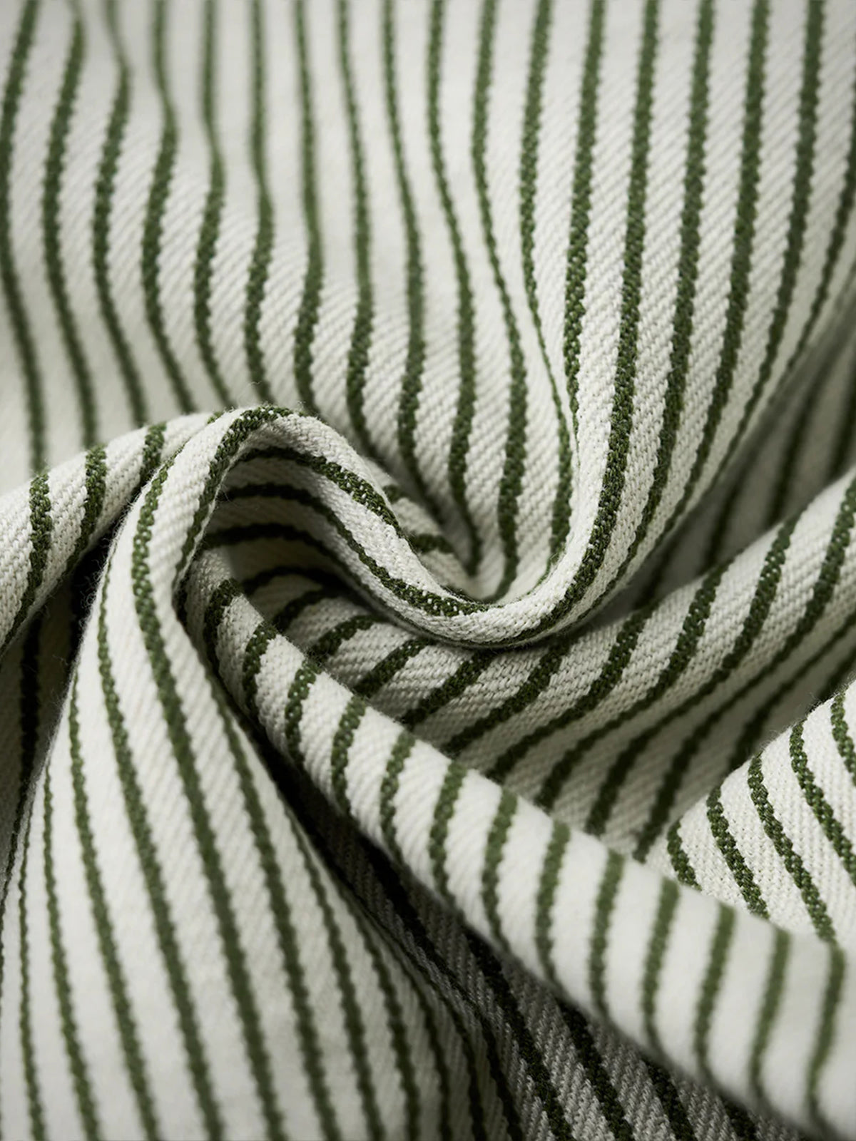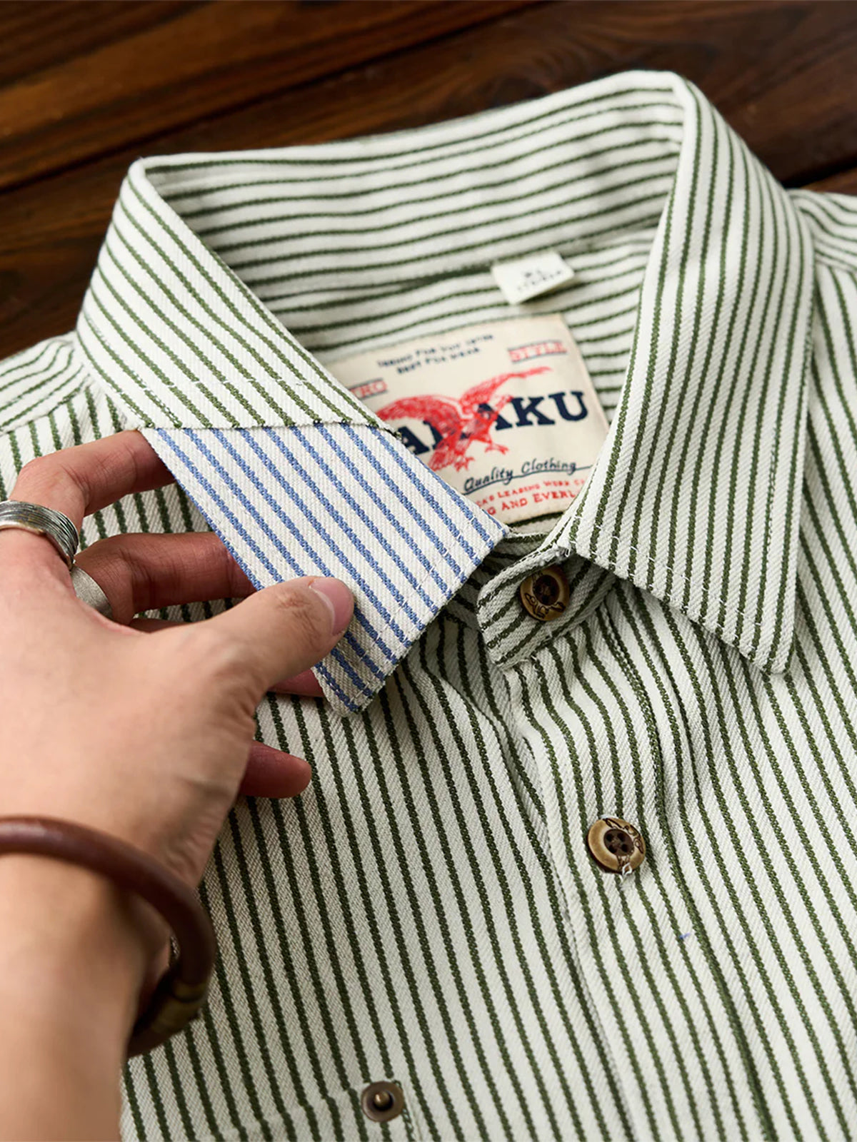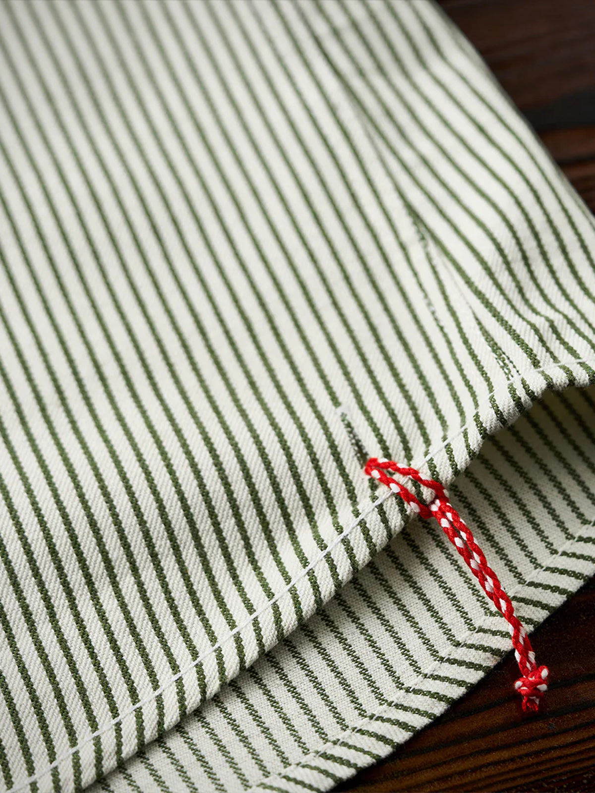 Yarn-Dyed Stripe Work Shirt with Red & White Drawcord and Contrast Collar, Cuffs & Pockets
