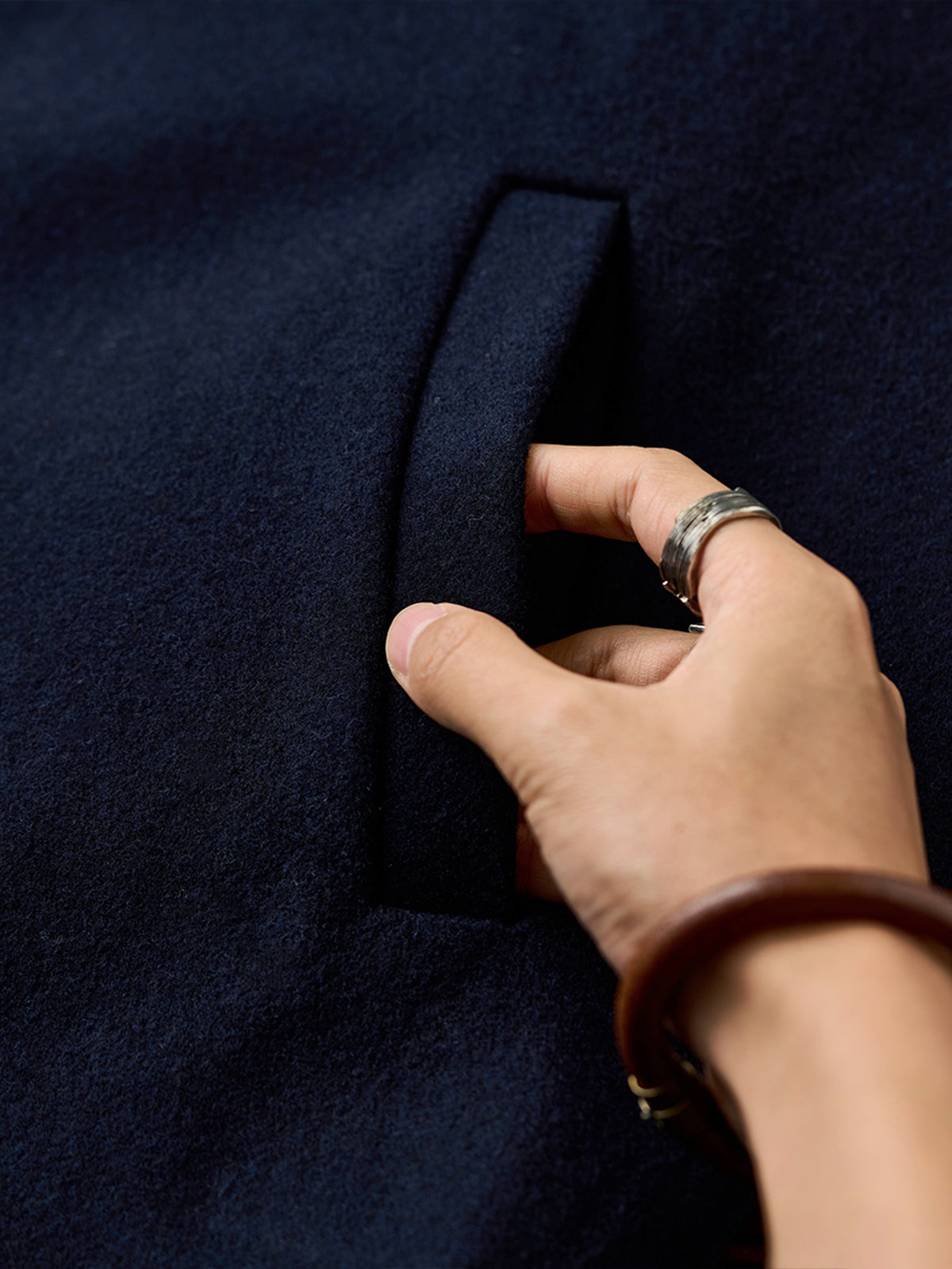 Inspired by 18th-century sailors, it features horn buttons with the "Nelson’s Anchor" motif for a touch of heritage. Rooted in naval tradition, the double-breasted shawl collar peacoat blends timeless style with functionality. Crafted from thick, high-quality fabric, it offers warmth and sophistication for autumn and winter. Its versatile design transitions effortlessly between formal and casual looks.