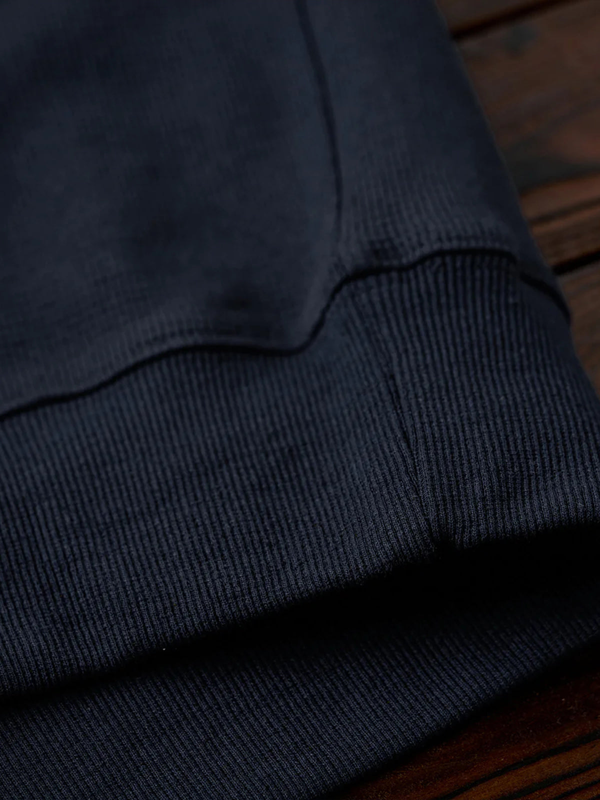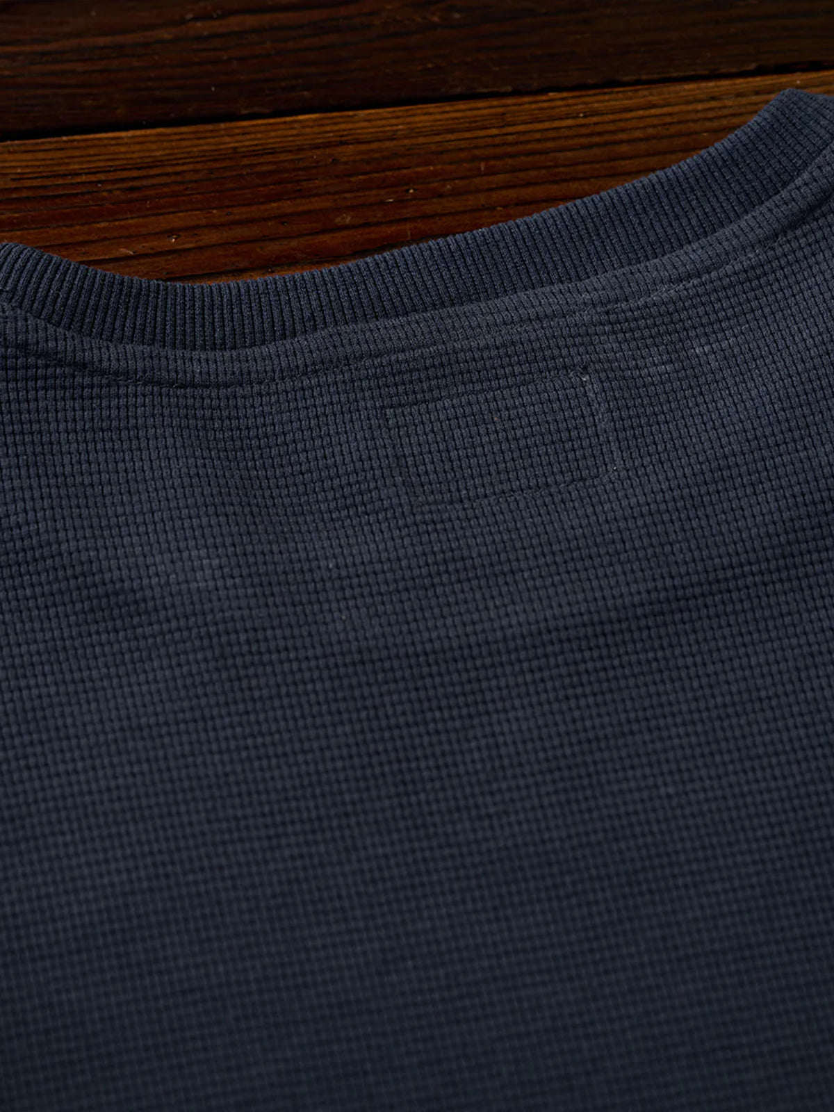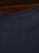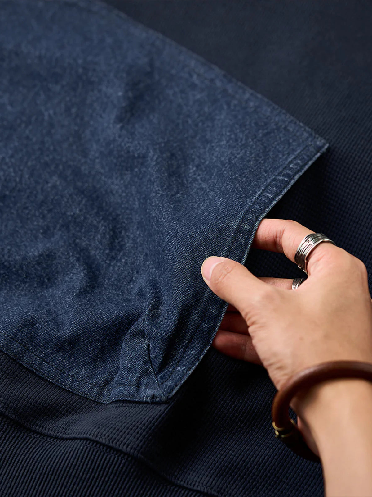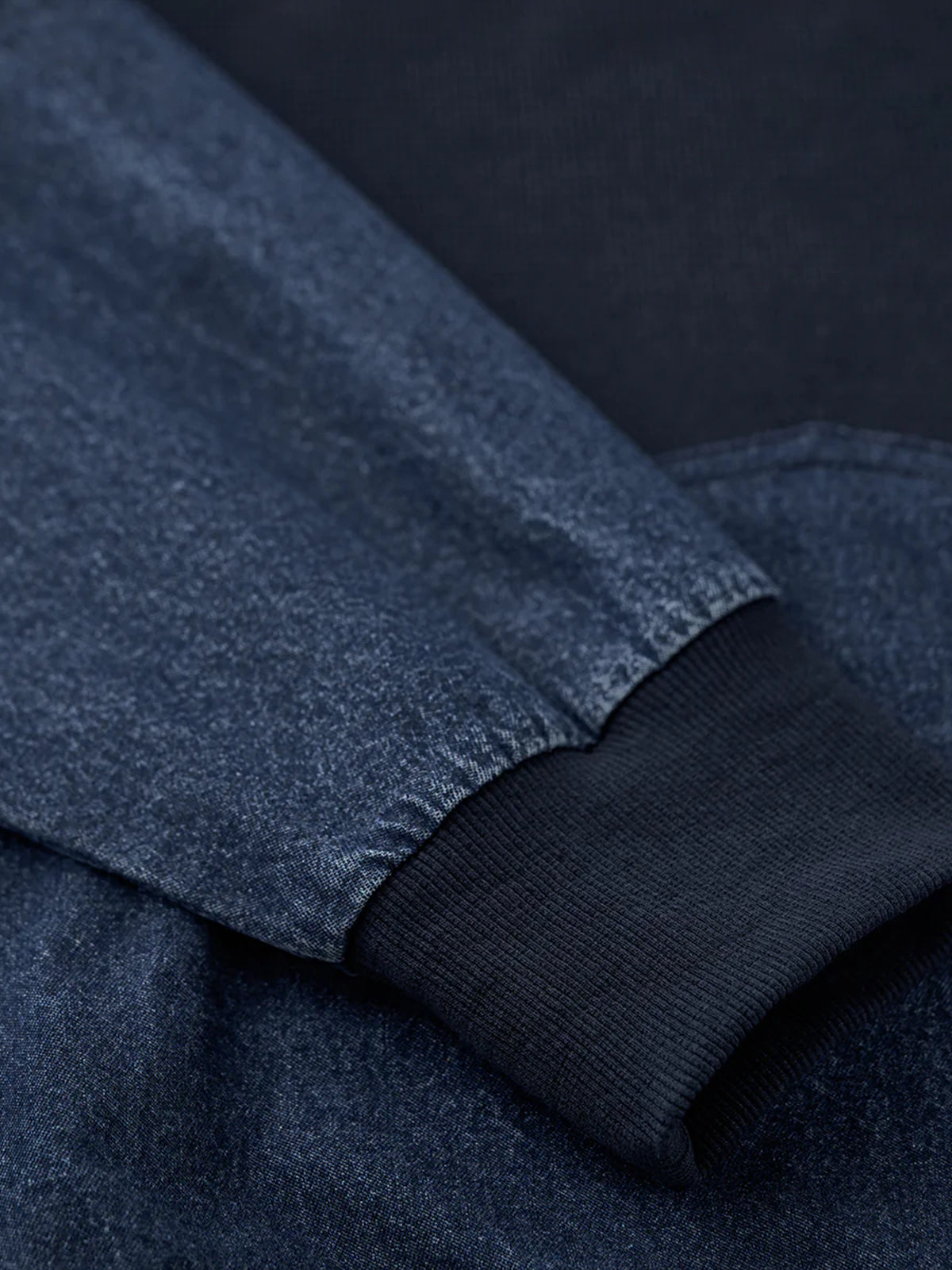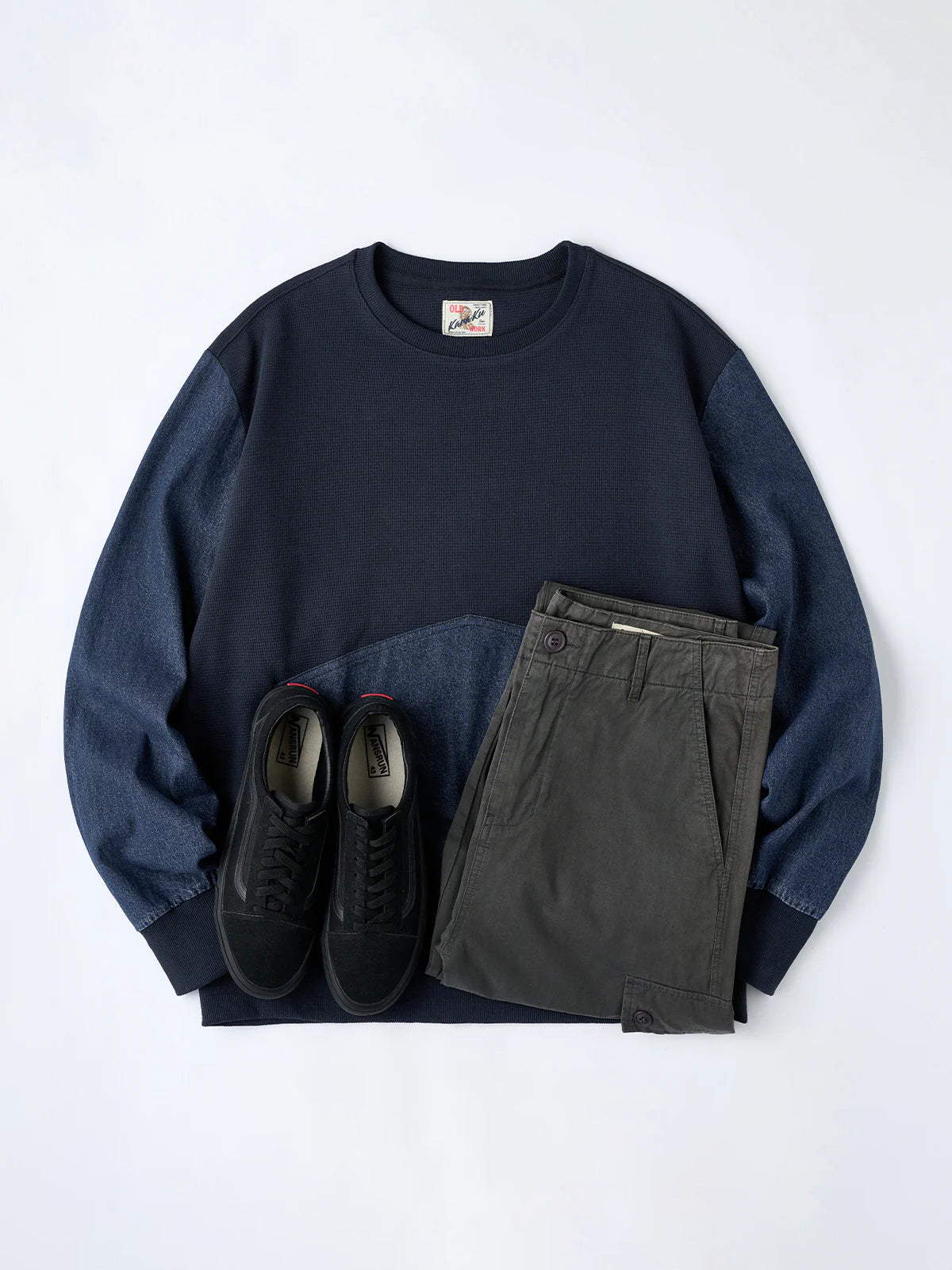 Waffle Pullover Sweatshirt with Washed Denim Sleeve and Pocket Panels