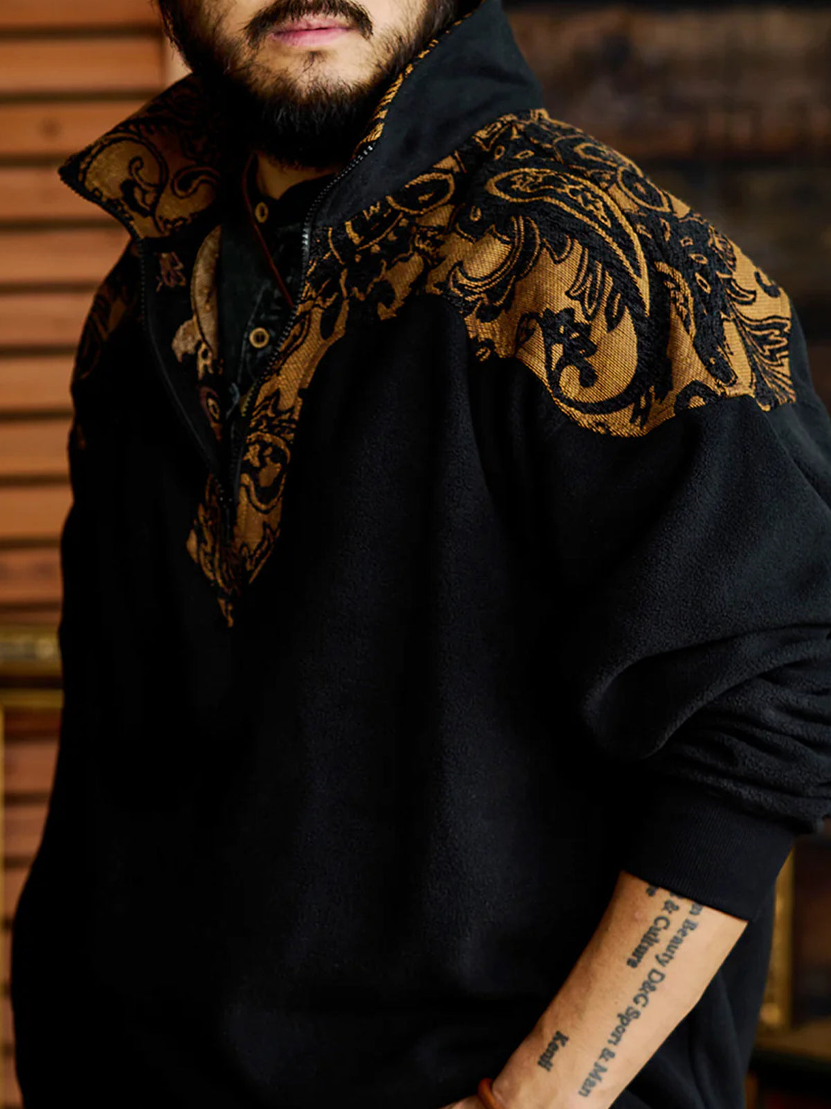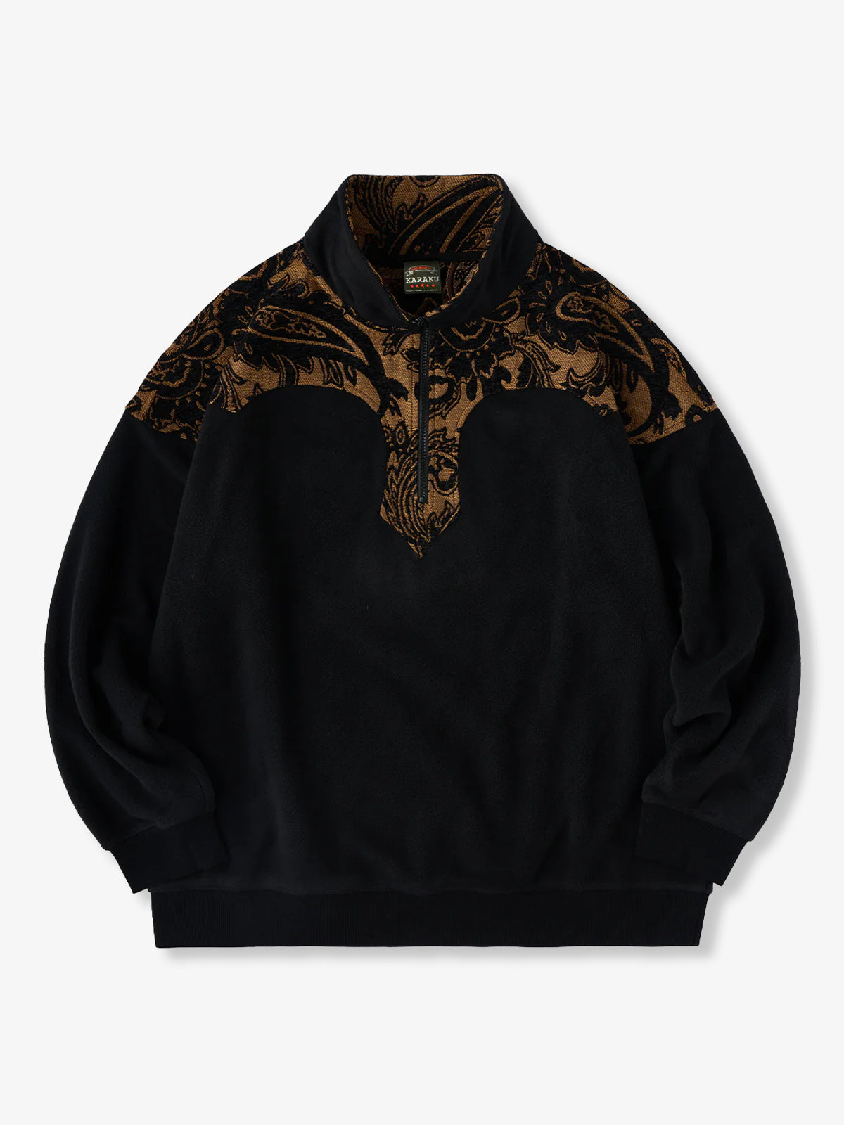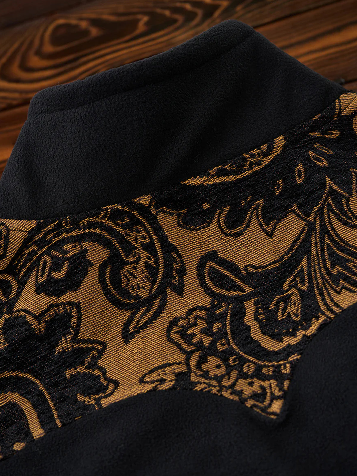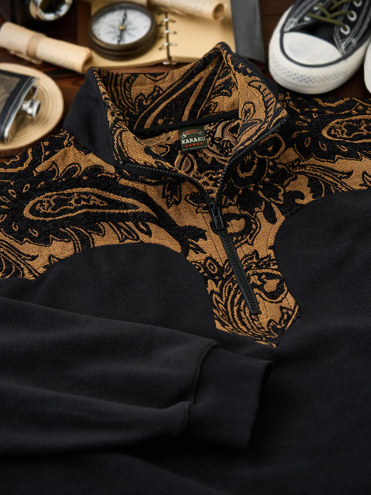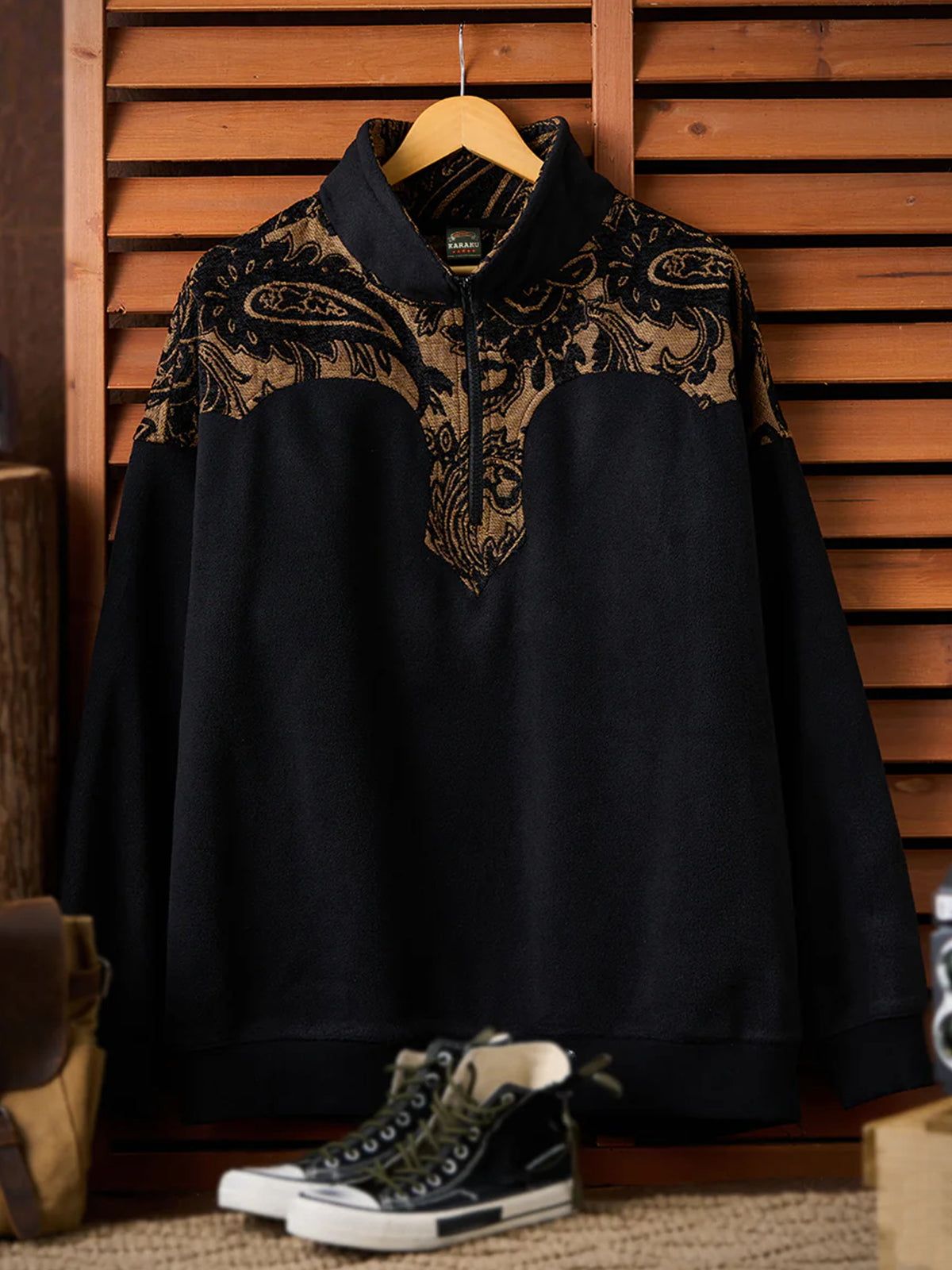 Paisley Pattern Mixed Material Western Half-Zip Fleece Pullover