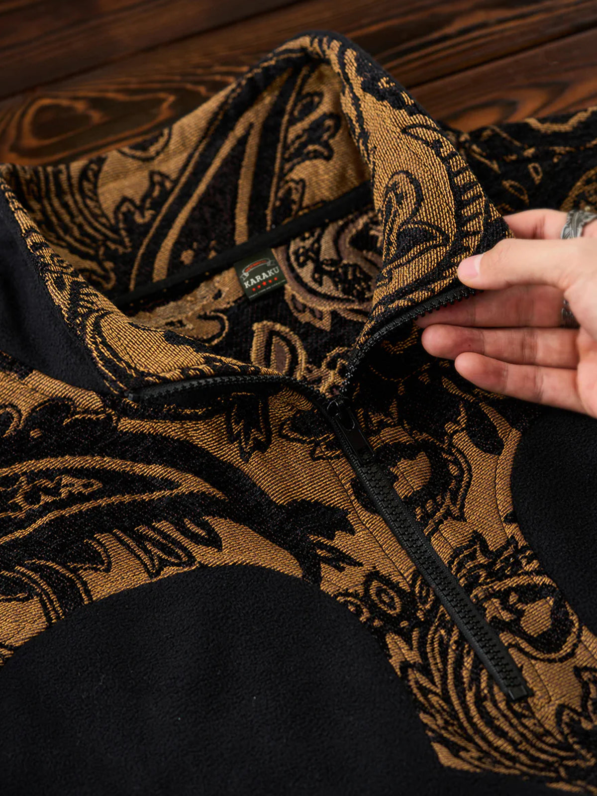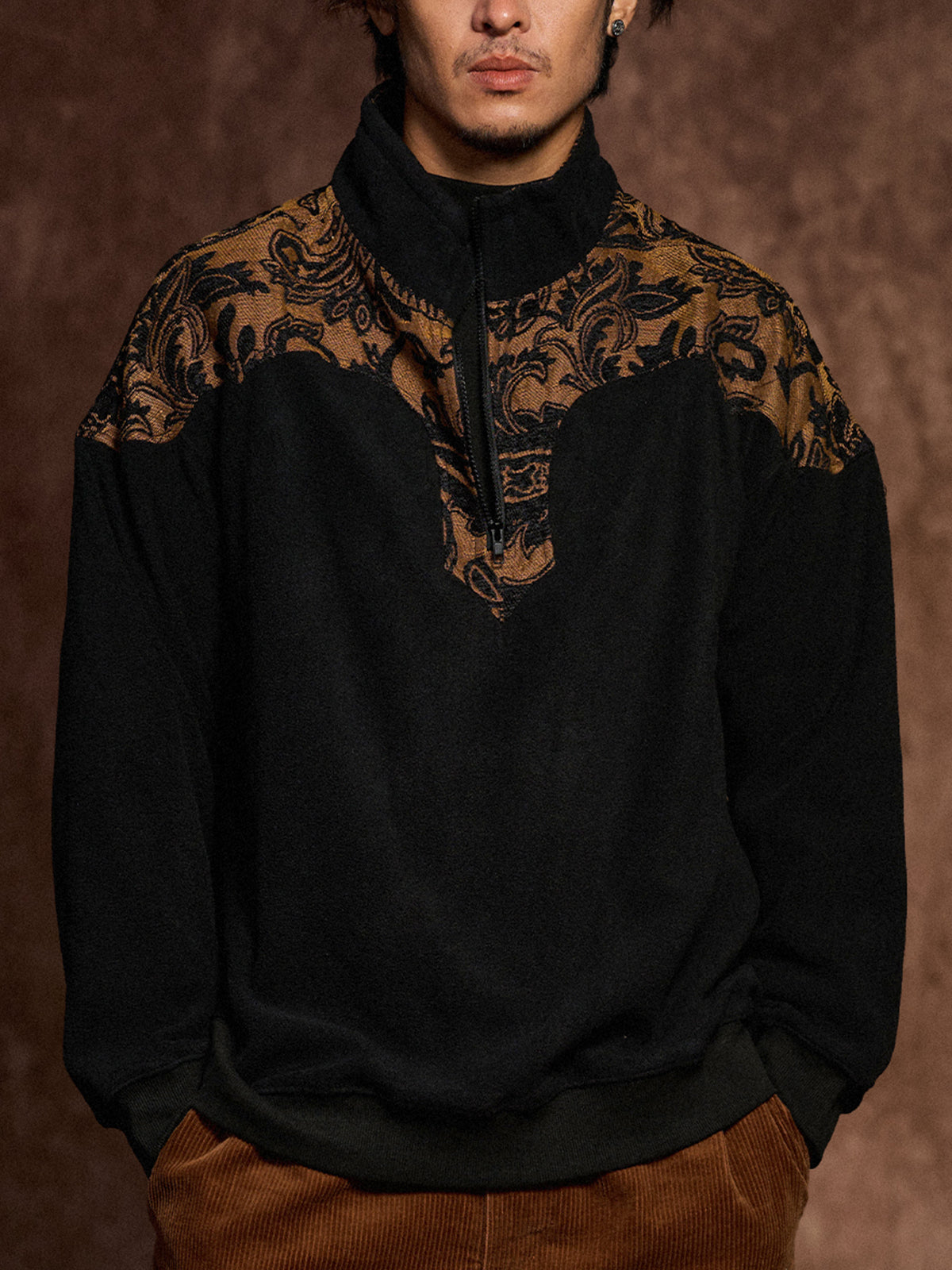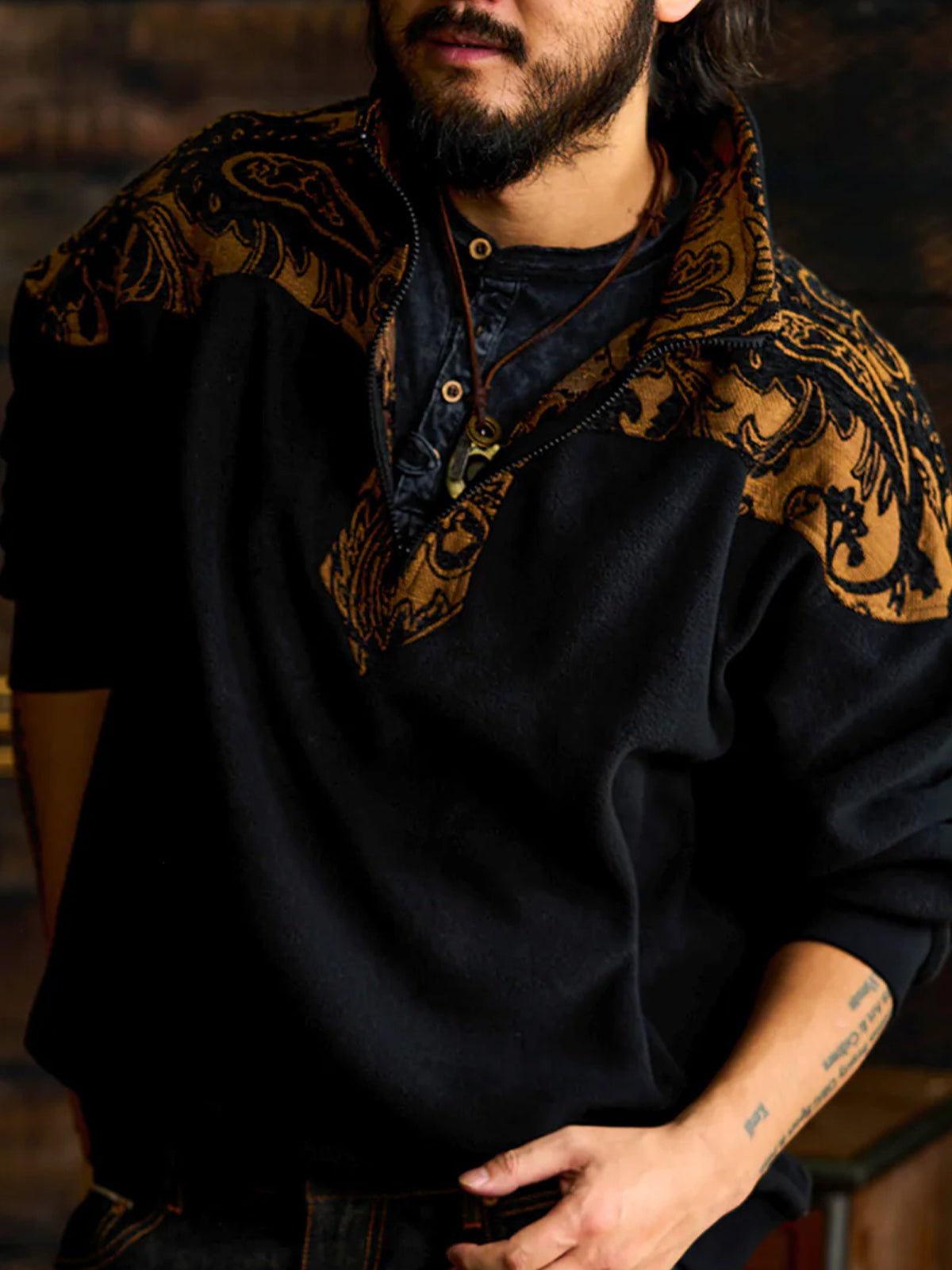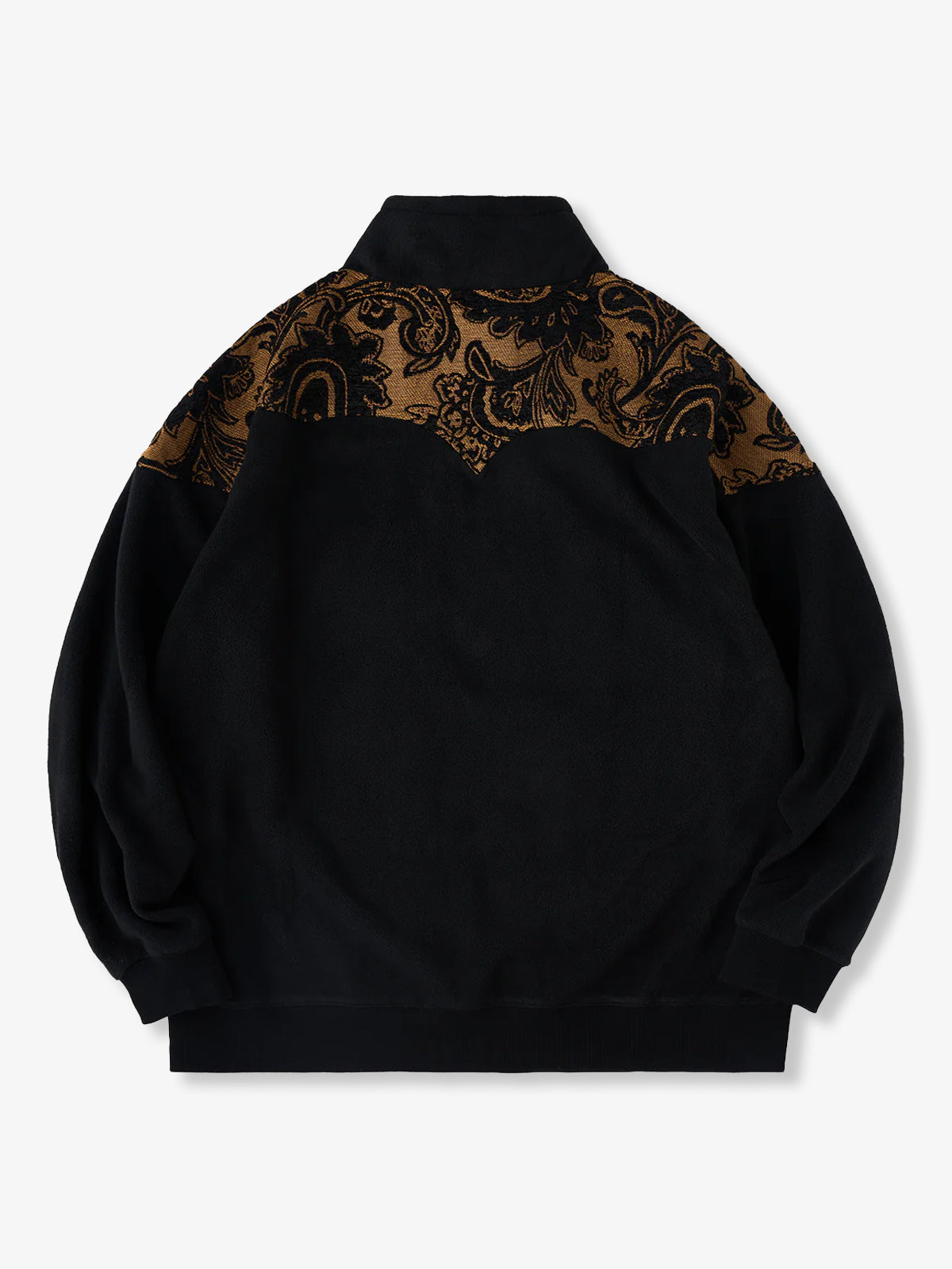 Paisley Pattern Mixed Material Western Half-Zip Fleece Pullover