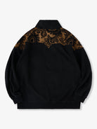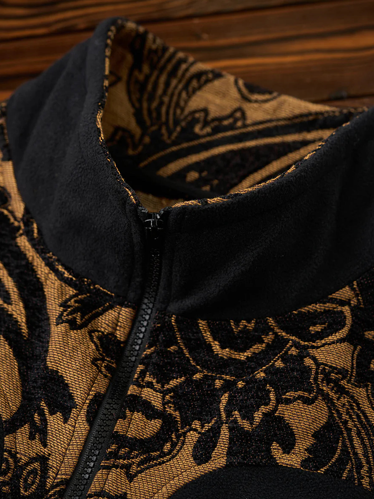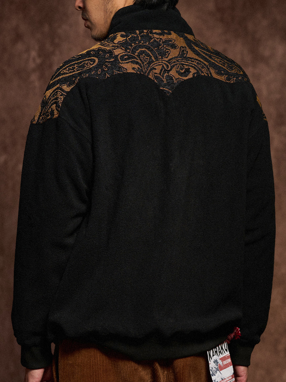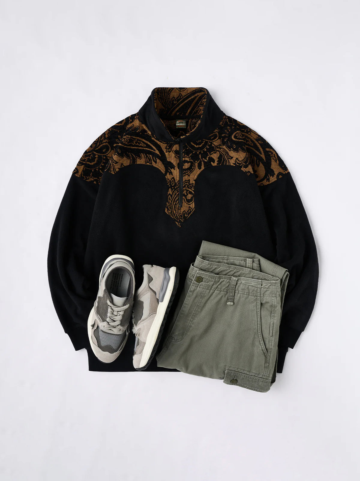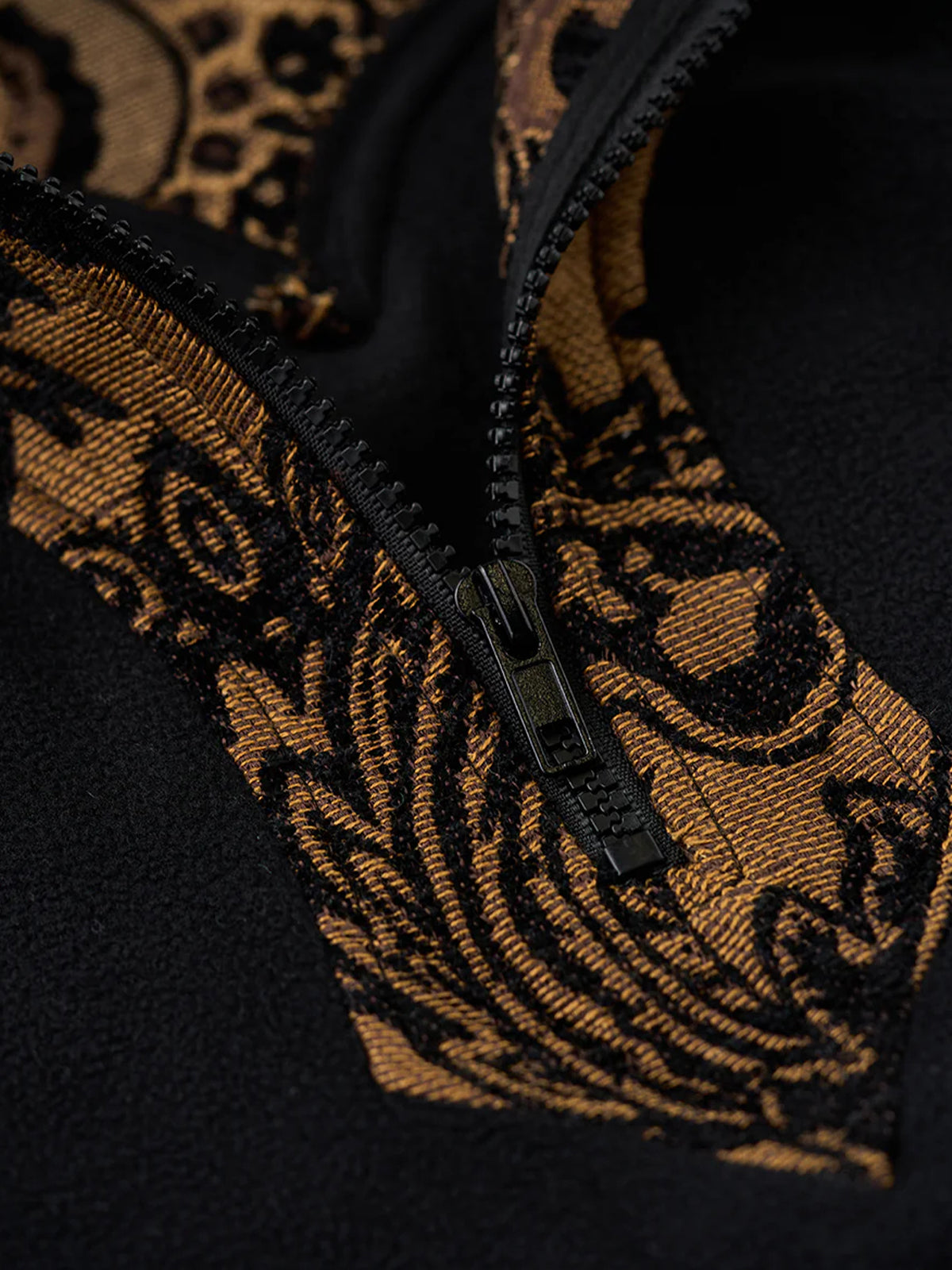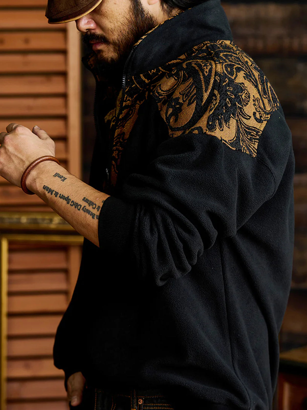Paisley Pattern Mixed Material Western Half-Zip Fleece Pullover