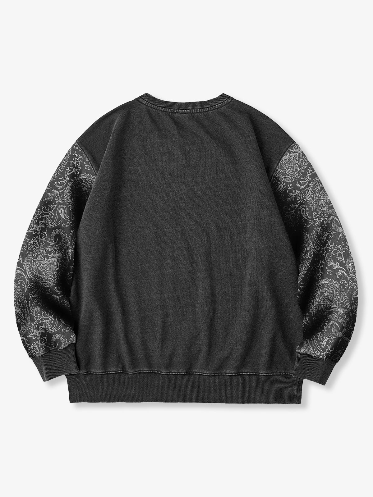 Washed Sweatshirt with Paisley Denim Sleeves & V-Gusset Detail