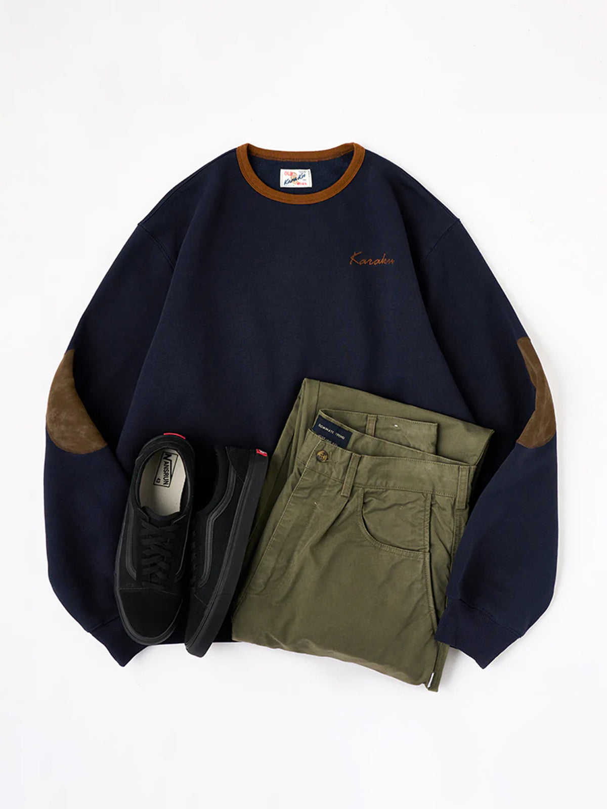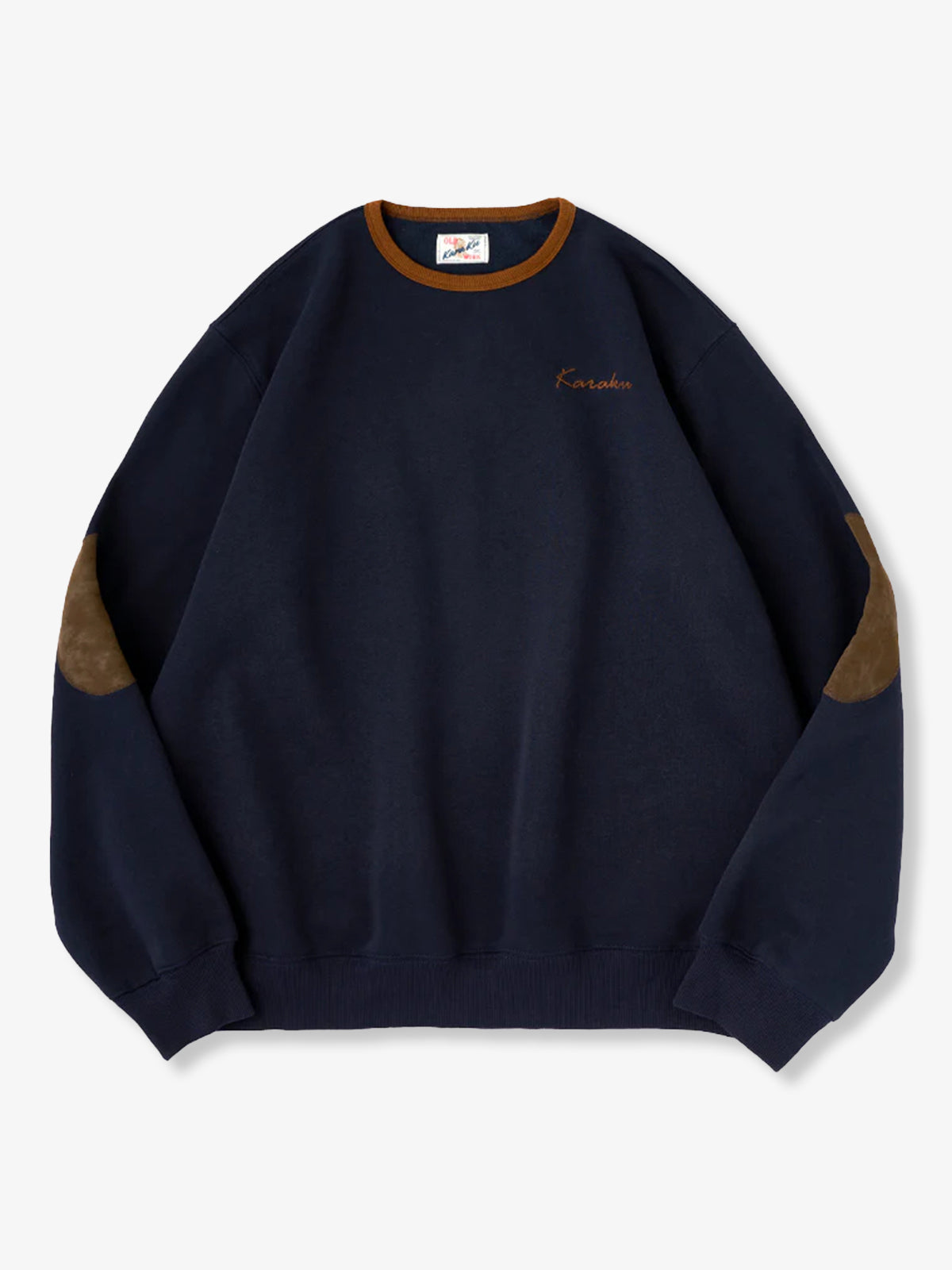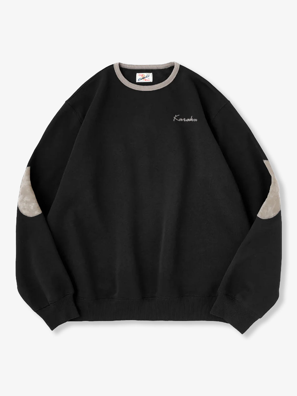 "KaraKu" Embroidery Elbow Suede Patches Brushed Cotton Sweatshirt
