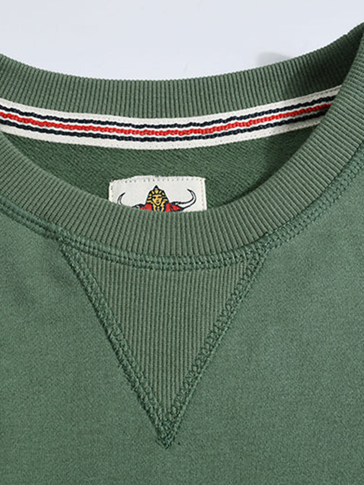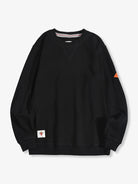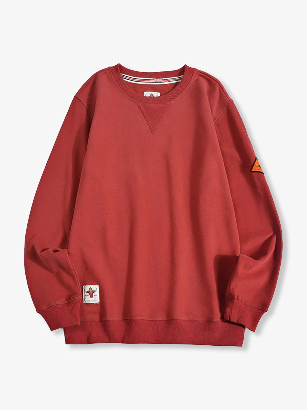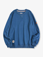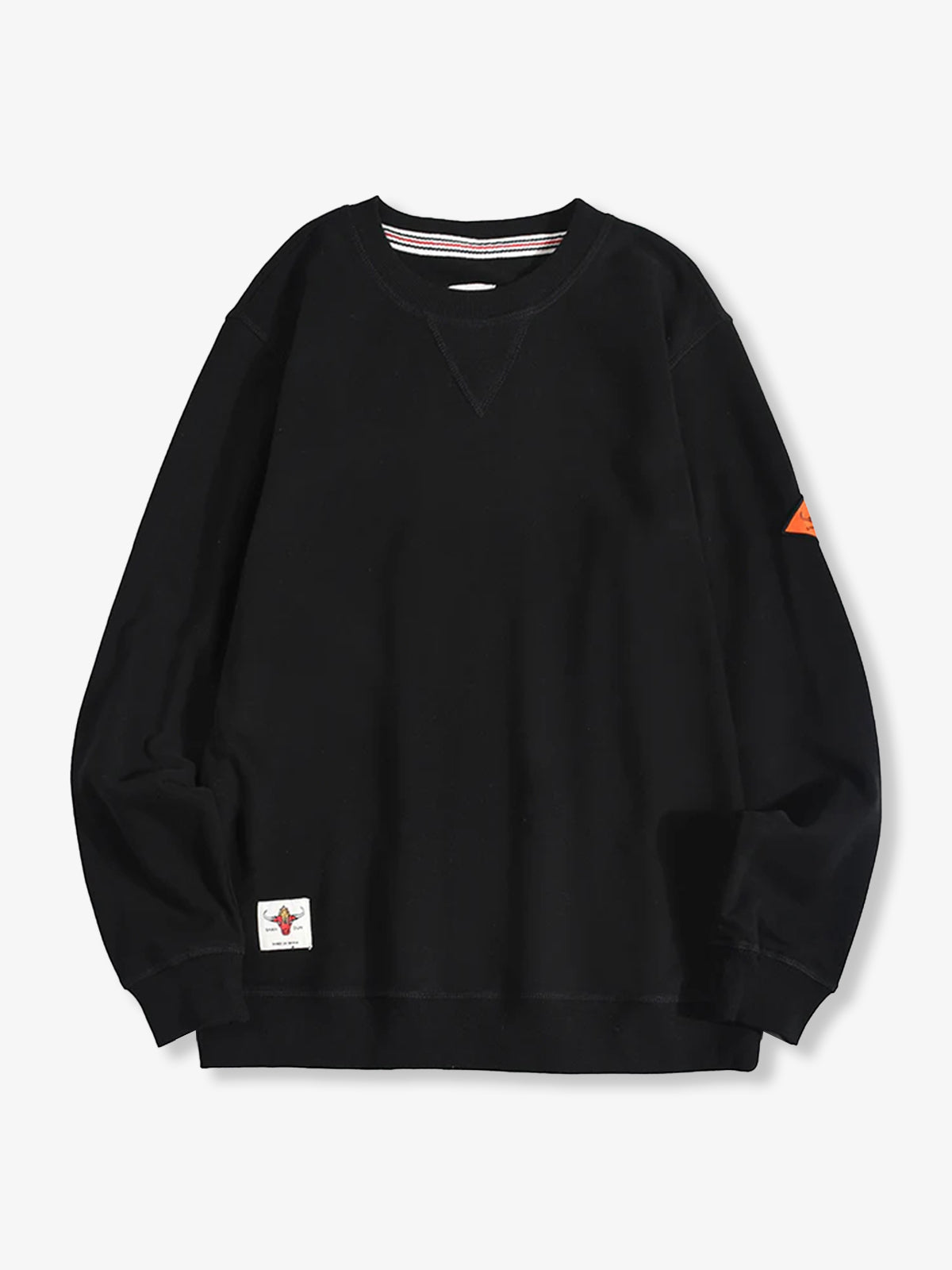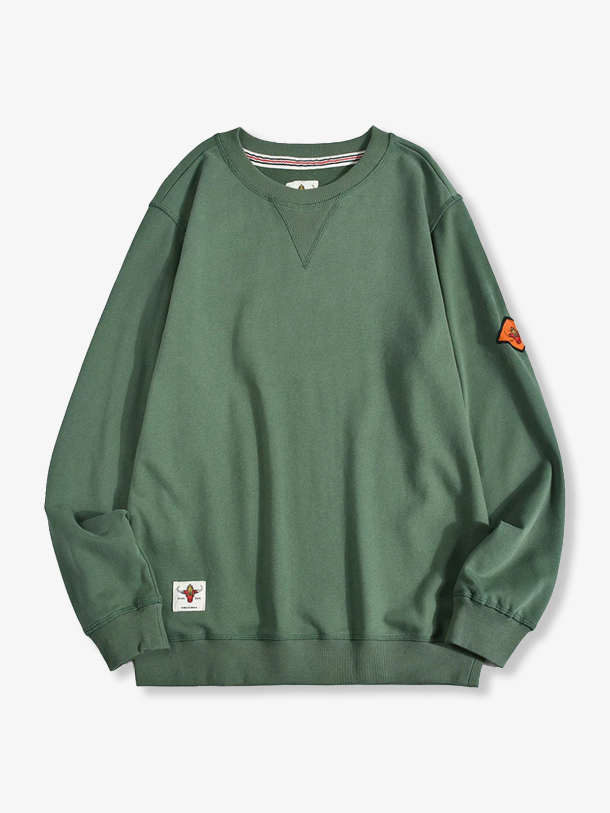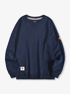 Navy Crewneck Sweatshirt with Sleeve Patch and Terry Lining