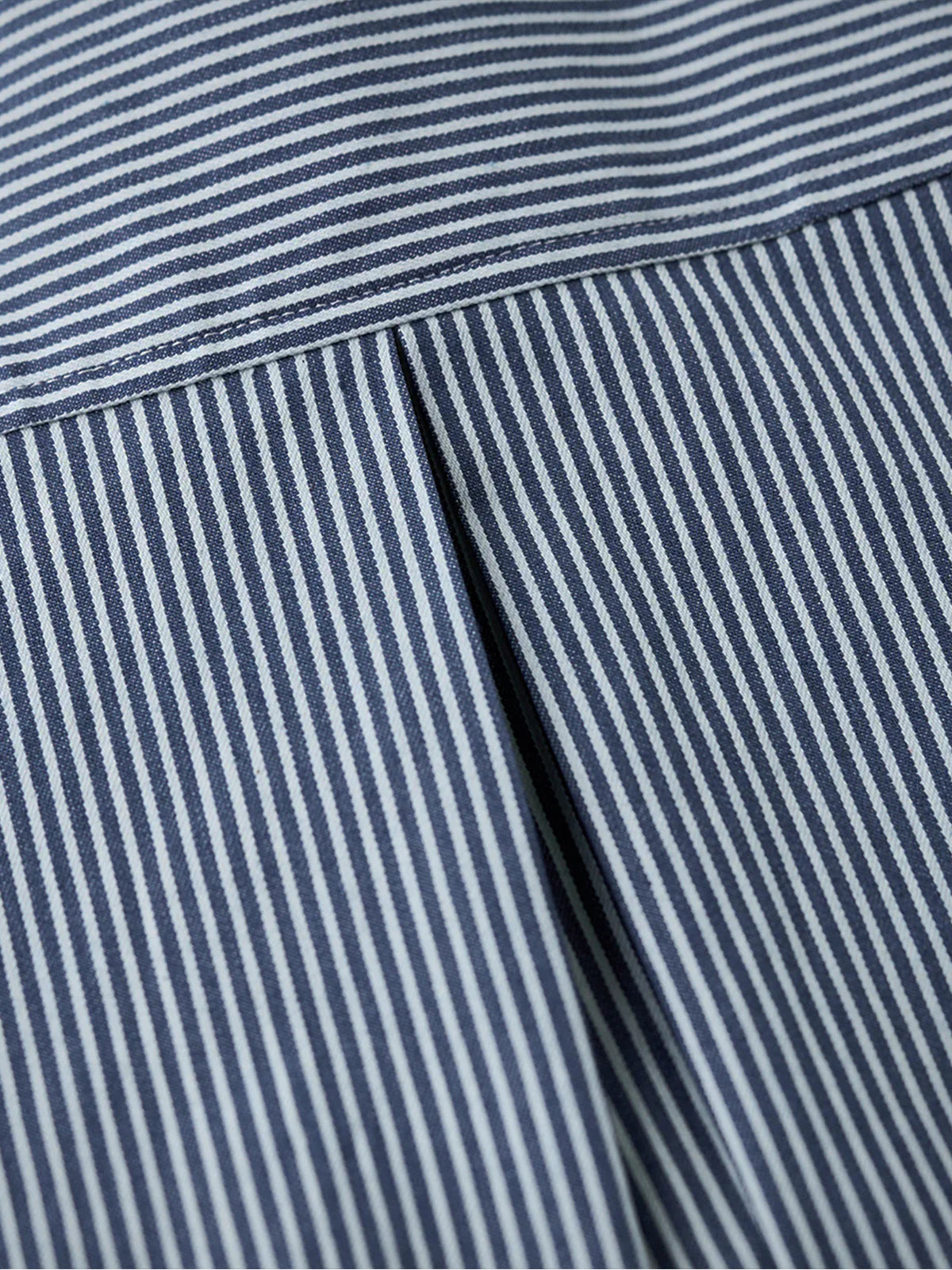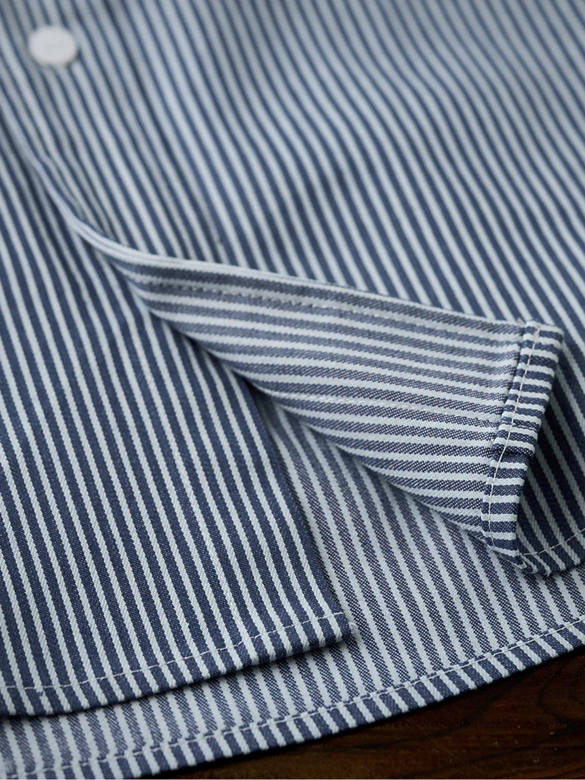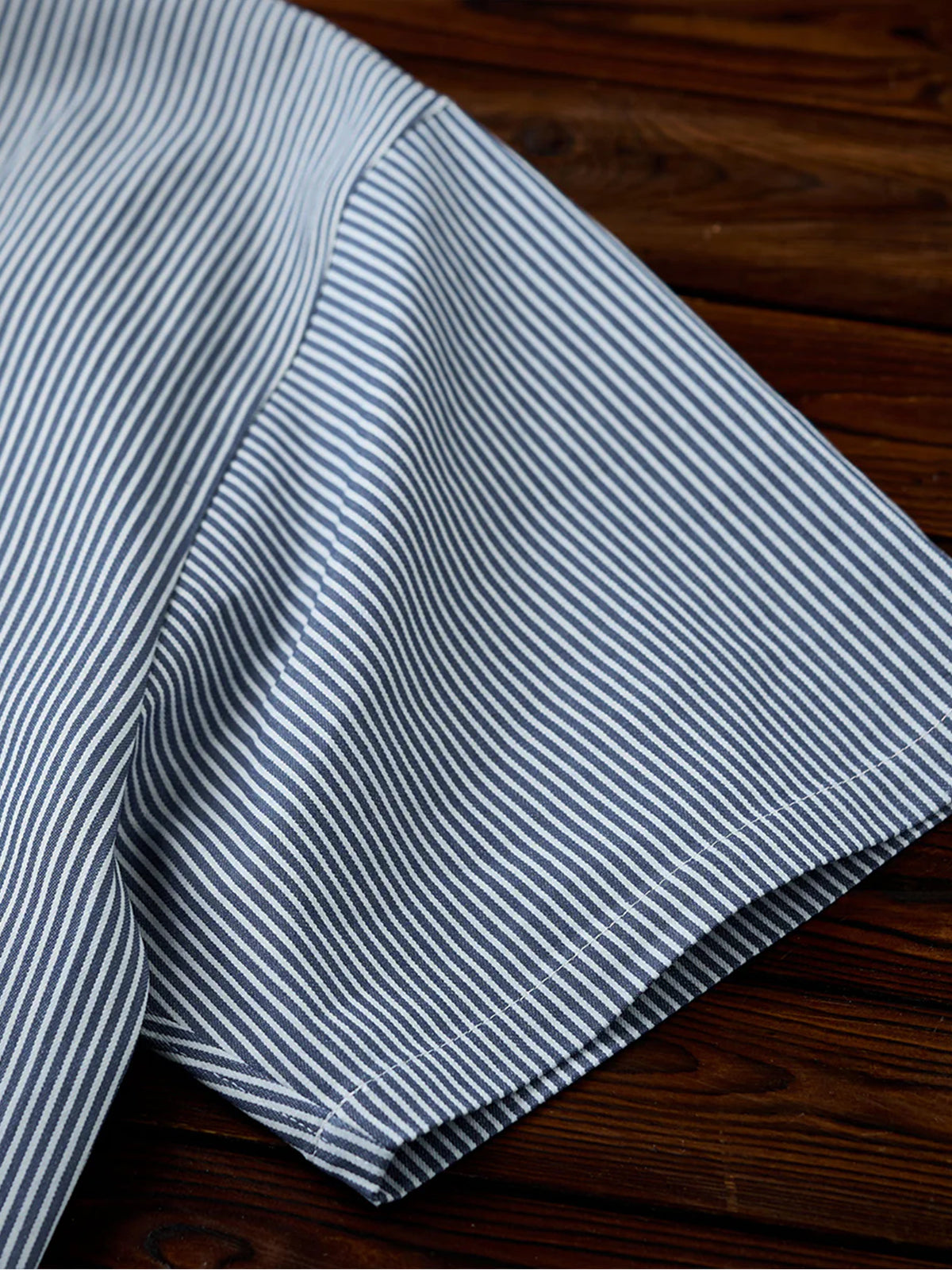 A short-sleeved shirt perfect for summer, combining light cotton material with a refreshing striped pattern. The message "stay true" is embroidered on the chest as a single point, adding a subtle statement to the simple design. The striped pattern on the whole creates a vintage feel, and the old school atmosphere is also one of its charms. The silhouette is a big fit with a moderate amount of room. It gives a trendy balance while giving a wide range of styling options. It is a piece that you can enjoy a fresh style, not only by wearing it alone, but also by wearing it over a T-shirt.