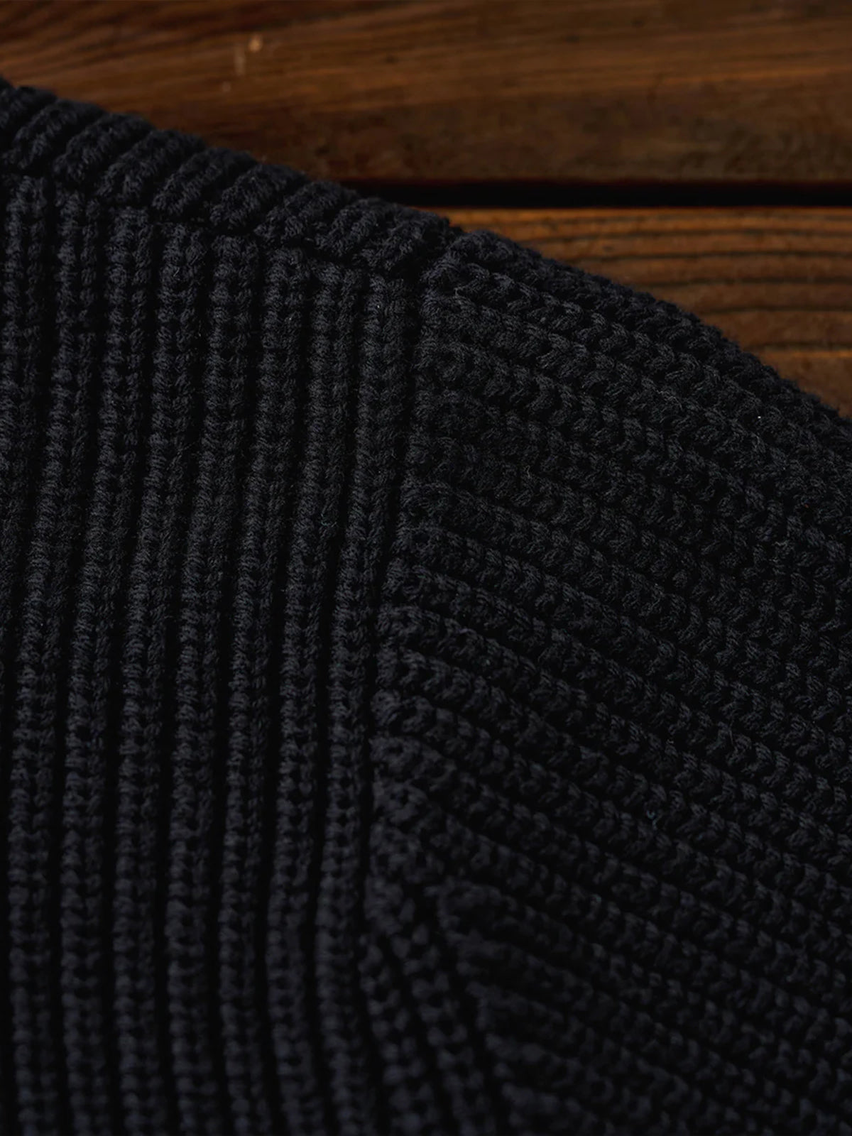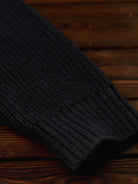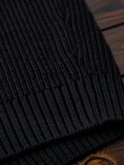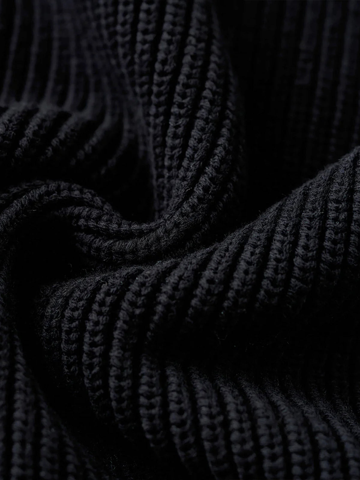The knitting technique creates raised textures between the stripes, adding depth to the design. The entire piece is unified in a calm black tone, giving it a simple yet sophisticated impression. Black is easy to match with any style and offers high versatility.