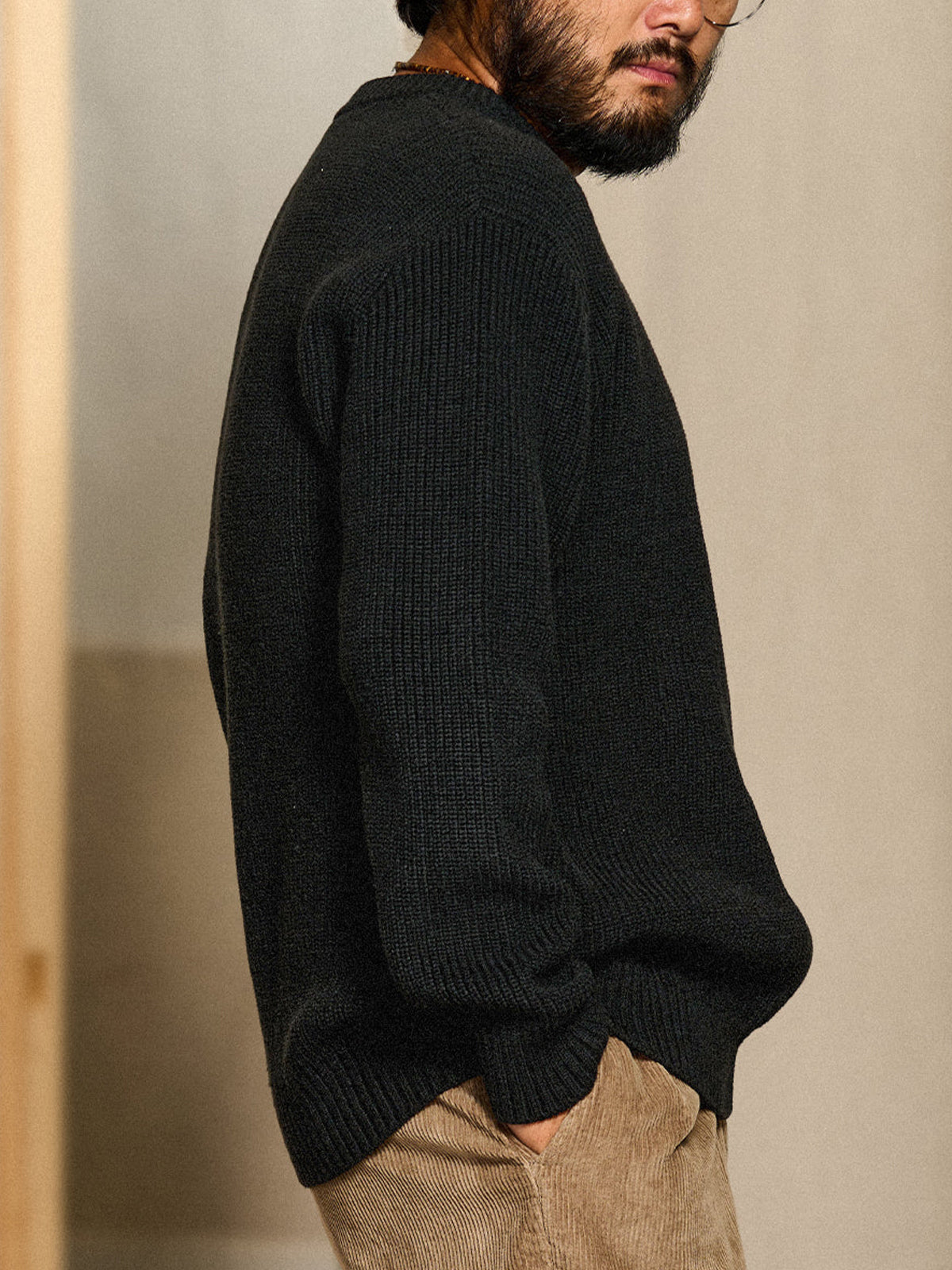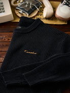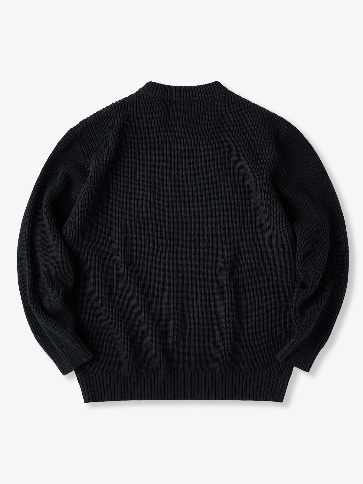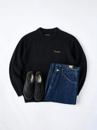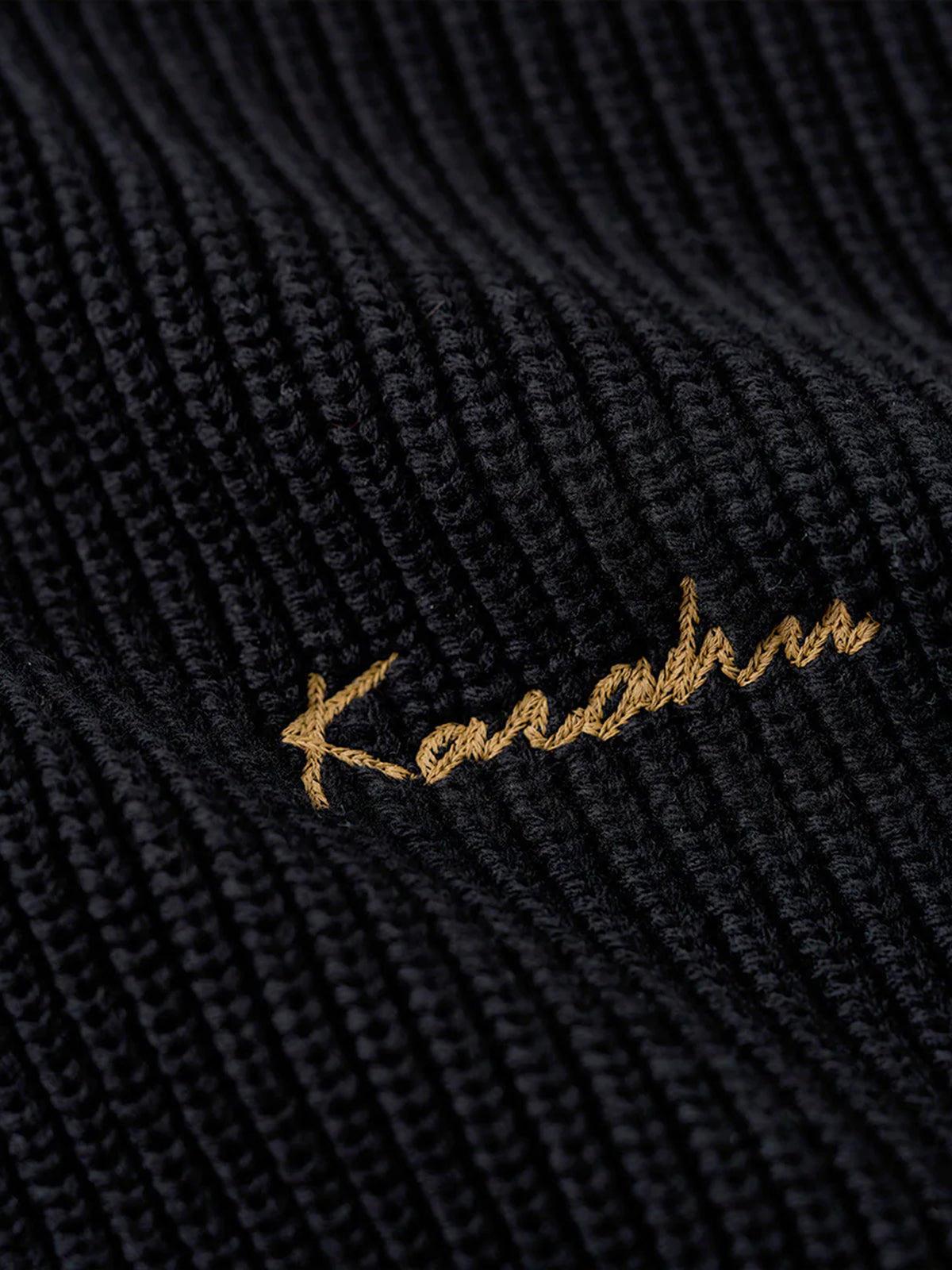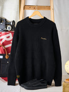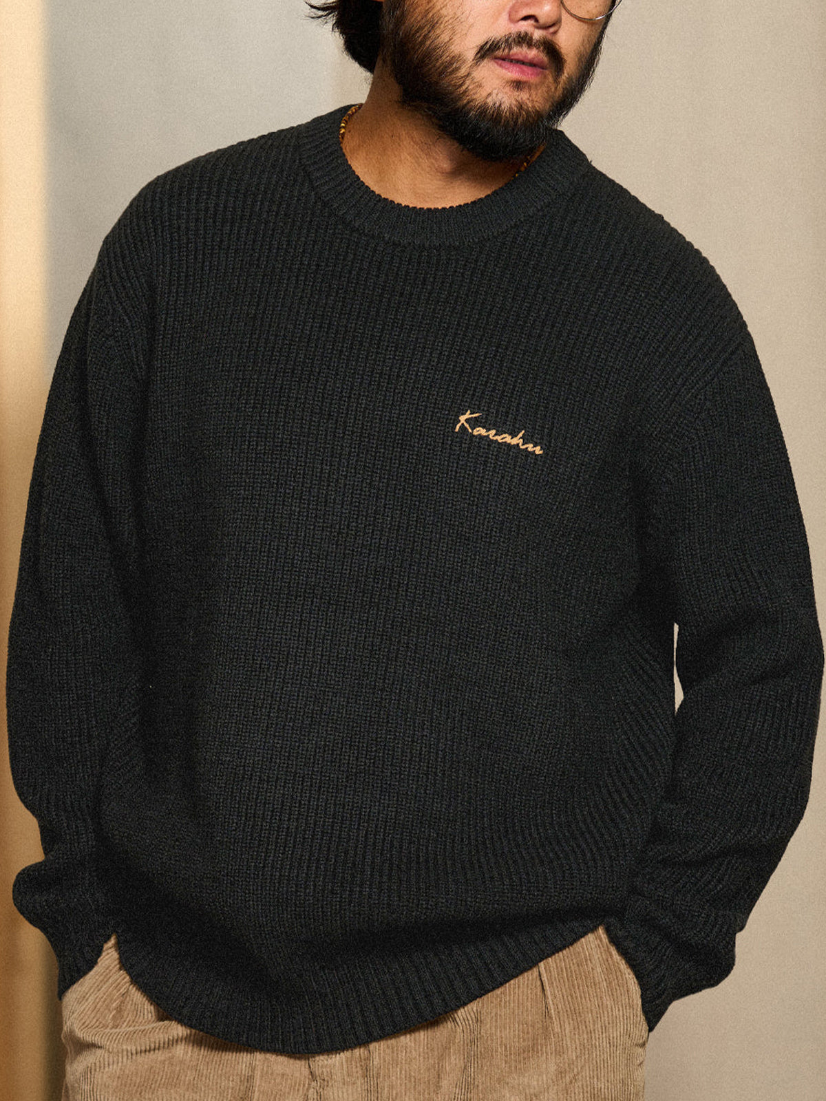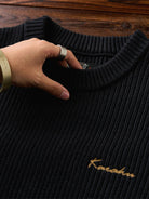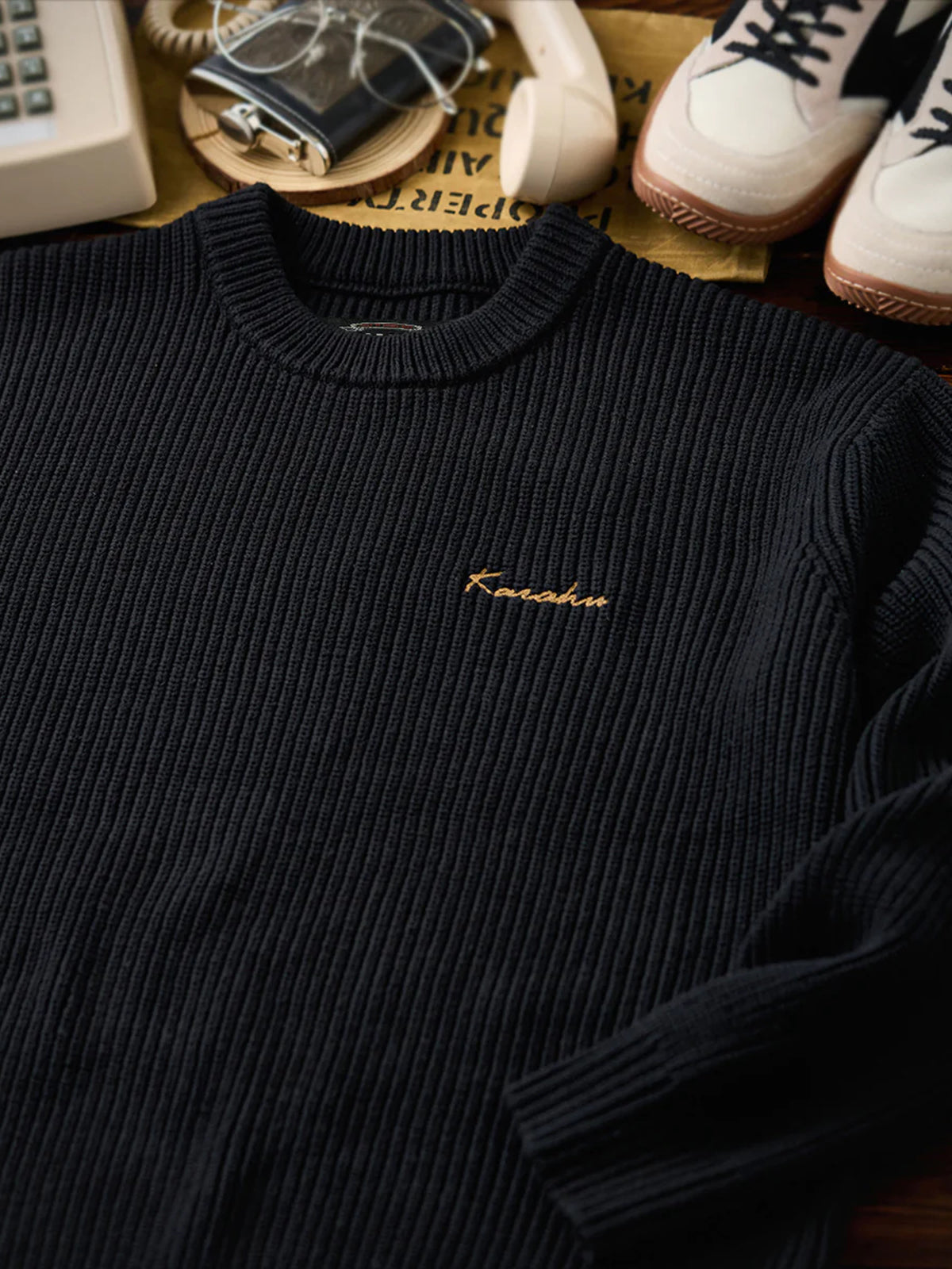 [Pre-order] All-Black Rib-Knit Sweater with “Karaku” Logo Embroidery