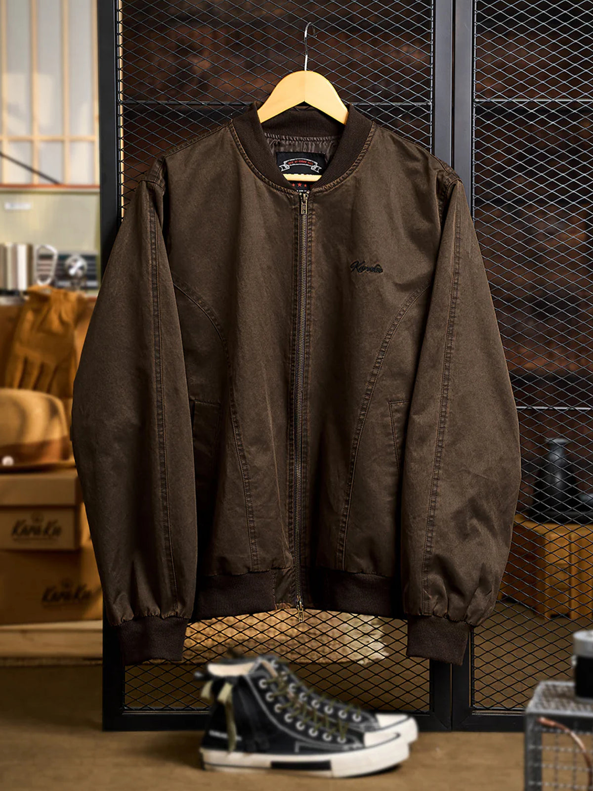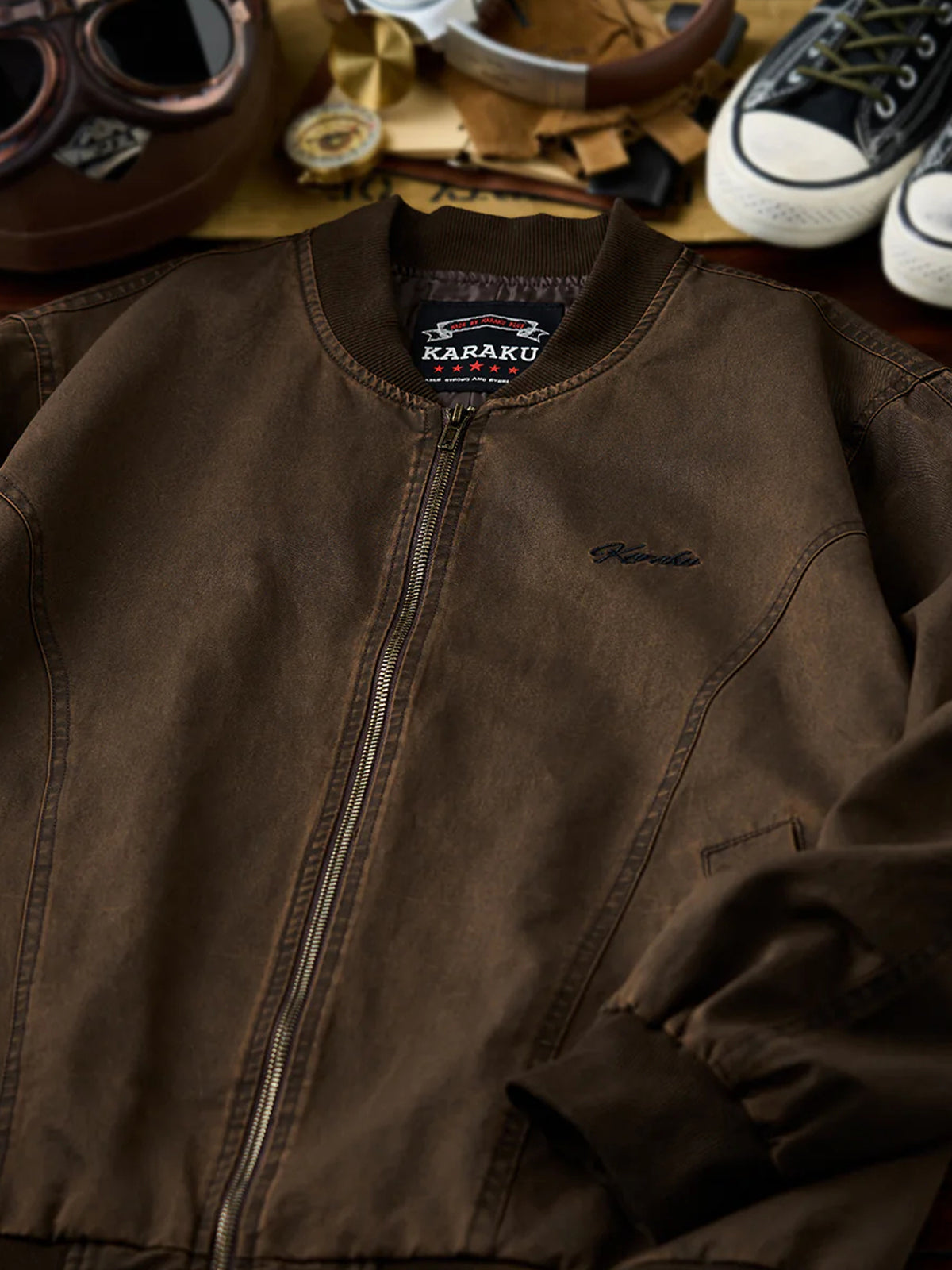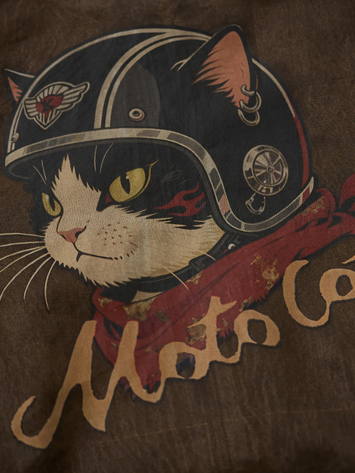 [Pre-Order] “Helmet Cat” Print Washed Double-Zip Stadium Jacket
