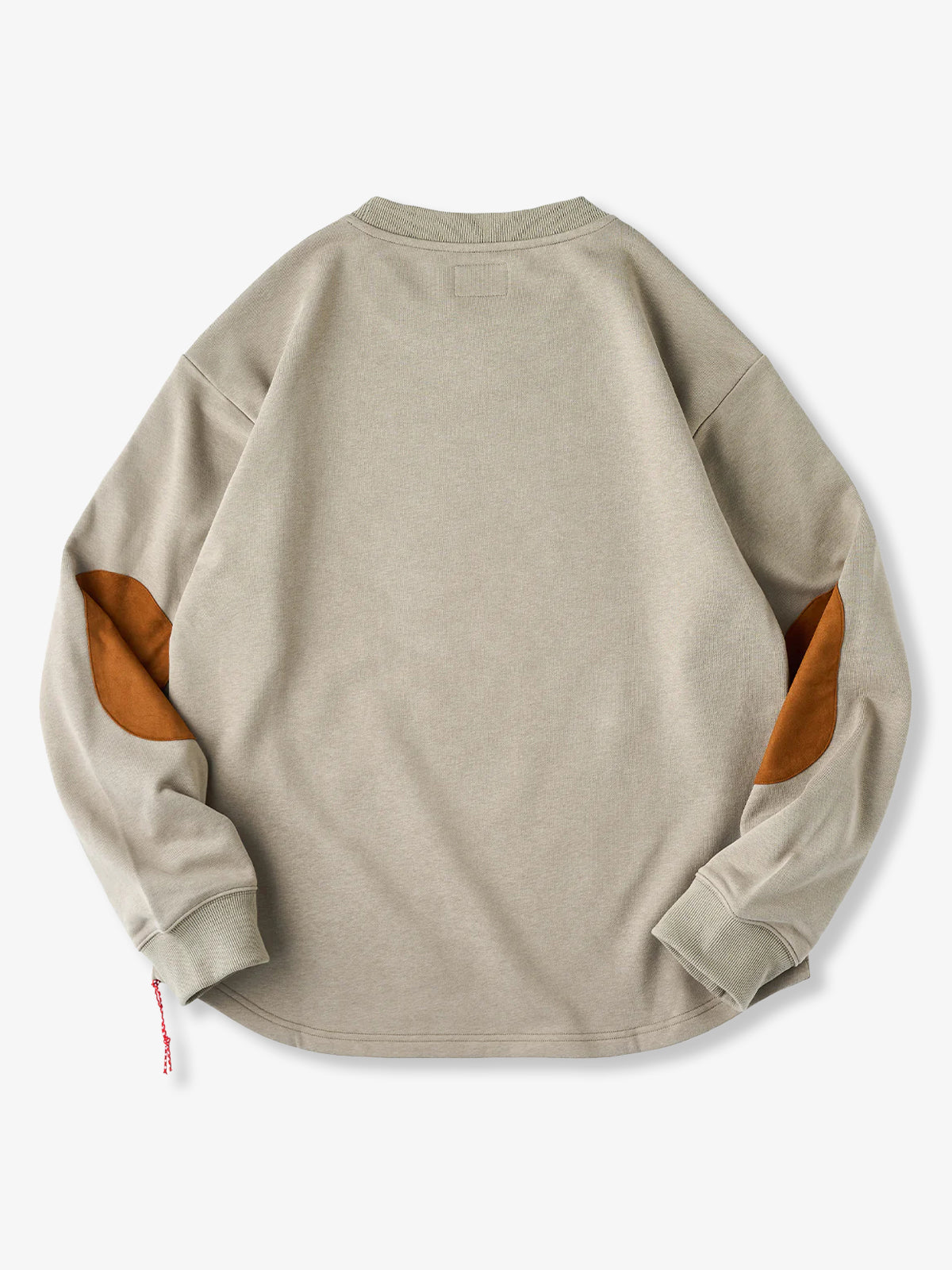 [Pre-Order] Terry-Lined Crewneck Sweatshirt with Red Drawstring & Suede Elbow Patches