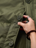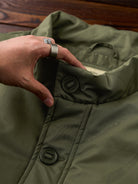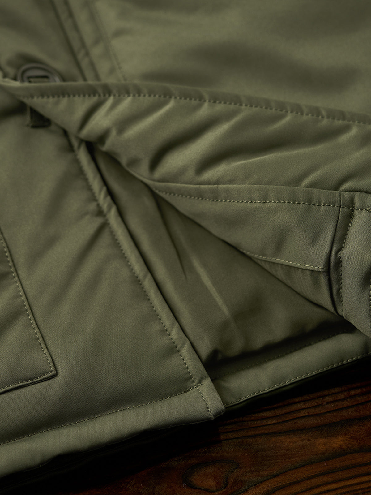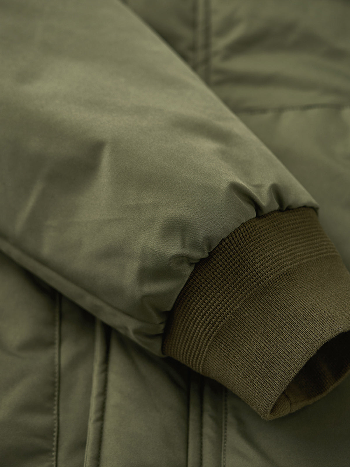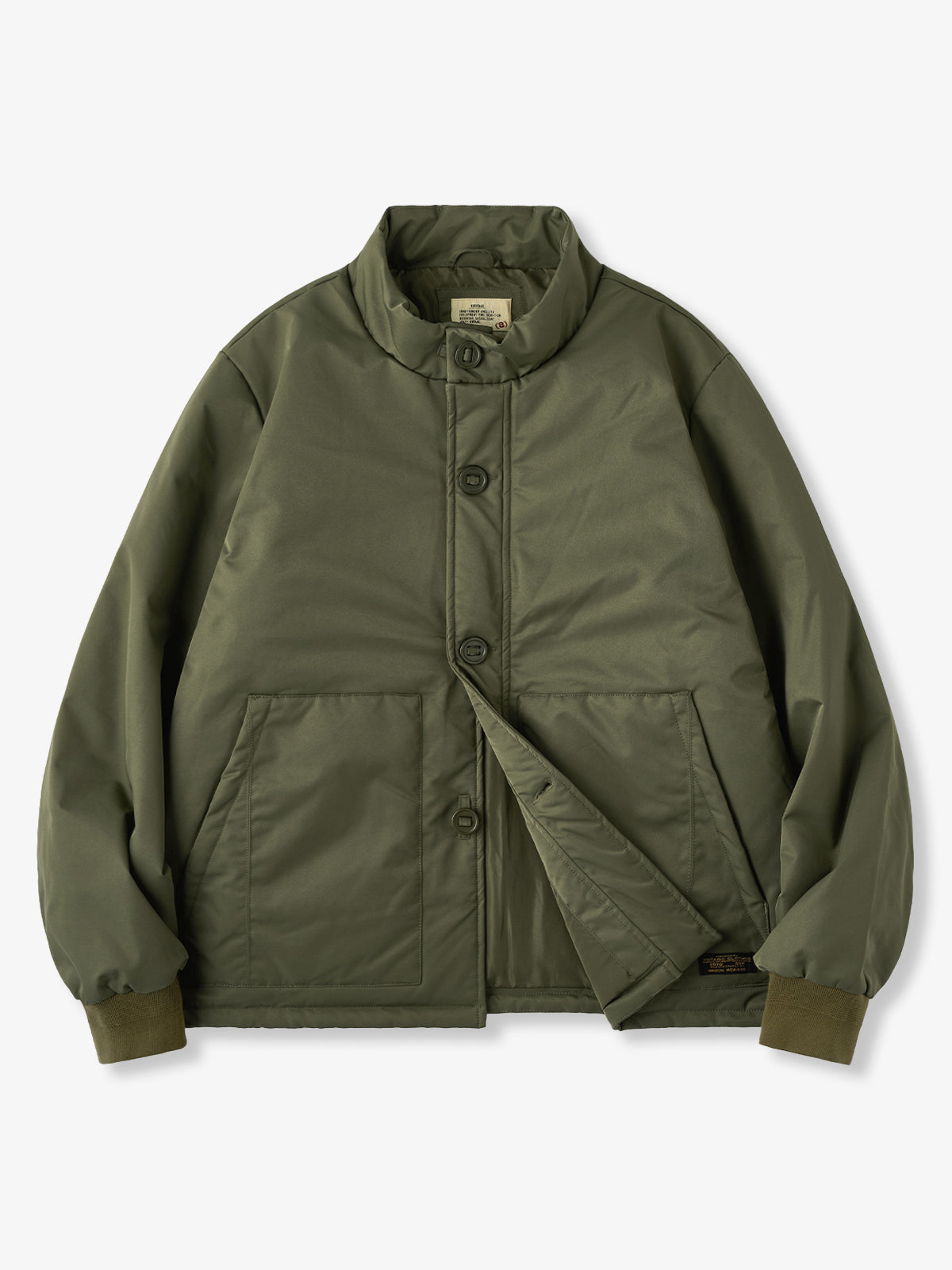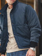 A modern reinterpretation of the original “A-1” flight jacket — a timeless design first introduced by the U.S. Army Air Corps in 1927 as their very first standard flight jacket. Its cropped, waist-length silhouette was purpose-built for tight cockpits and went on to inspire legendary successors like the M-2 and MA-1. This updated version brings that heritage into the present with a padded structure for warmth and a clean, slightly boxy fit that enhances the body’s proportions. The ribbed cuffs and button-front closure stay true to the original’s vintage functionality, while the stand collar gives it a sharp, contemporary touch.