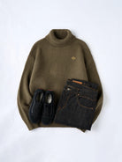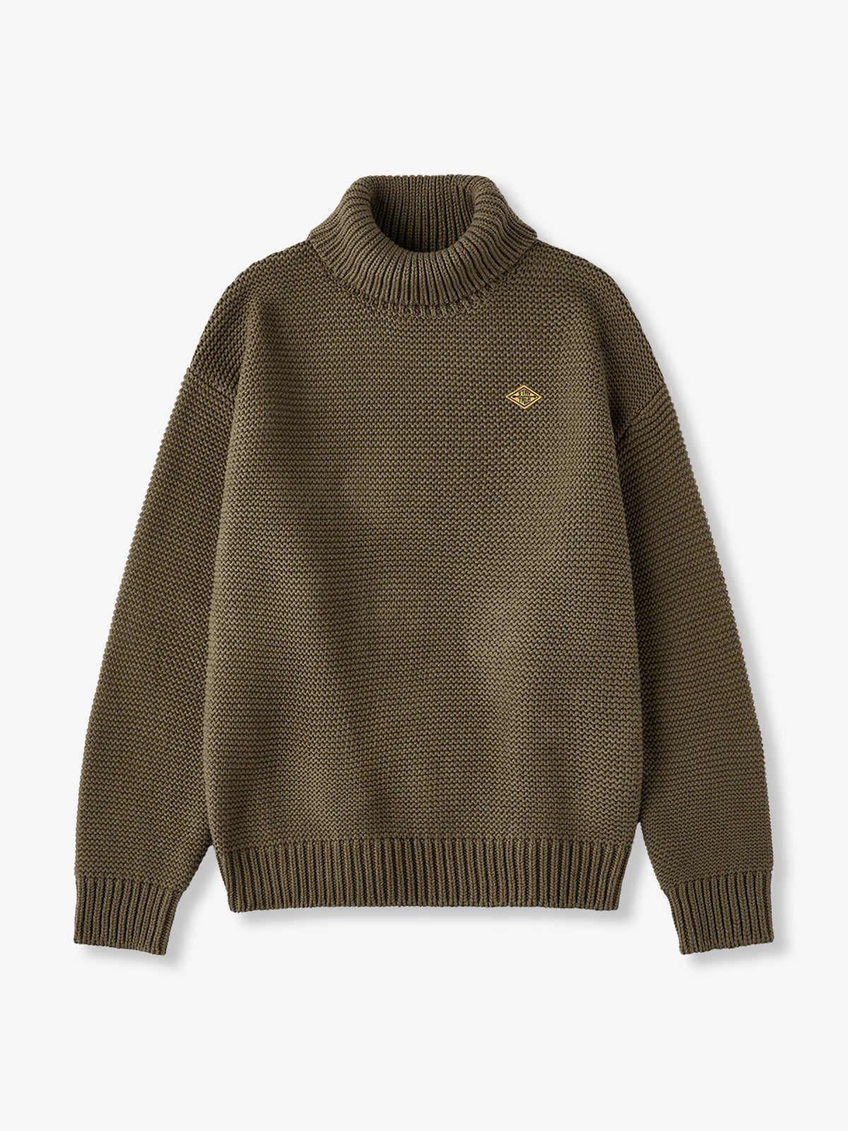 [Pre-order] "STAY TRUE" Embroidered Patch Pearl Knit High-Neck Sweater