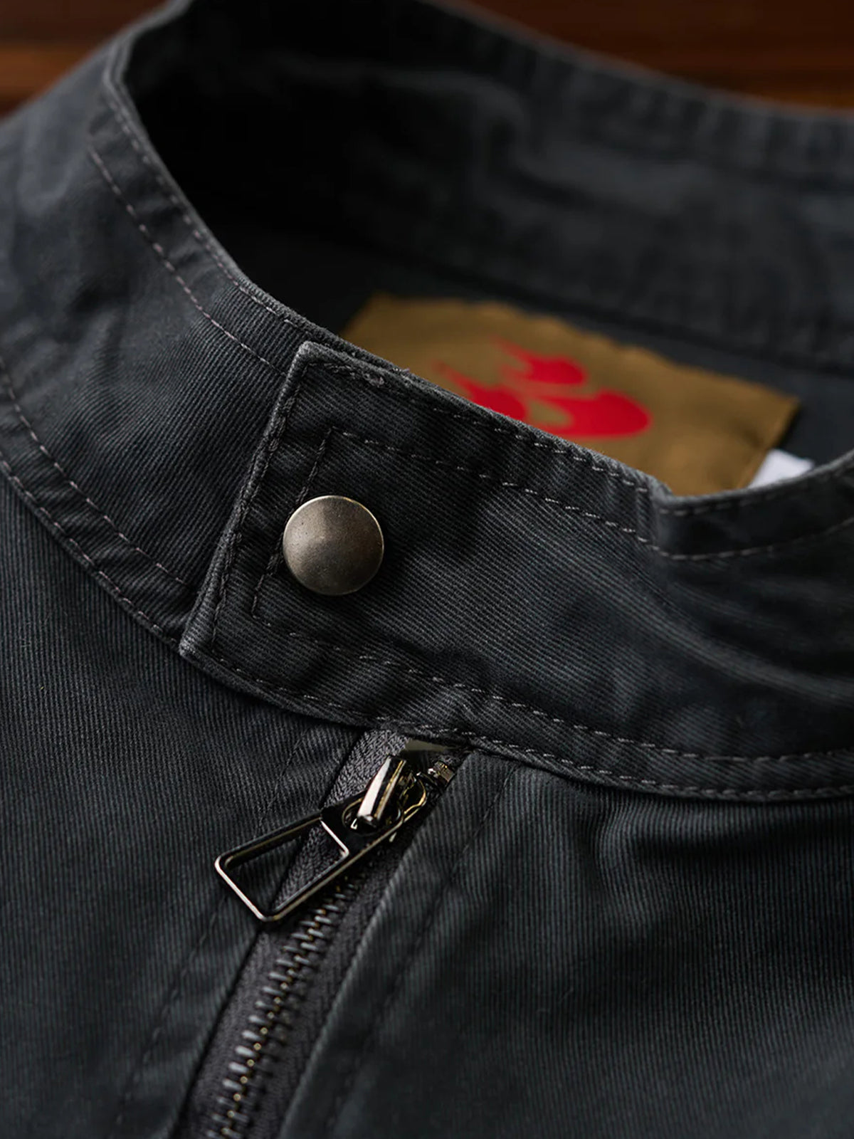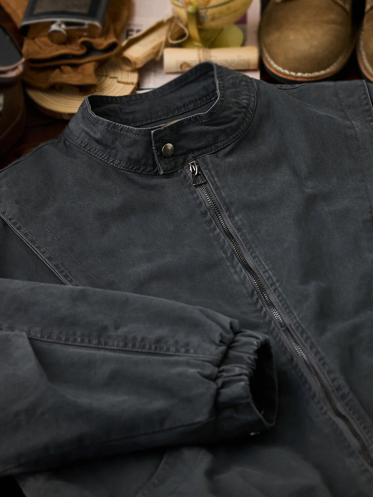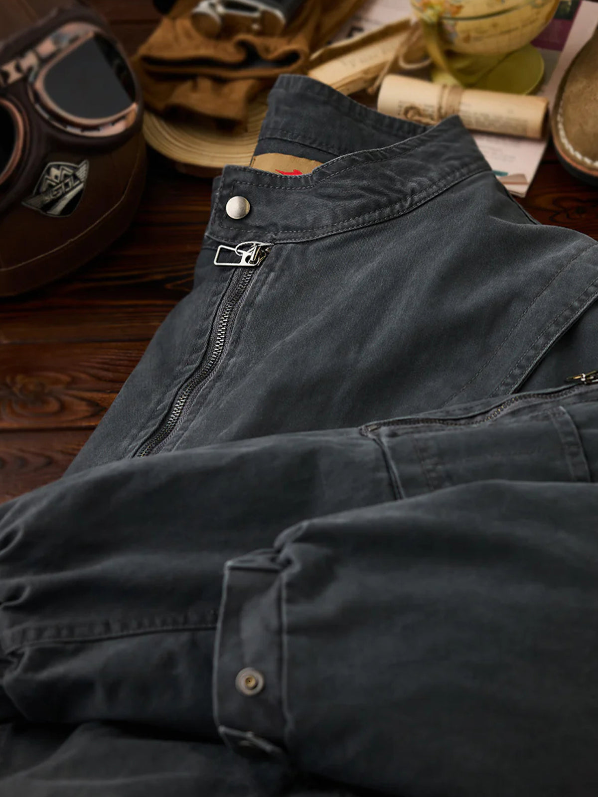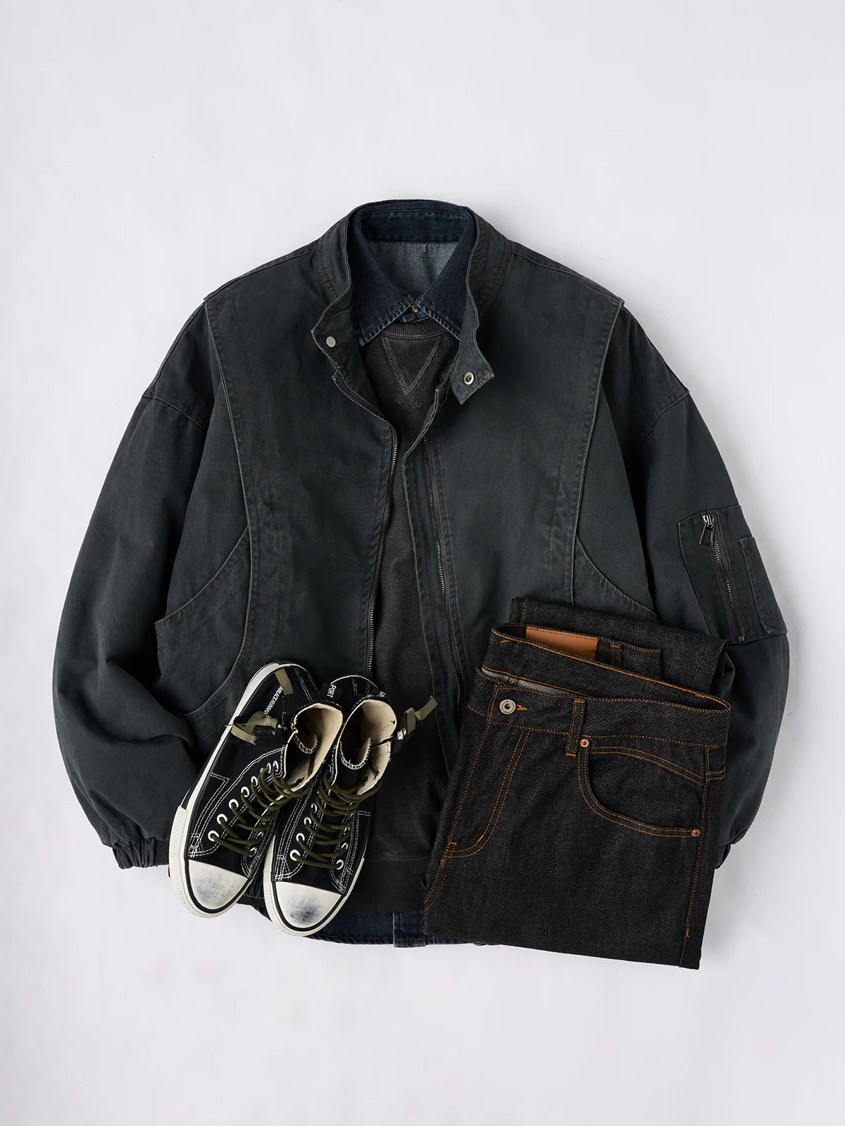 Sandwashed Double-Zip Flight Jacket with Fleece Lining
