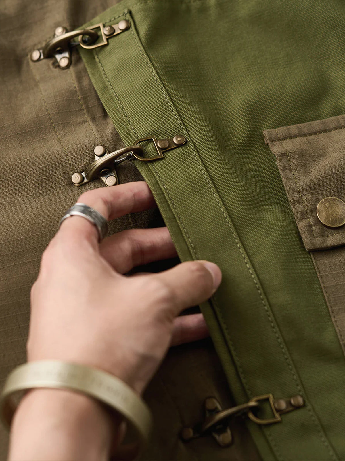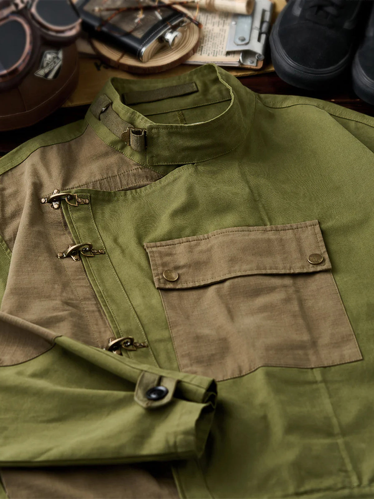 Cotton Piqué Panel Swedish Military Motorcycle Jacket with Hook Buttons