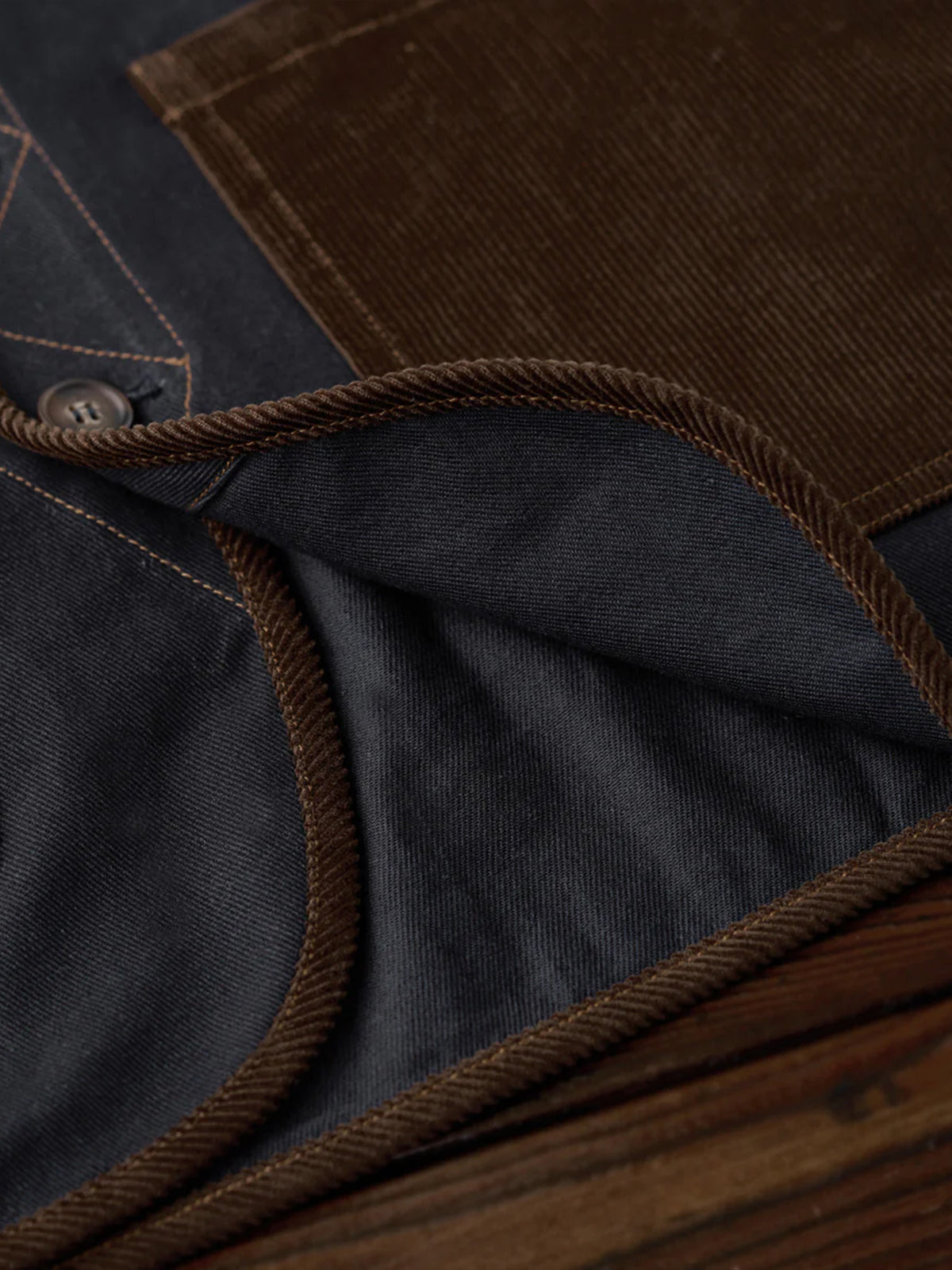 Corduroy Pocket Switchable Collarless Denim Jacket