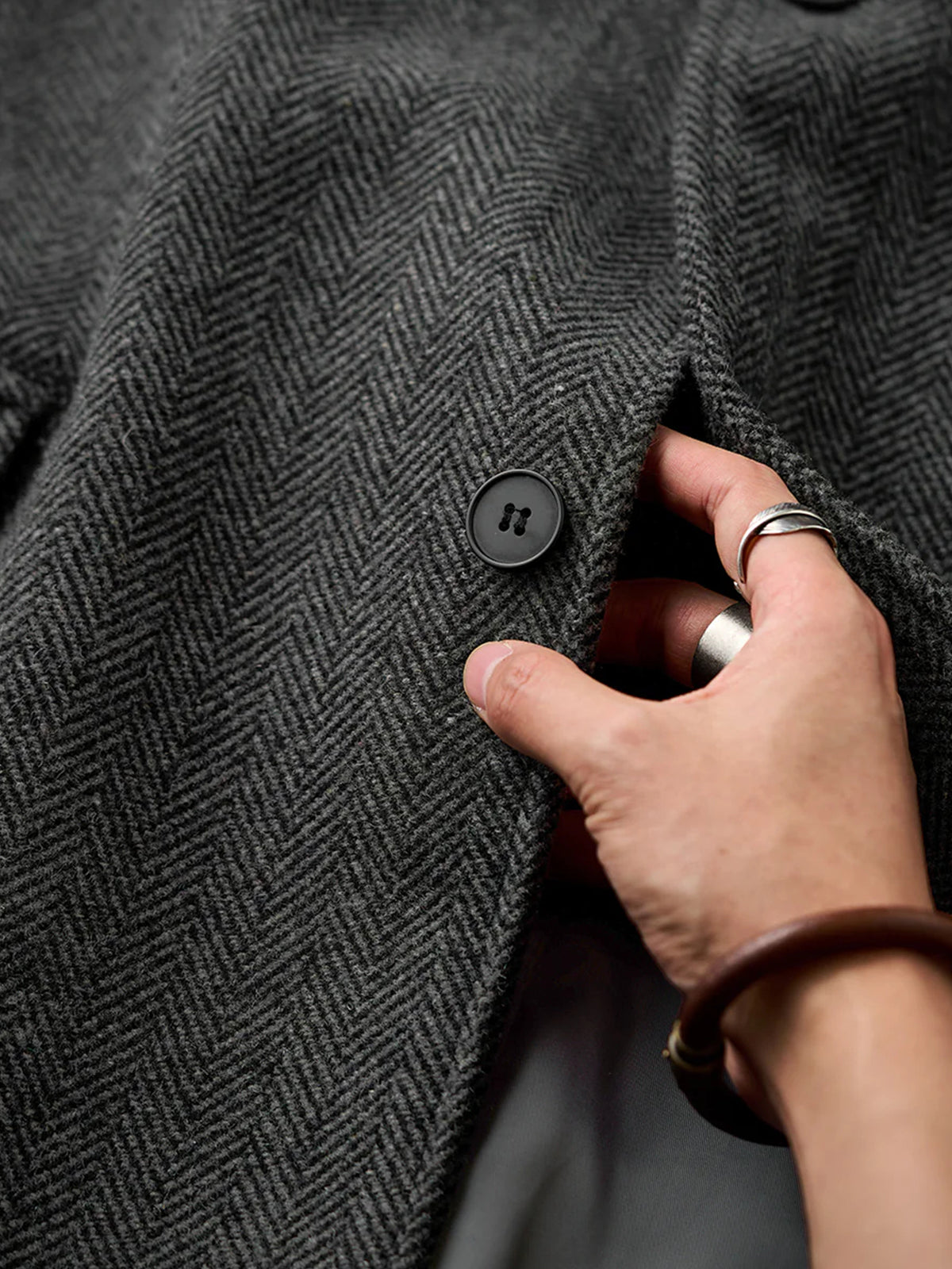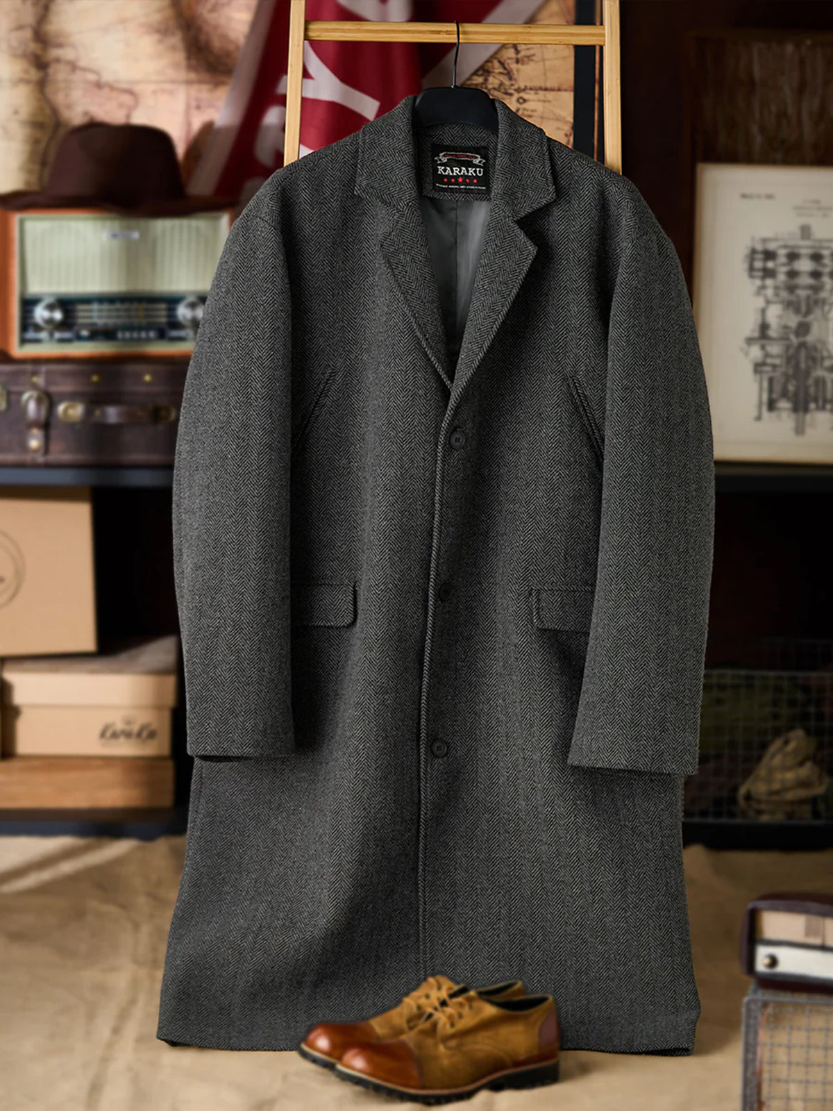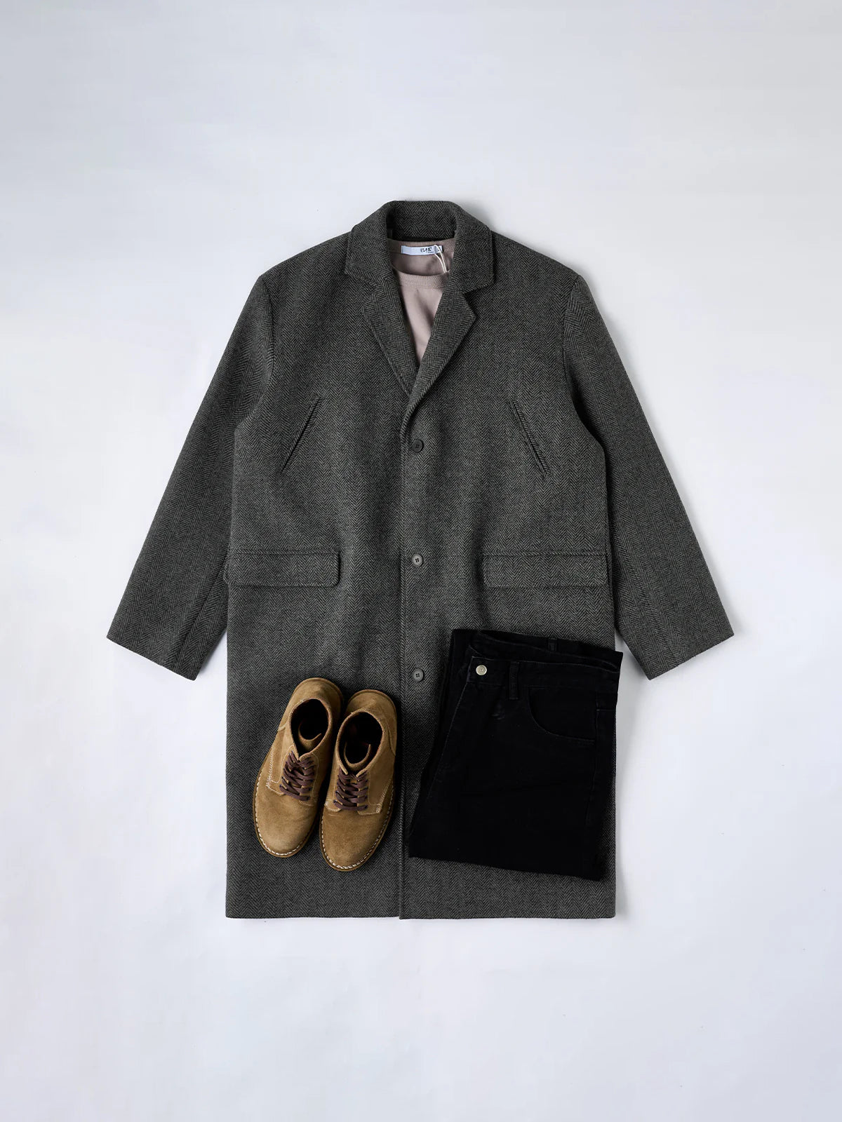 [Pre-Order] Business & Casual Herringbone Wool-Blend Tweed Long Coat