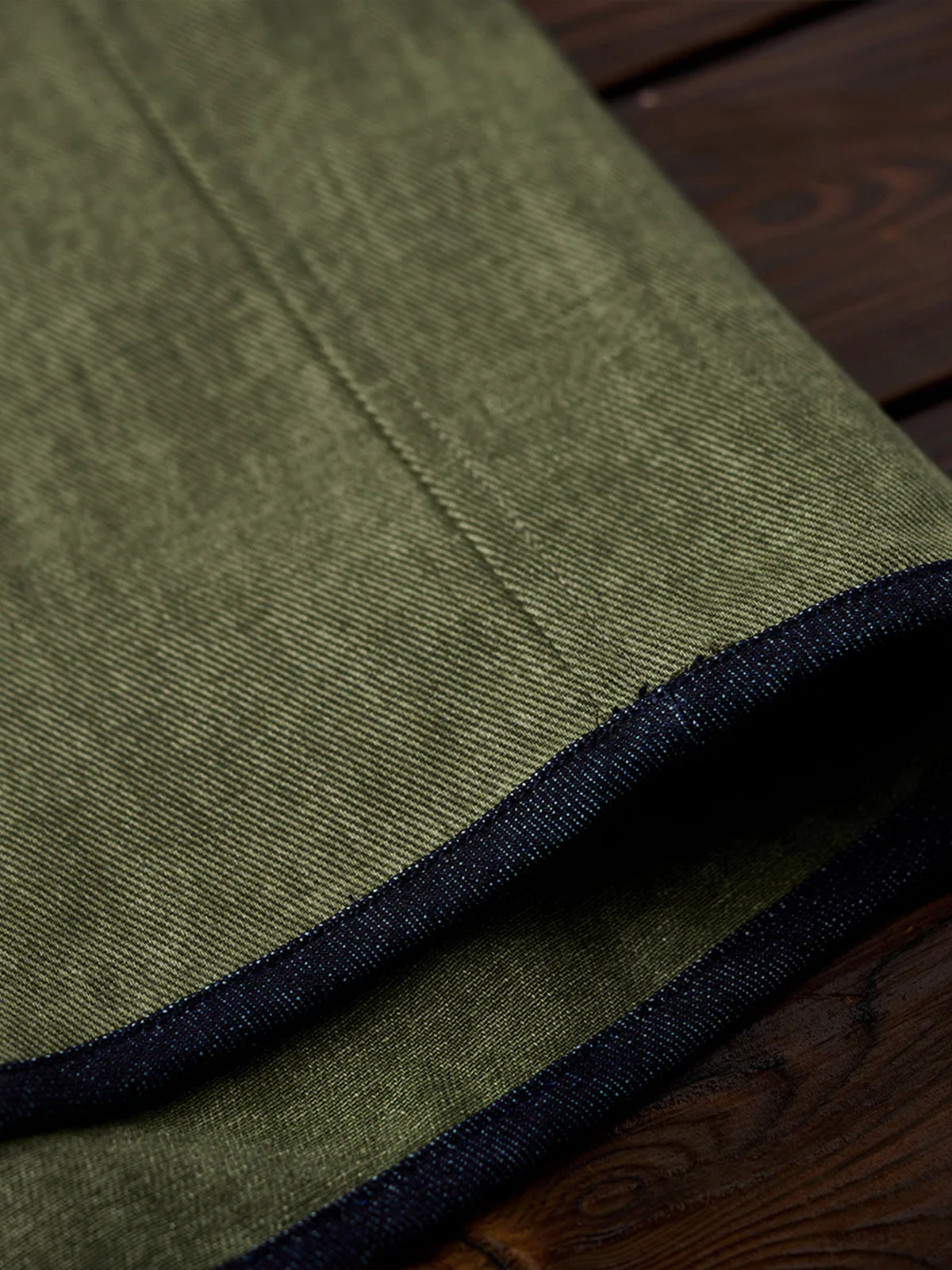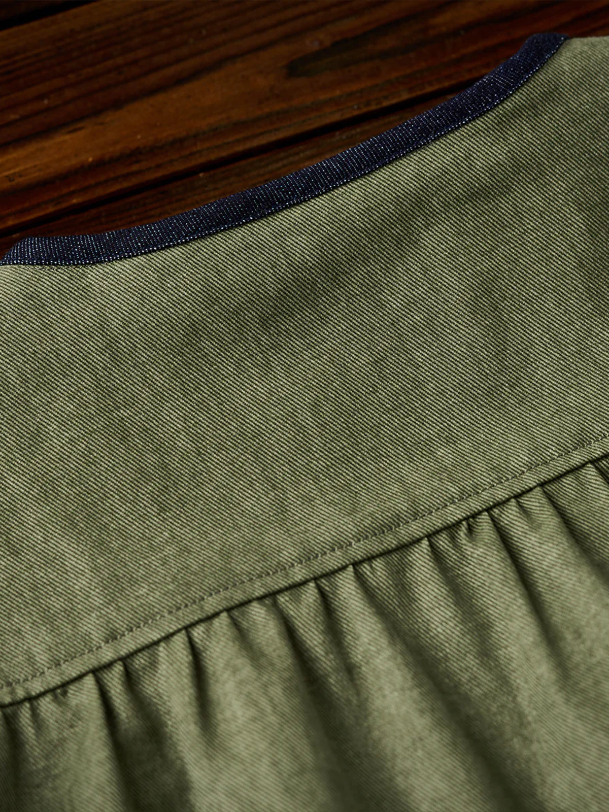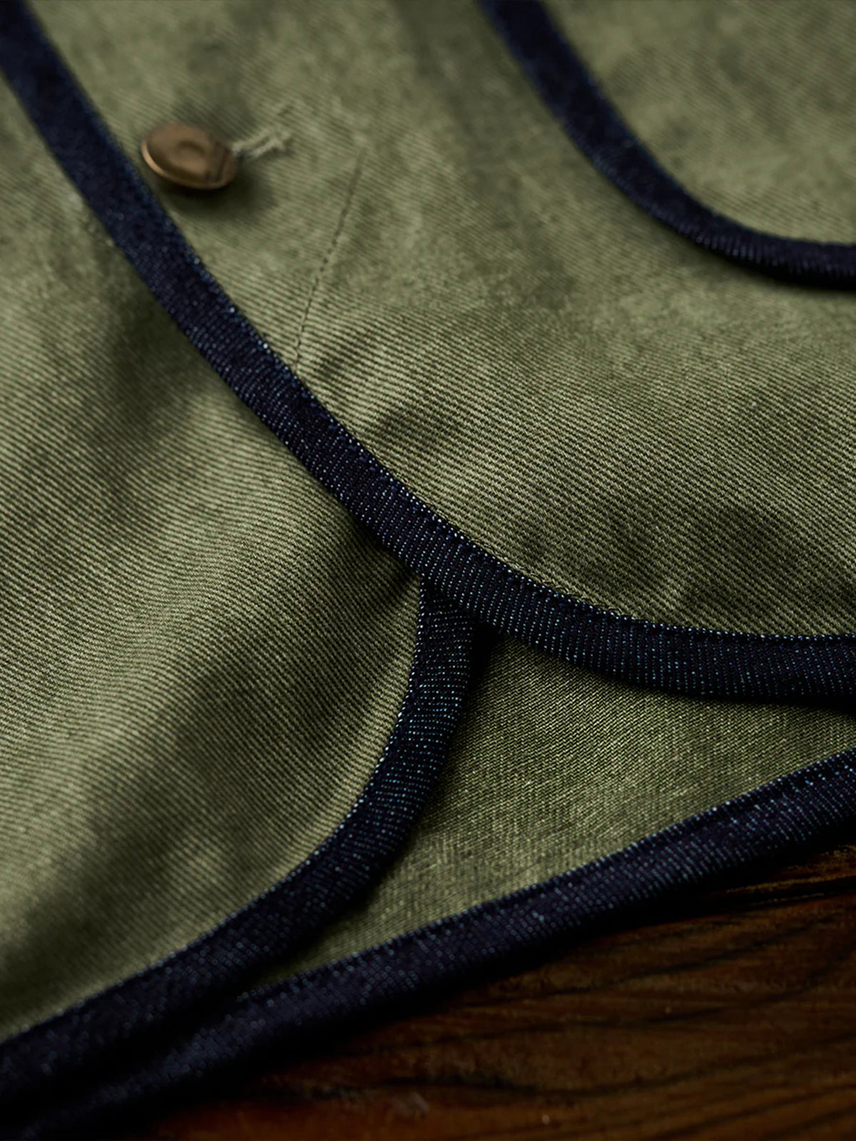 Denim Piping Custom Leather Tag Collarless Jacket