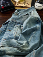W Mini Embroidery Stone-Washed Denim Work Jacket