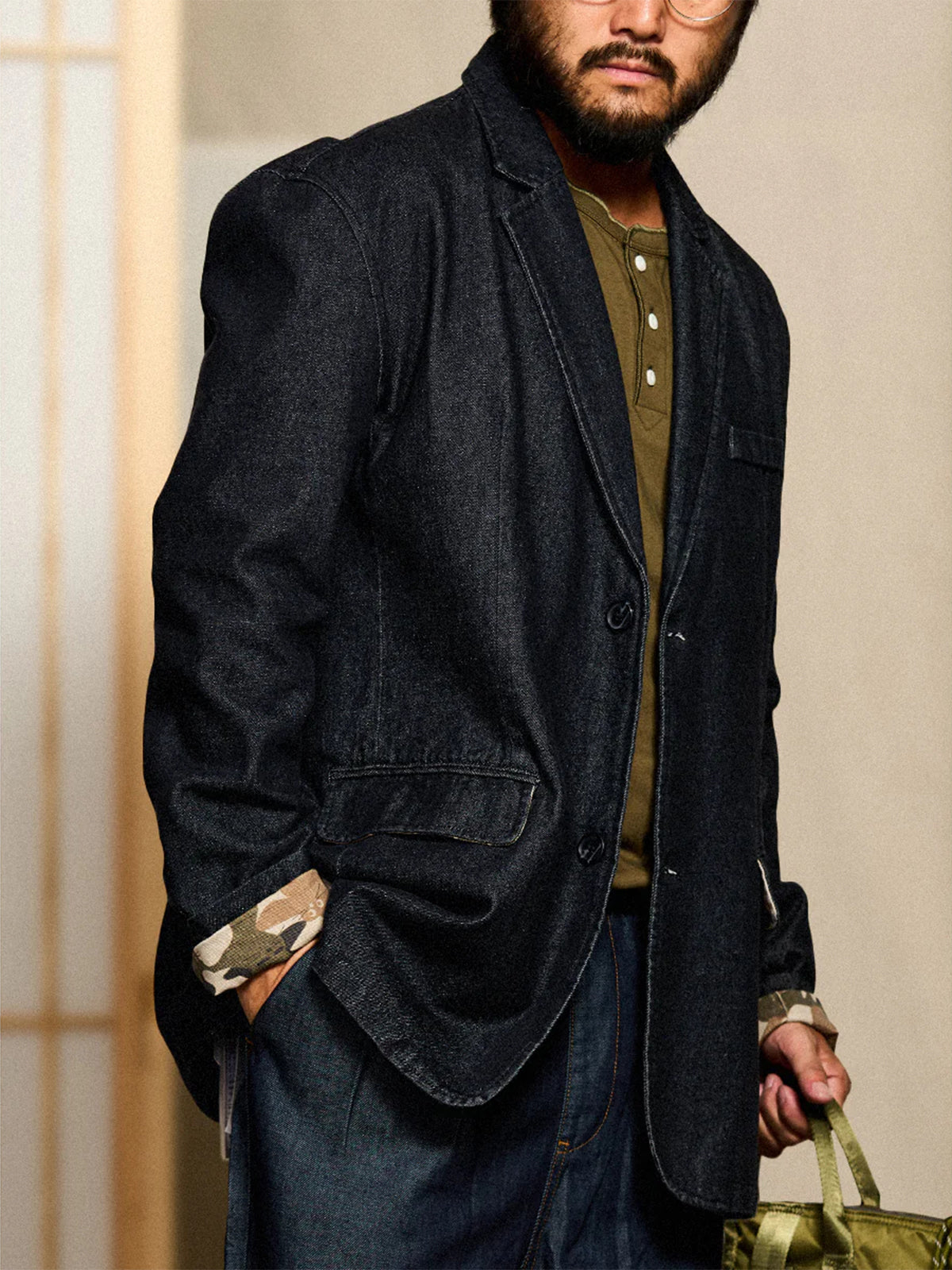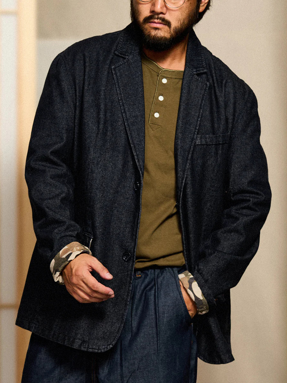 Cat Camo Trim Cotton Denim Tailored Jacket