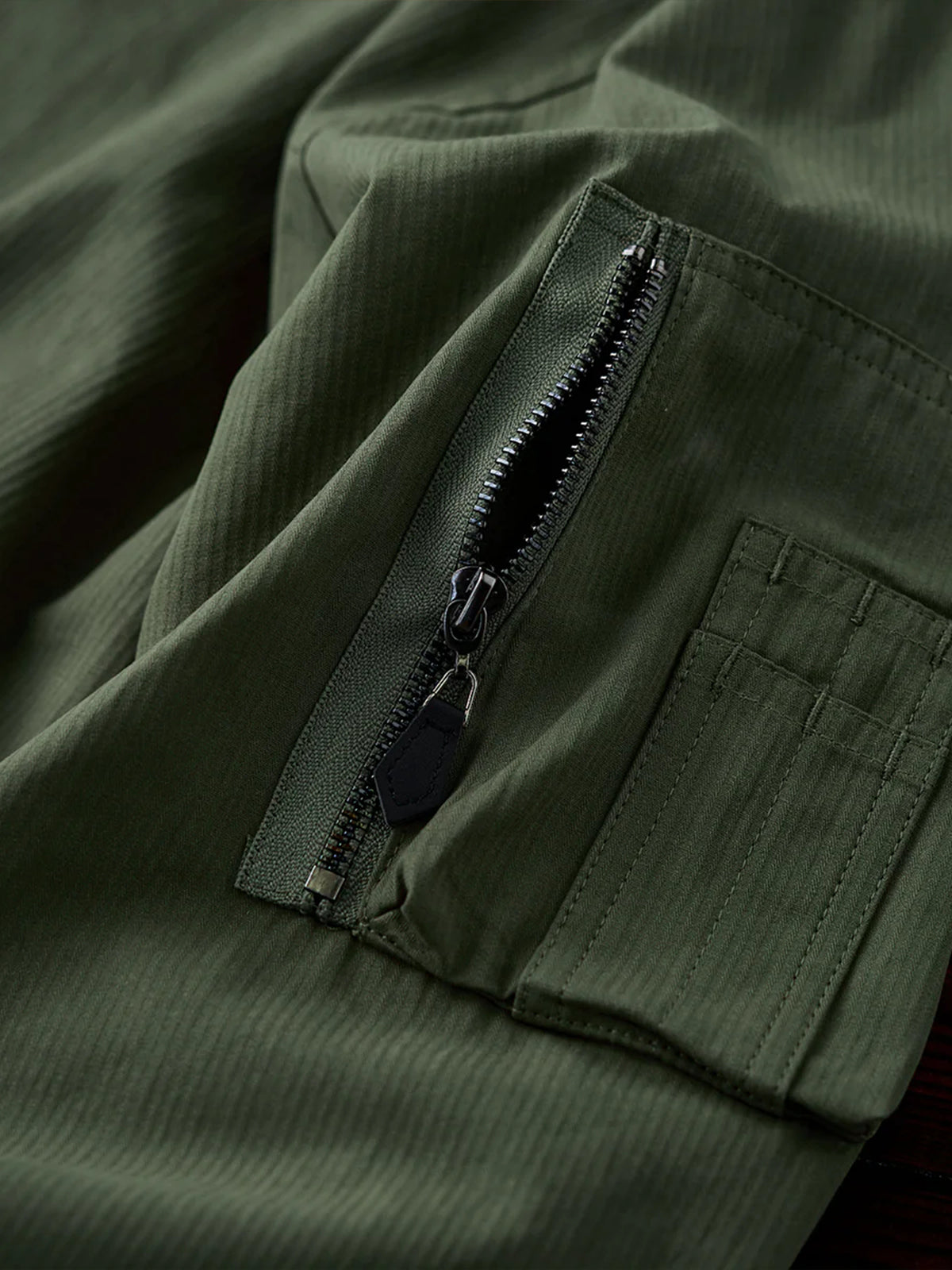 Introducing a unique take on the classic military design with the jacket! Crafted from durable cotton fabric, it combines ruggedness with practical functionality, featuring a vibrant rescue orange lining that nods to its heritage. Its ribbed cuffs, collar, and hem prevent wind intrusion, ensuring warmth. Easily layering over T-shirts, sweatshirts, or shirts for versatile styling options!