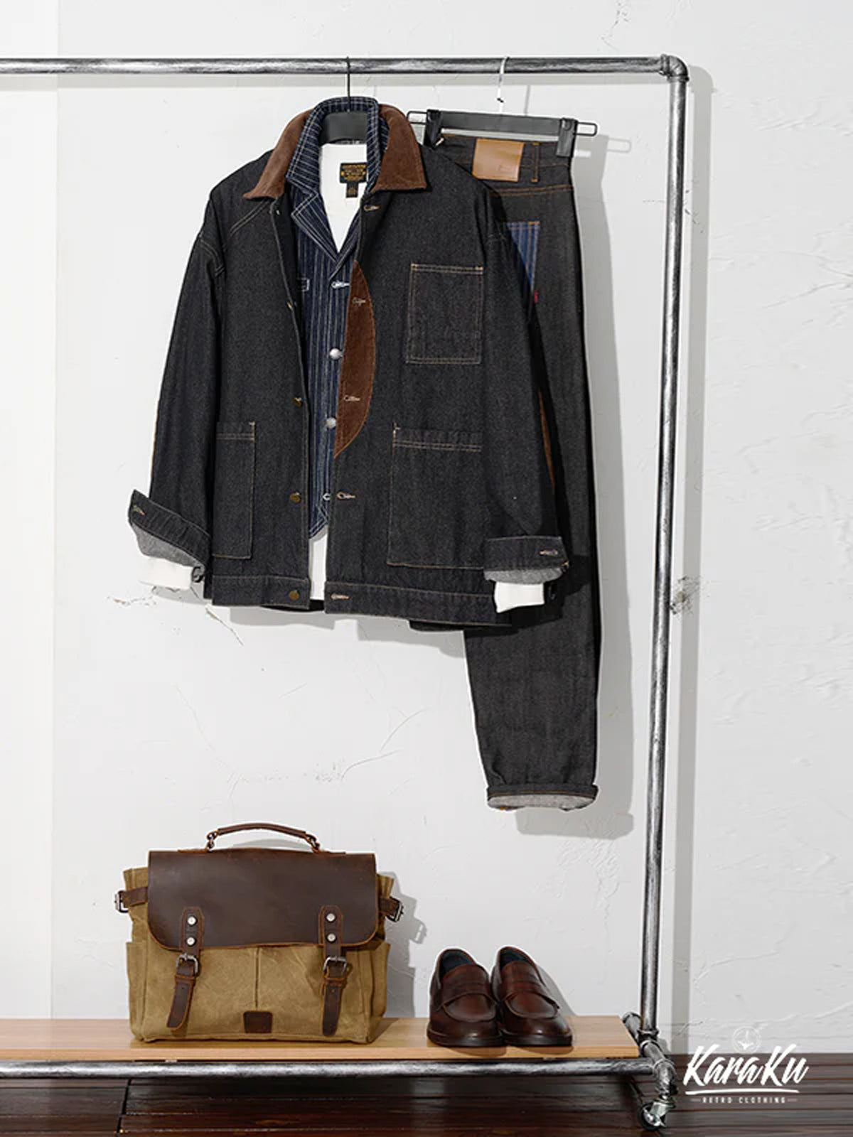 Inspired by the urban lifestyle of the modern man. This stylish piece features a unique combination of soft corduroy at the collar and front, paired with durable cotton denim for a chic look. The cotton material offers breathability and comfort, perfect for all-day wear. Ideal for casual outings or layering over a sweater, this versatile jacket pairs well with denim or chinos.