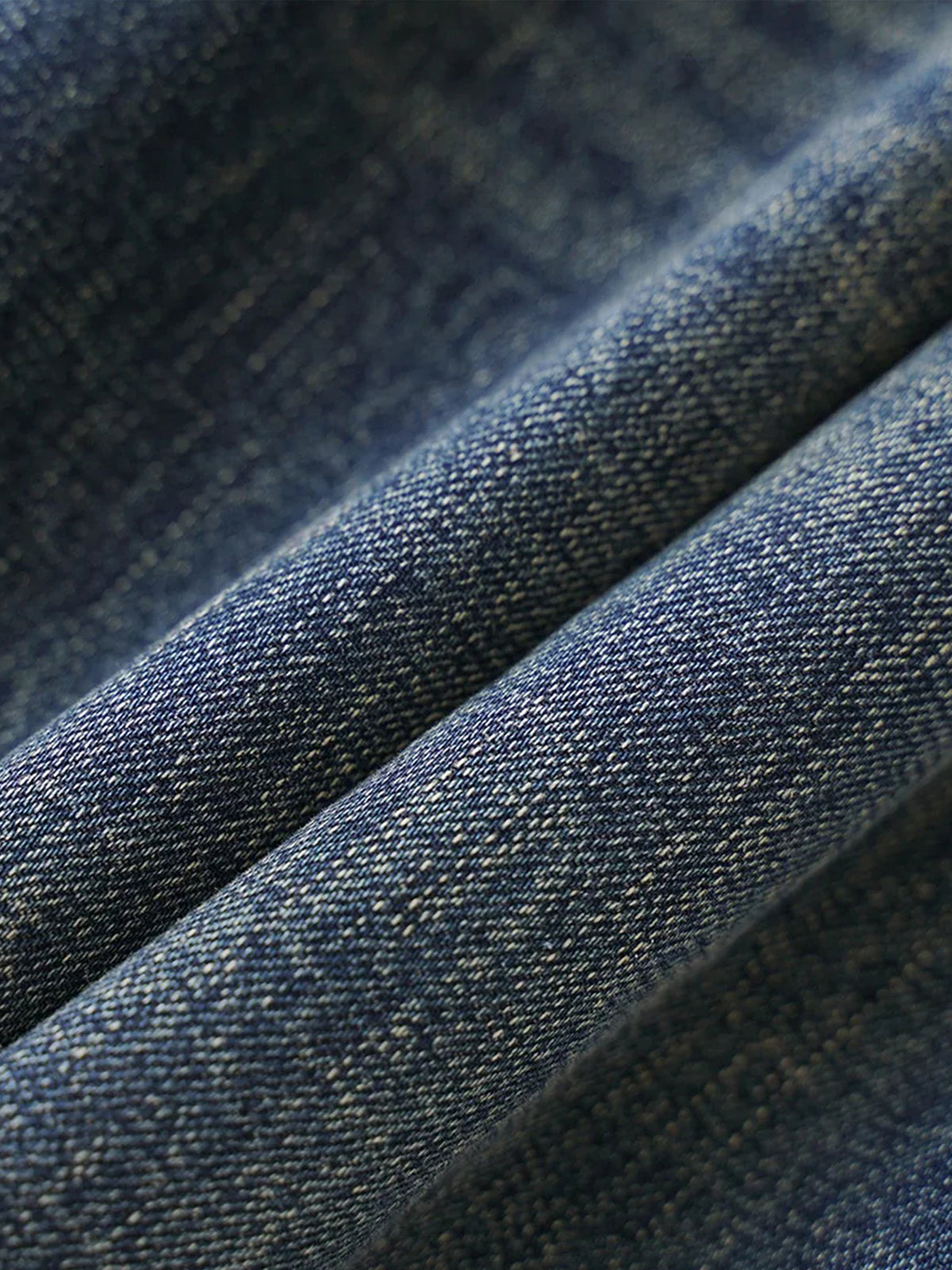 - Fabric Features:Made of traditional, durable, and firm 100% cotton denim fabric. While retaining its stiffness, it gradually conforms to the body the more it is worn. This denim can be enjoyed all year round.