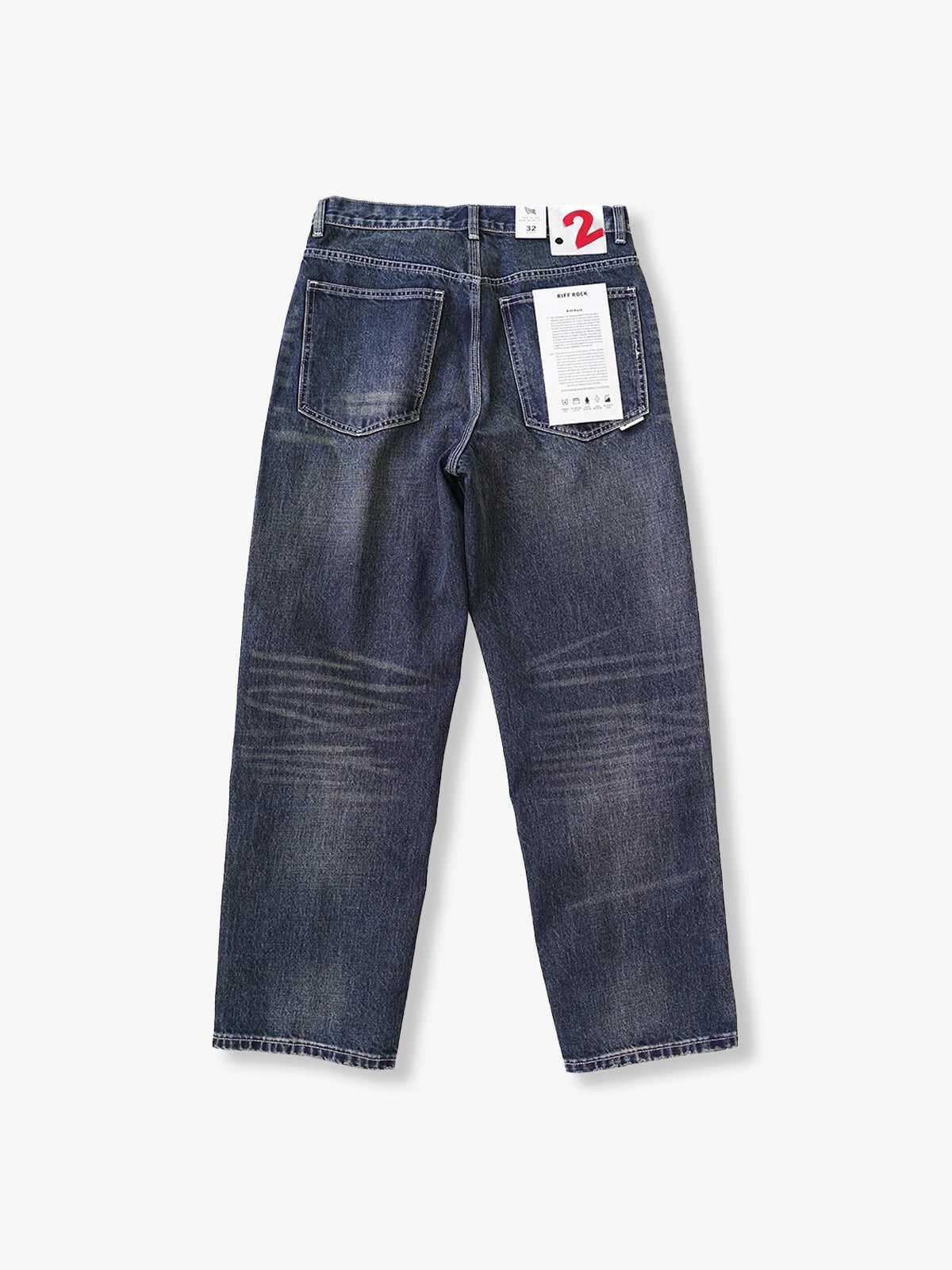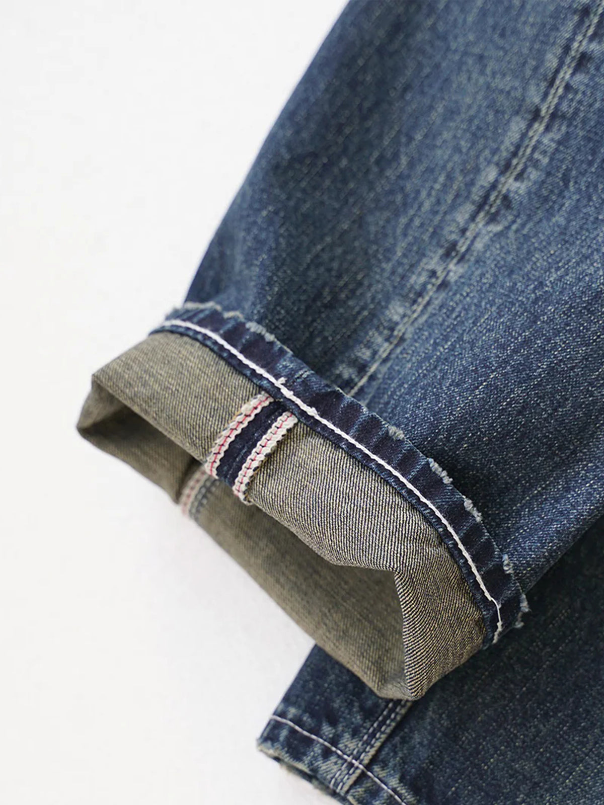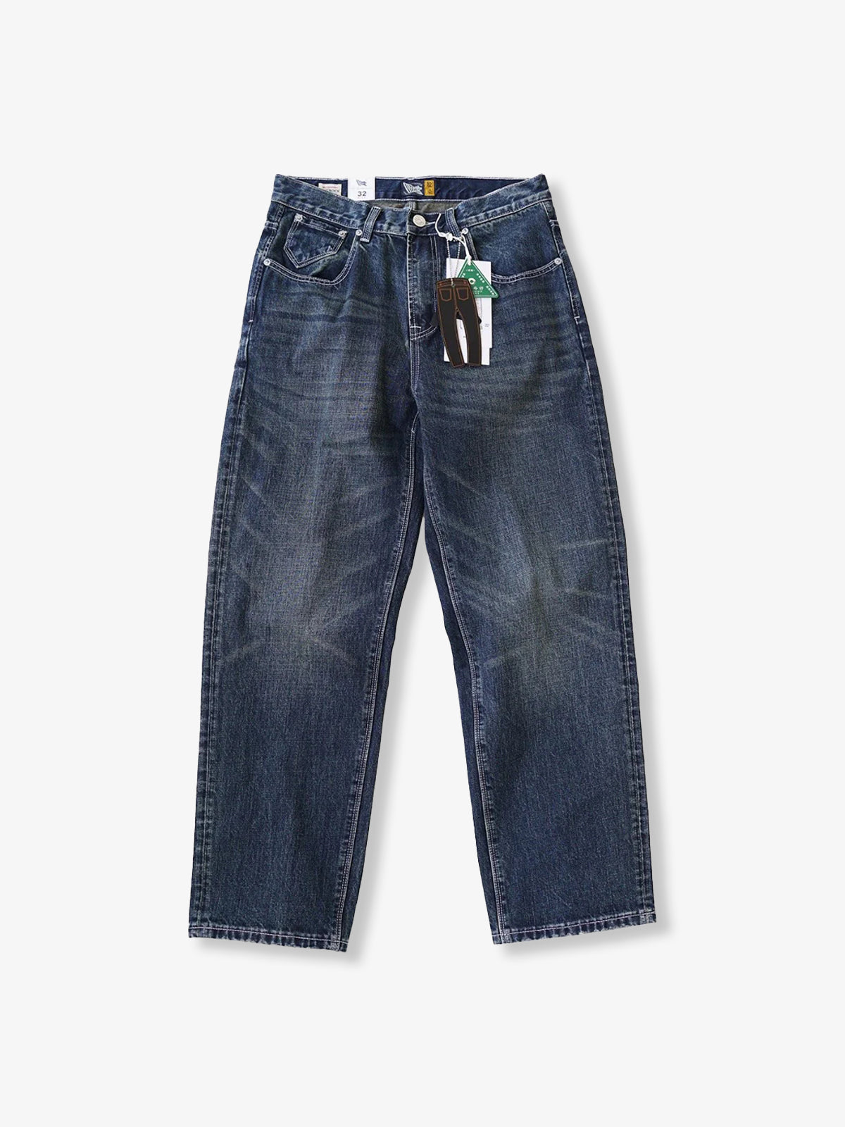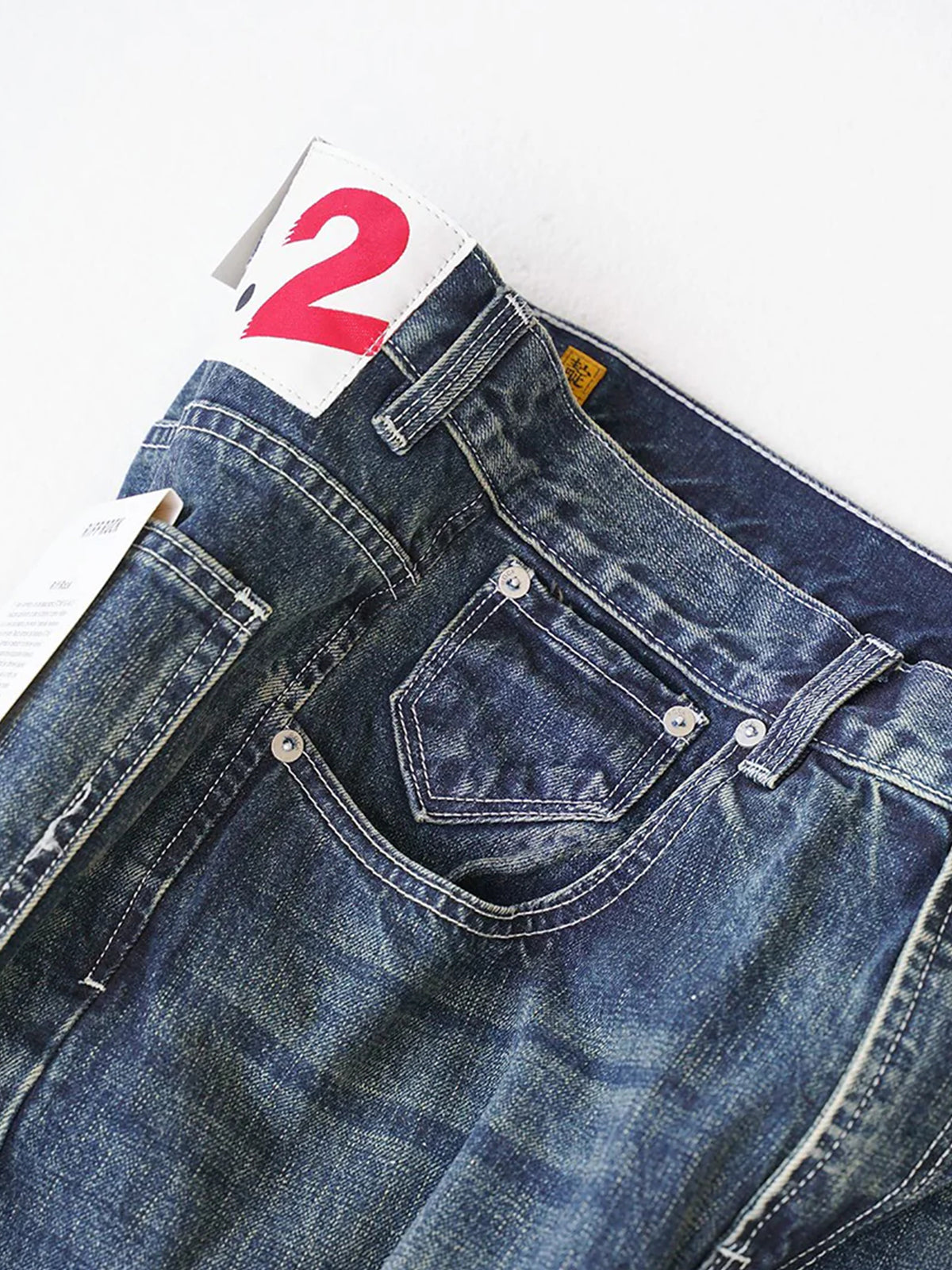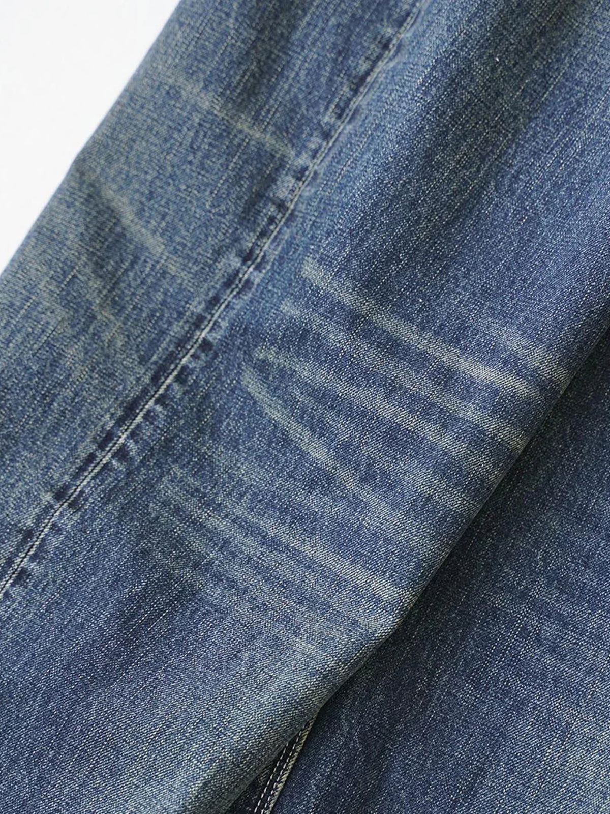 A basic yet rugged and masculine dark-colored denim pant makes its appearance. The overall design adopts a straight silhouette that draws a beautiful line, pursuing refined simplicity. Crafted with meticulous stitching by skilled artisans, the finish exudes a sense of luxury. In addition, whisker processing and wash processing add rich expression, with exquisite fading that creates a vintage-like texture. It is finished into a piece that feels as if it has been worn for years, full of depth and character. A recommended item for those seeking a carefully crafted pair to wear for a long time.