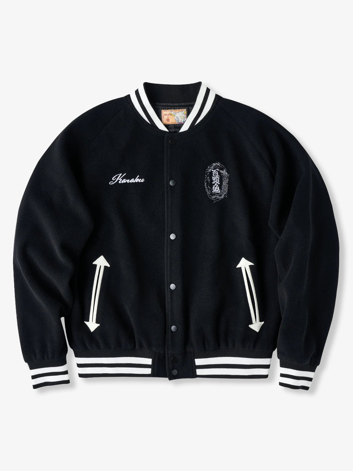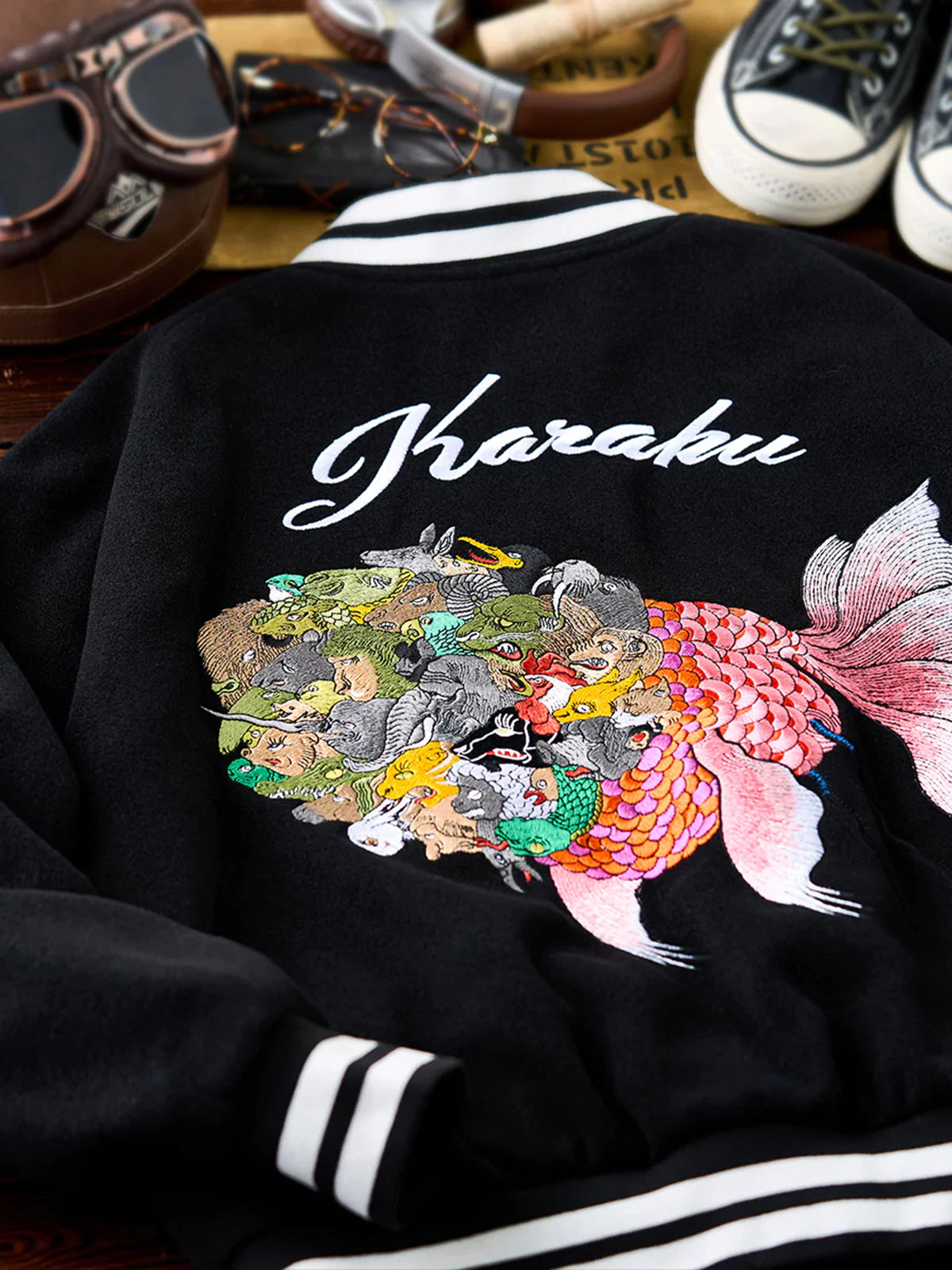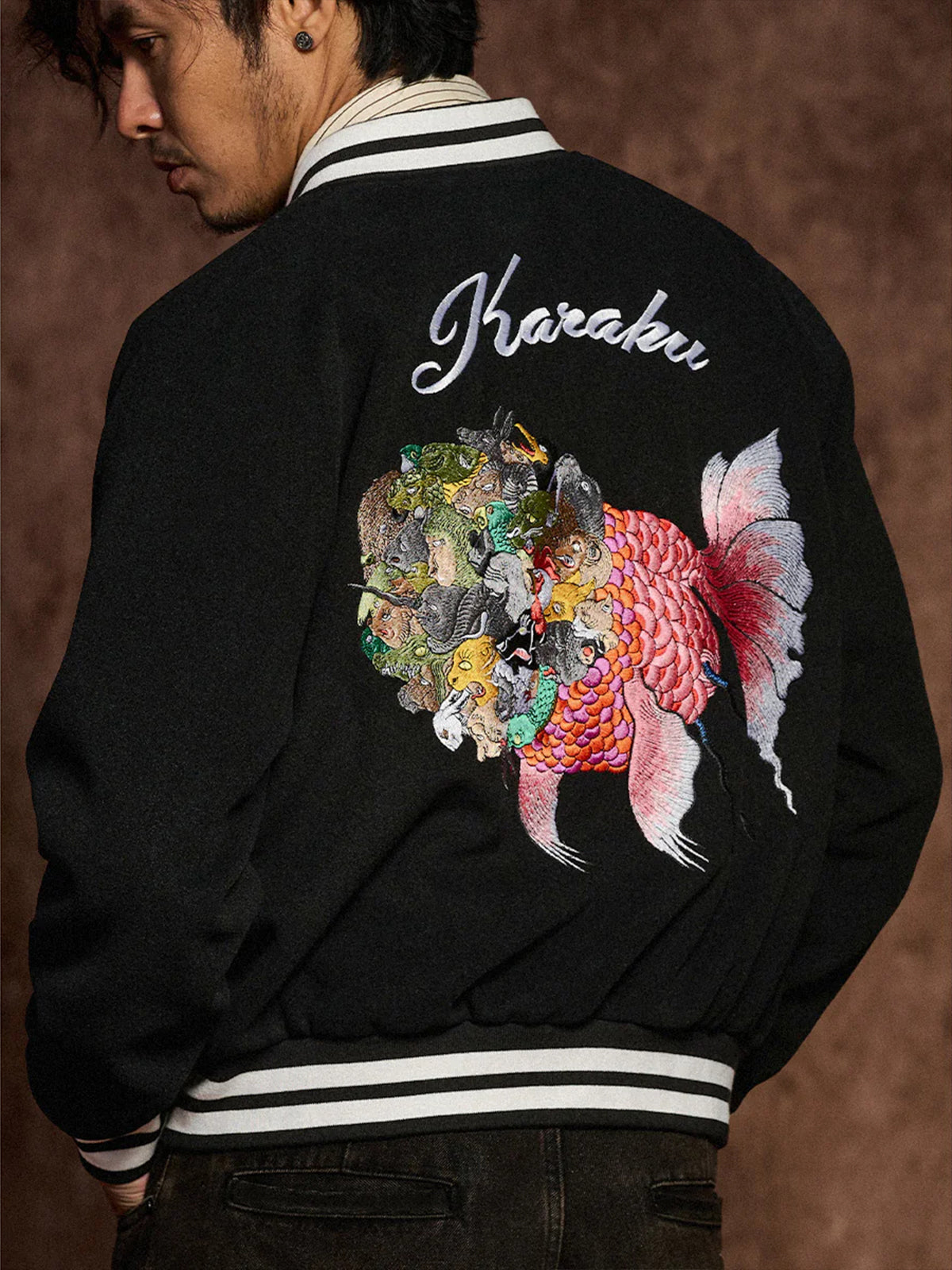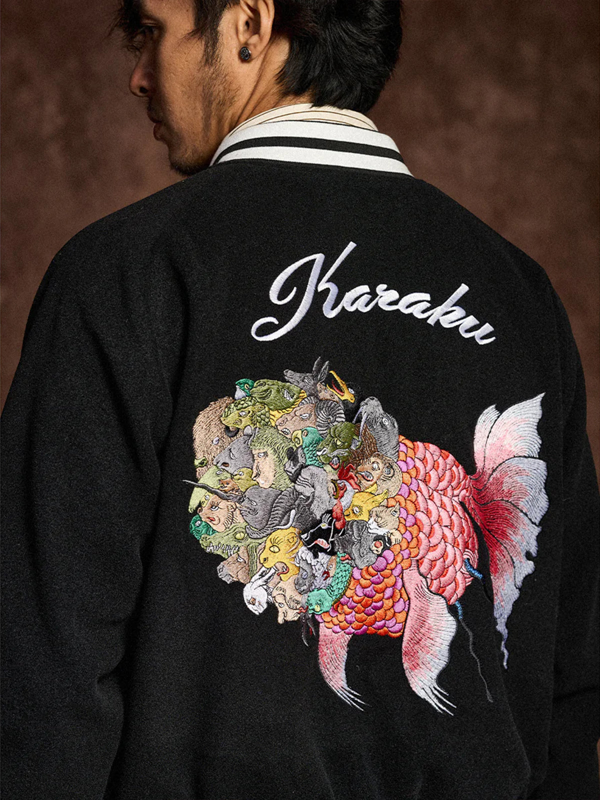 Karaku × Ayako Ishiguro “Hundred-Headed Fish” Embroidered Ukiyo-e Style Baseball Jacket