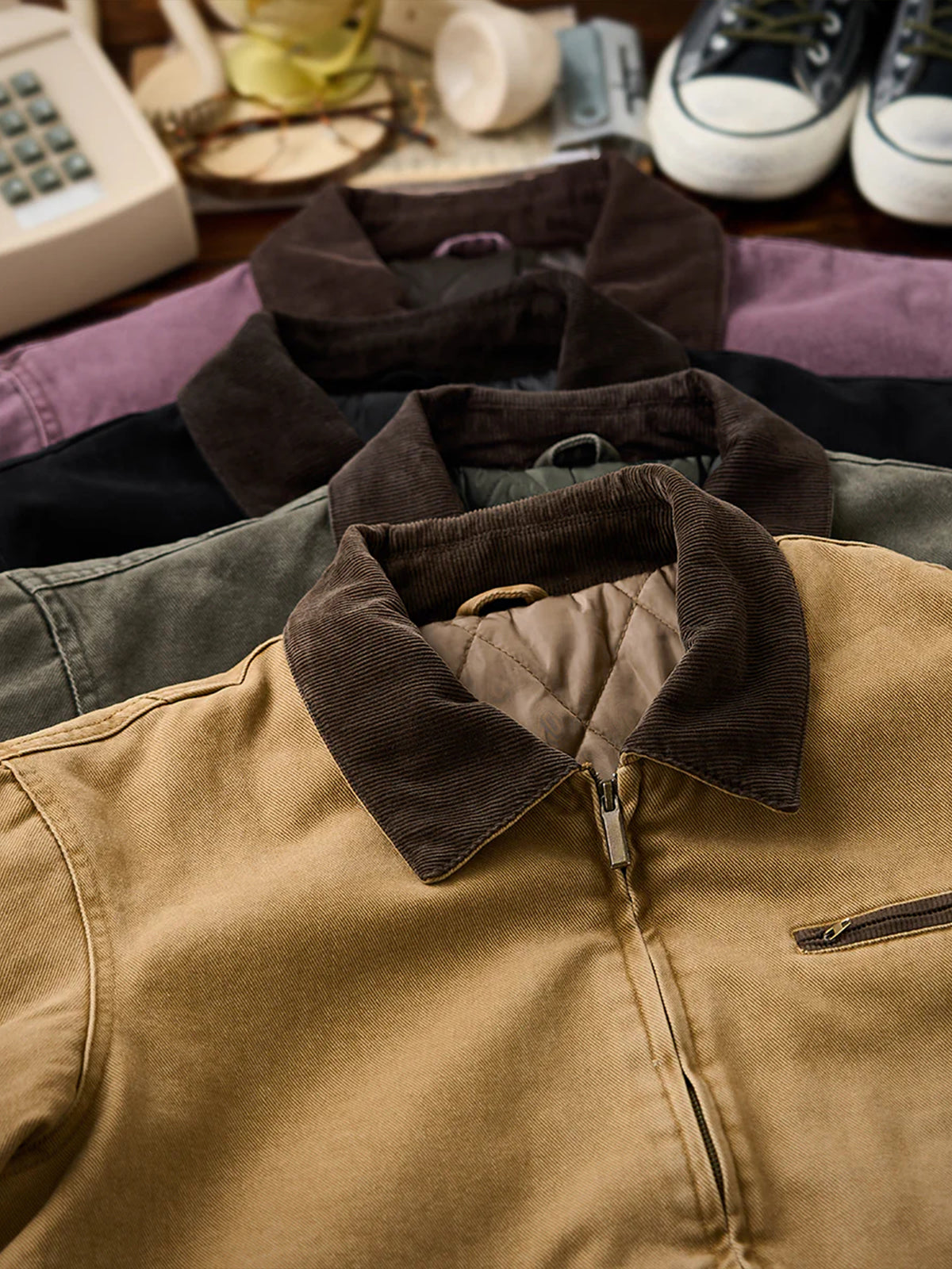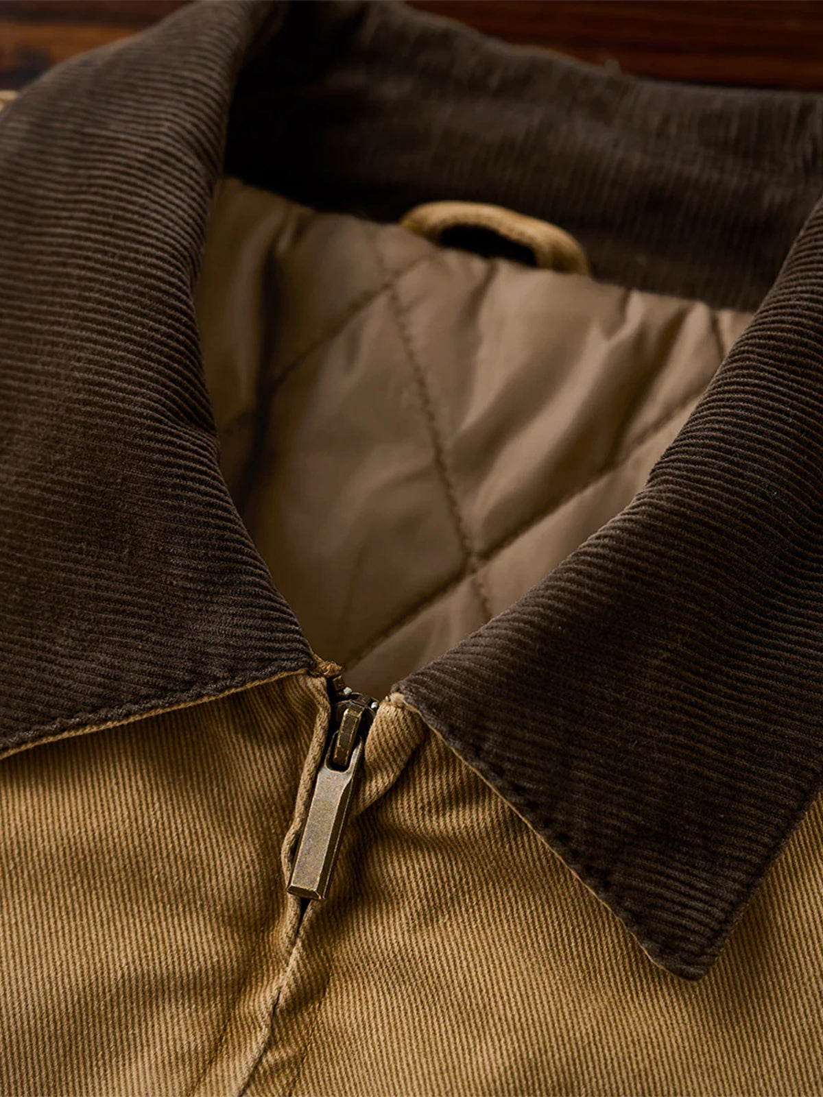 Detroit Jacket with Corduroy Collar and Diamond-Quilted Padded Lining