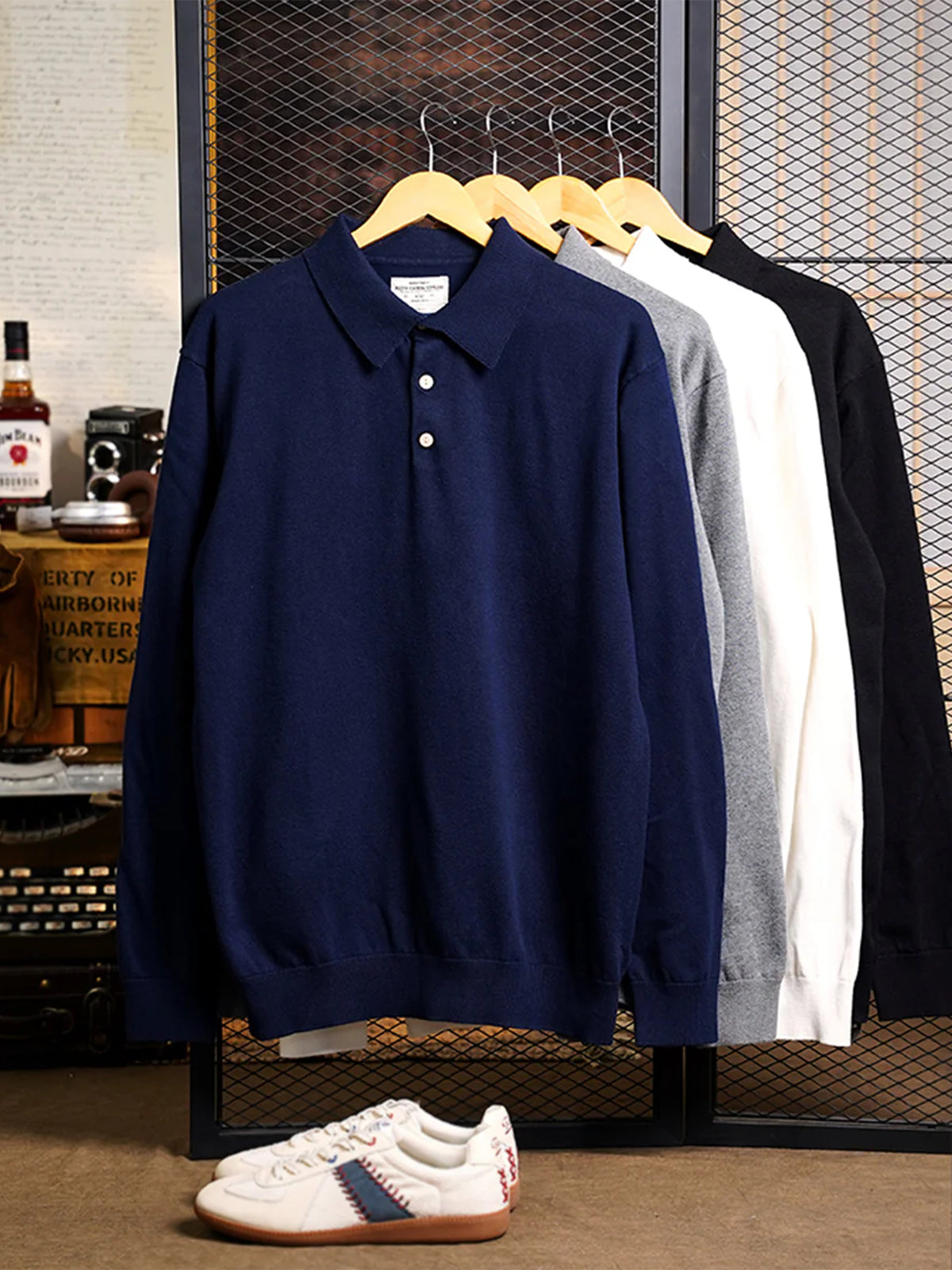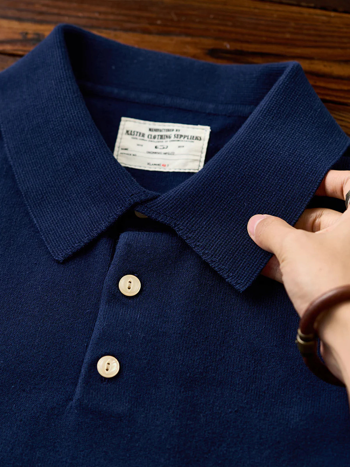 Clean-Fit Cotton Knit Polo Shirt with Shell Buttons