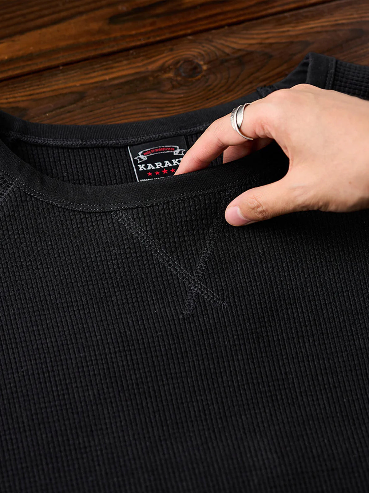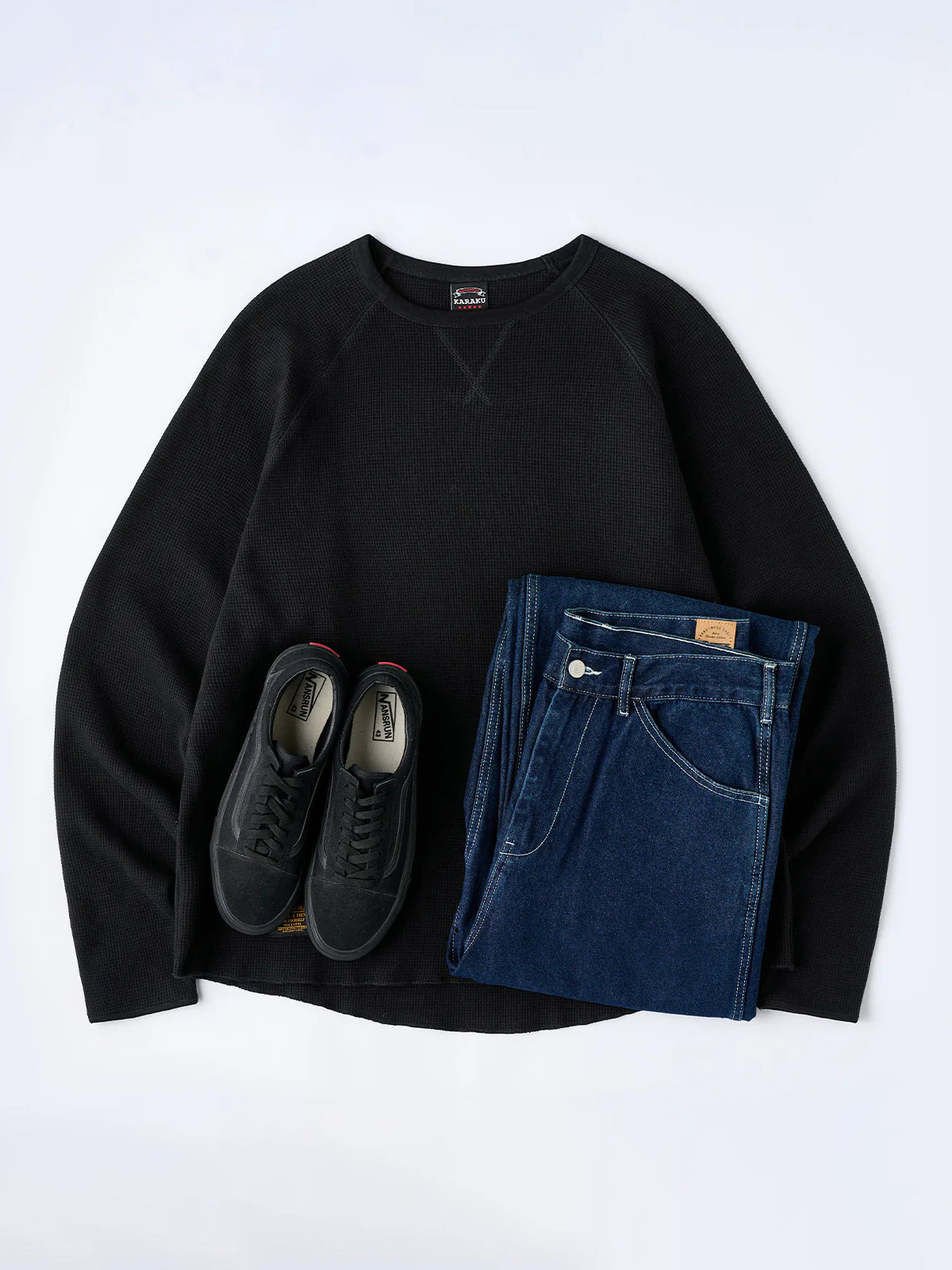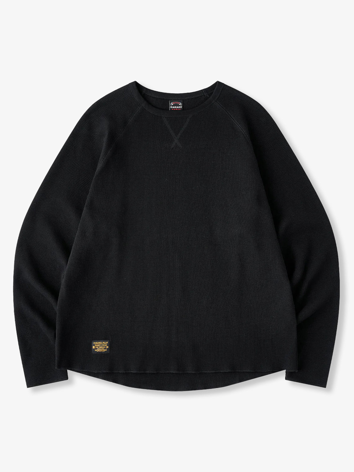 Waffle Raglan Sleeve Long T-Shirt with V-Gusset