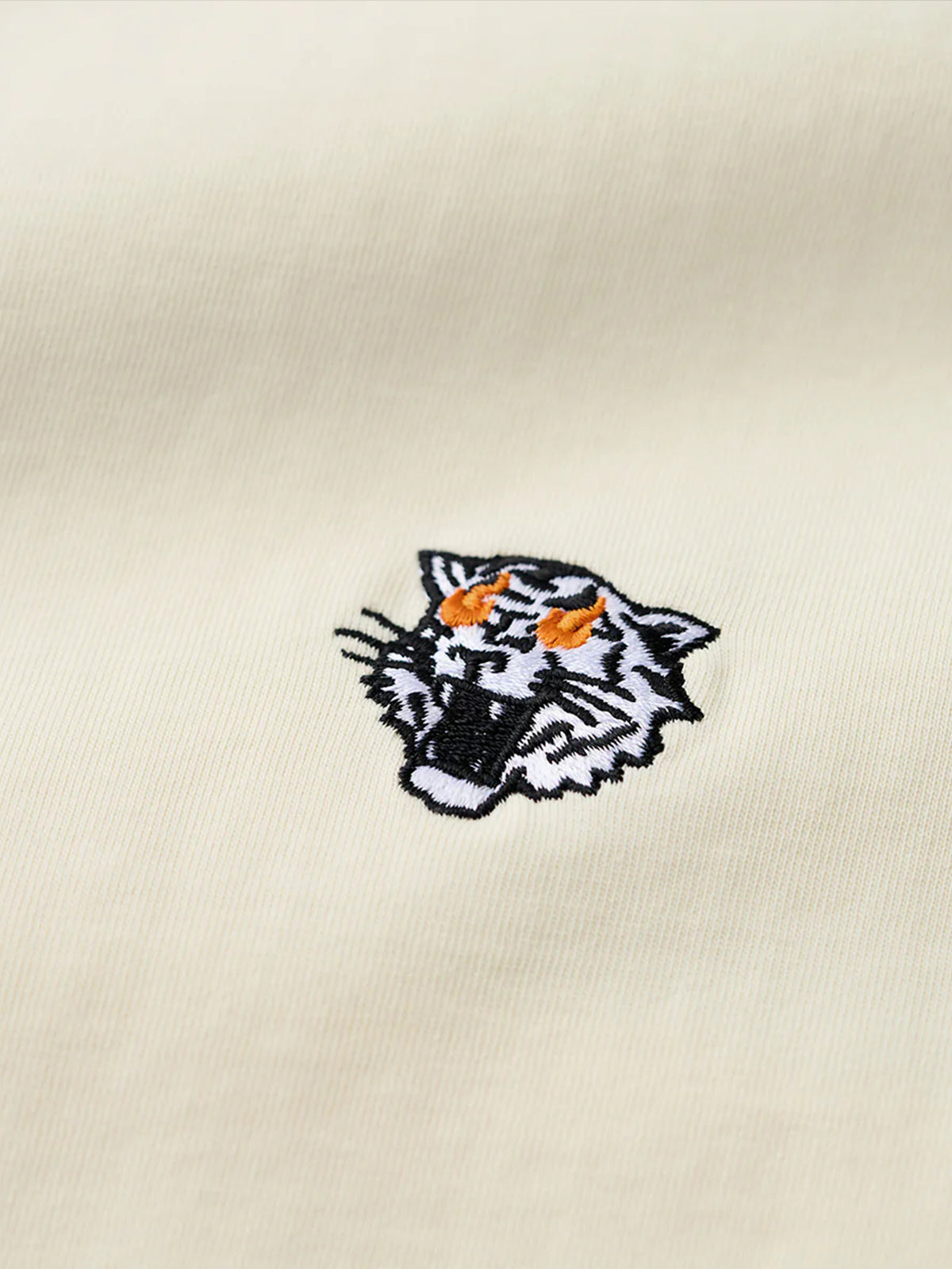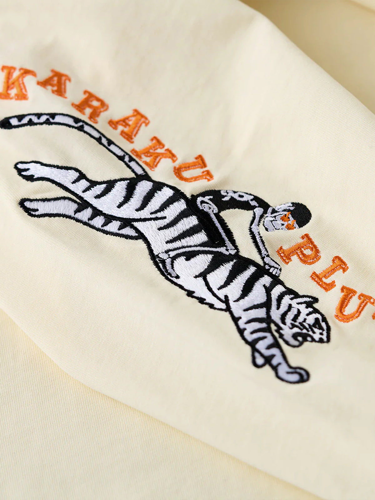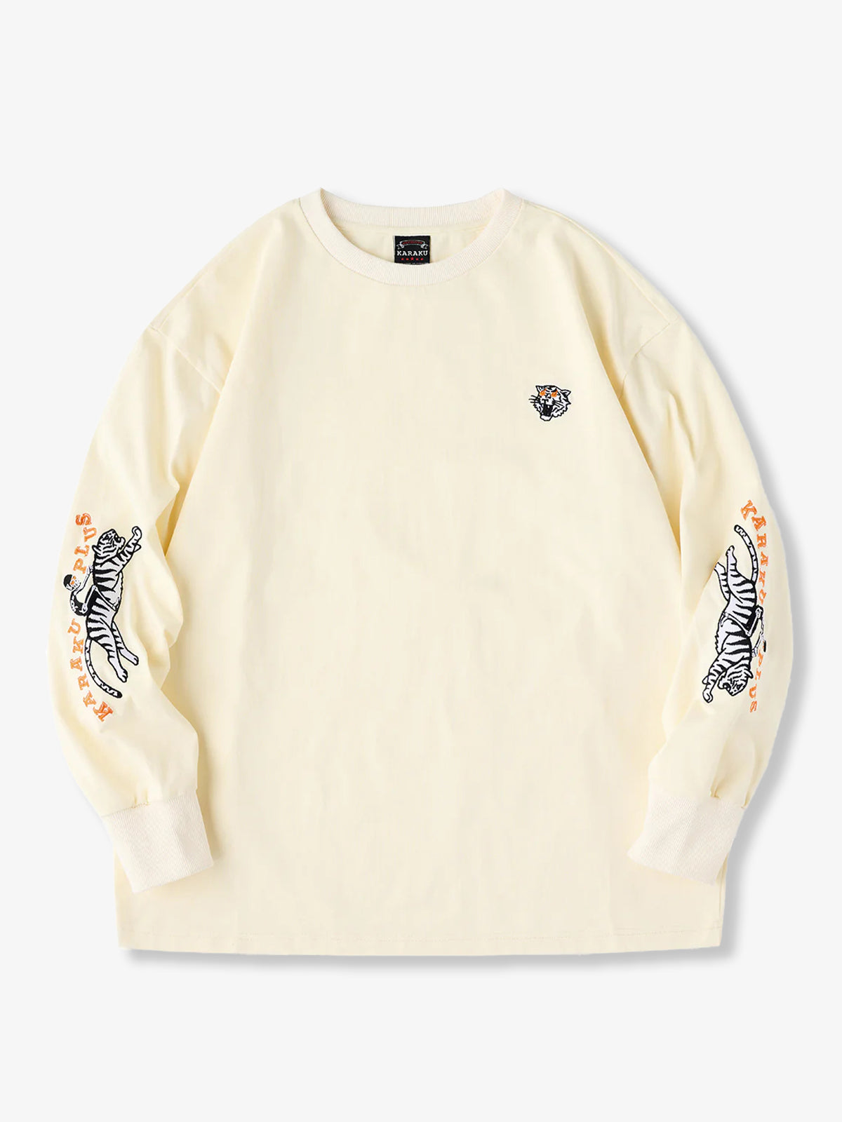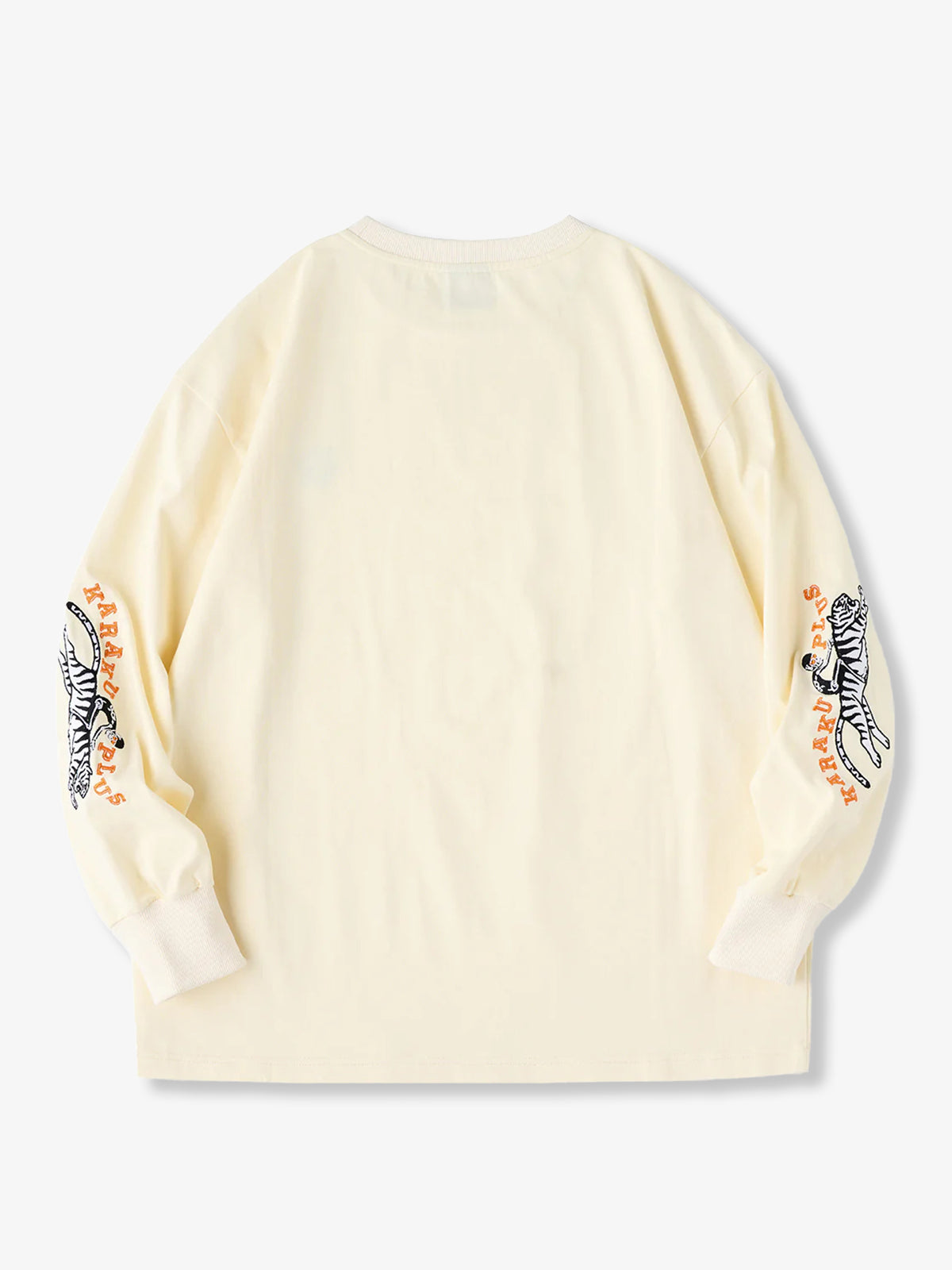 "Roaring Tiger & Skull Riders" Embroidered Cotton Long T-shirt