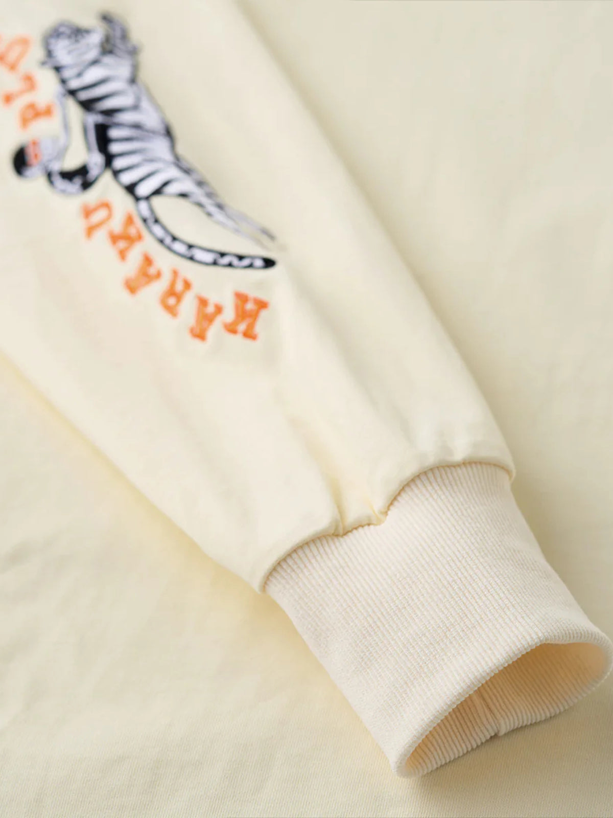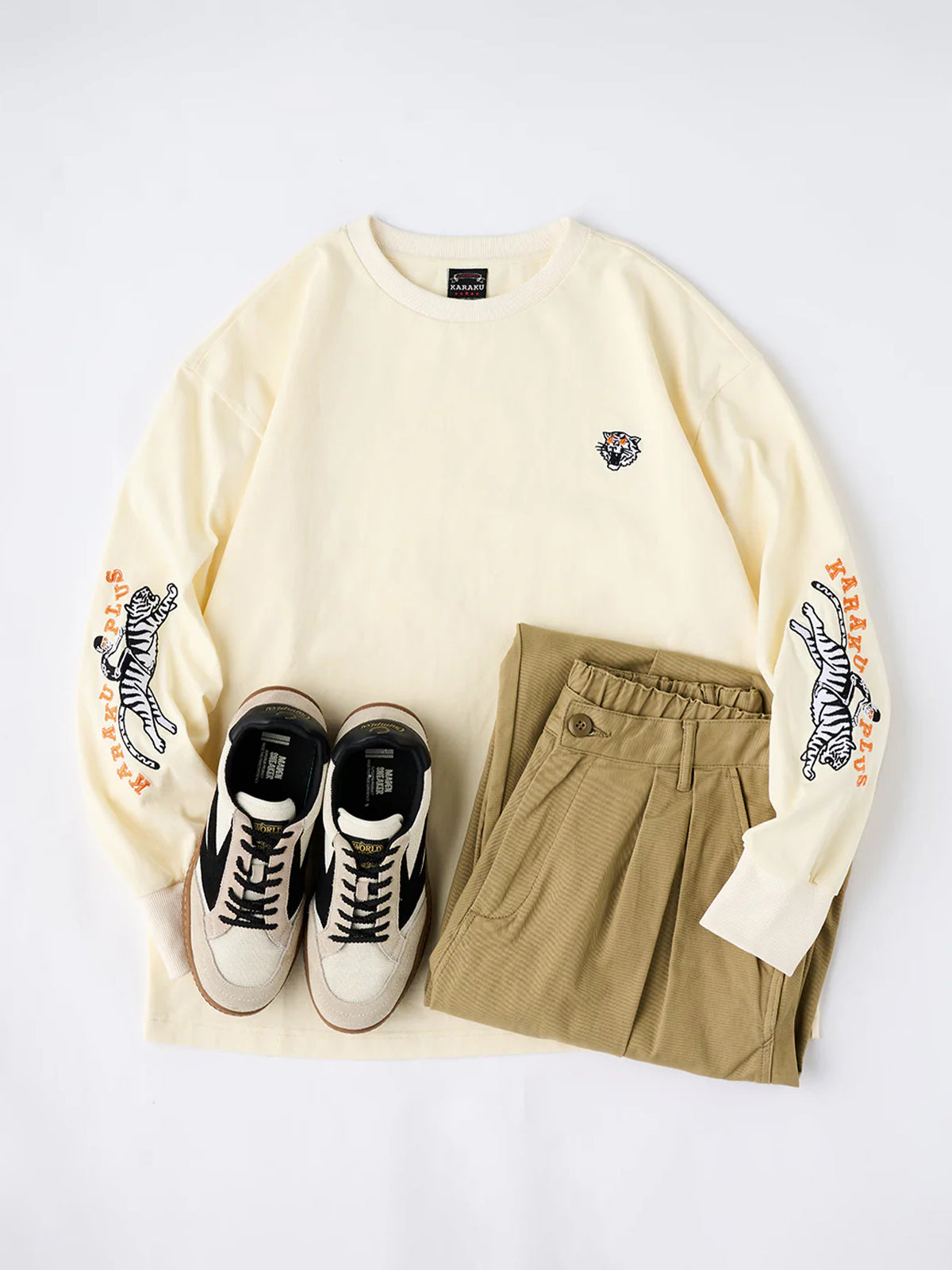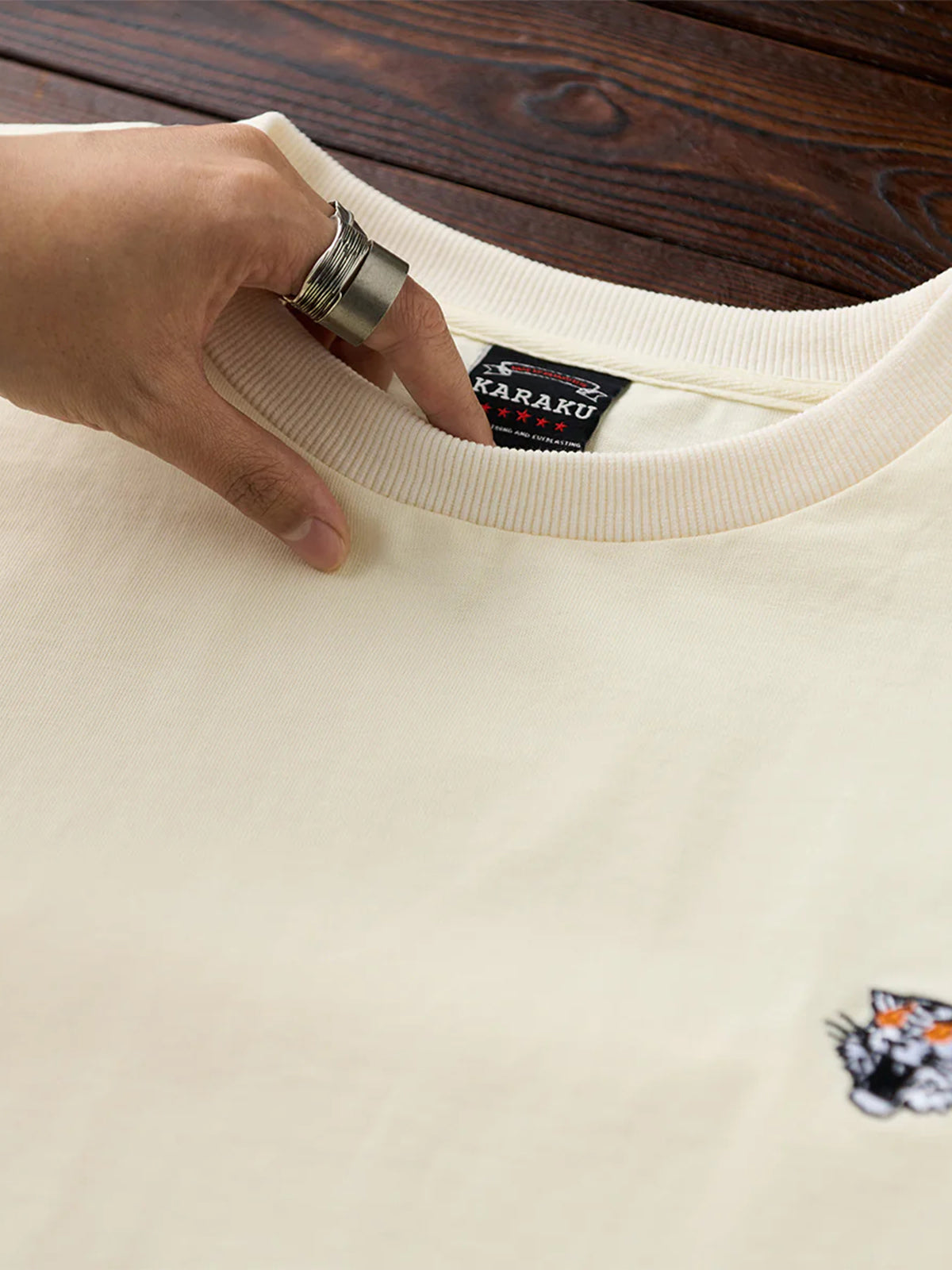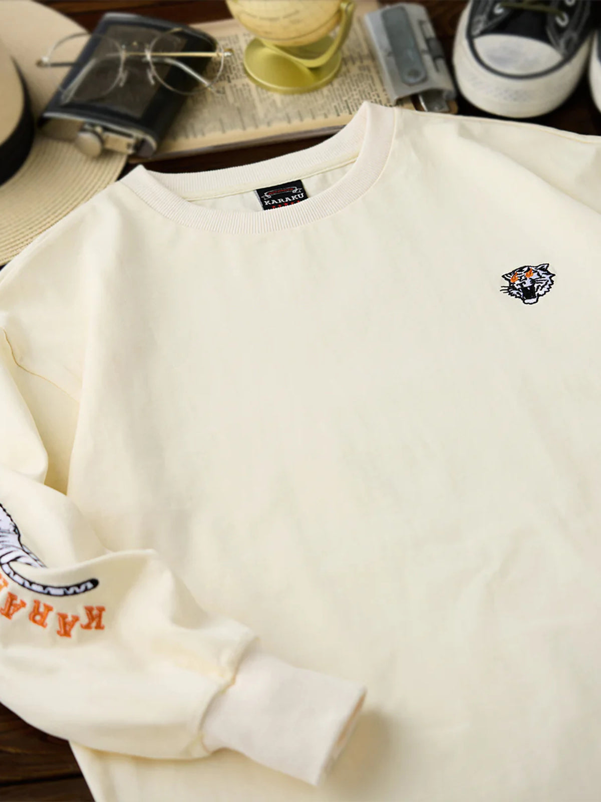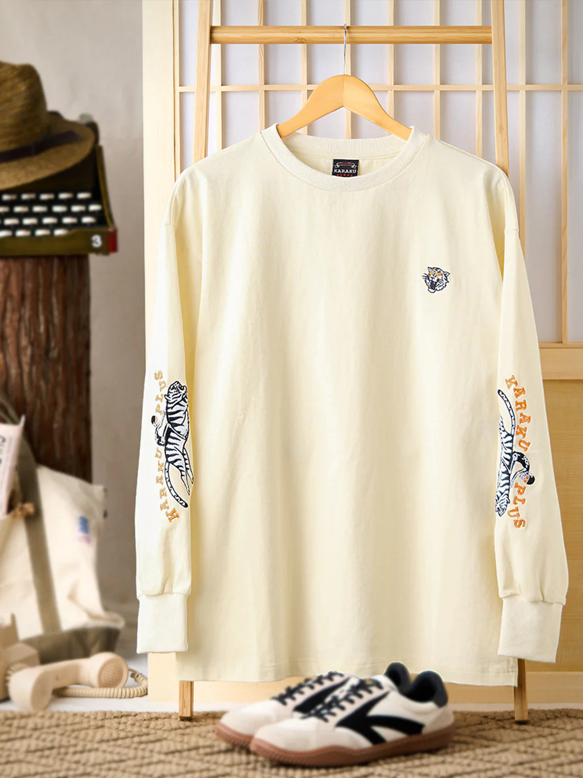 "Roaring Tiger & Skull Riders" Embroidered Cotton Long T-shirt