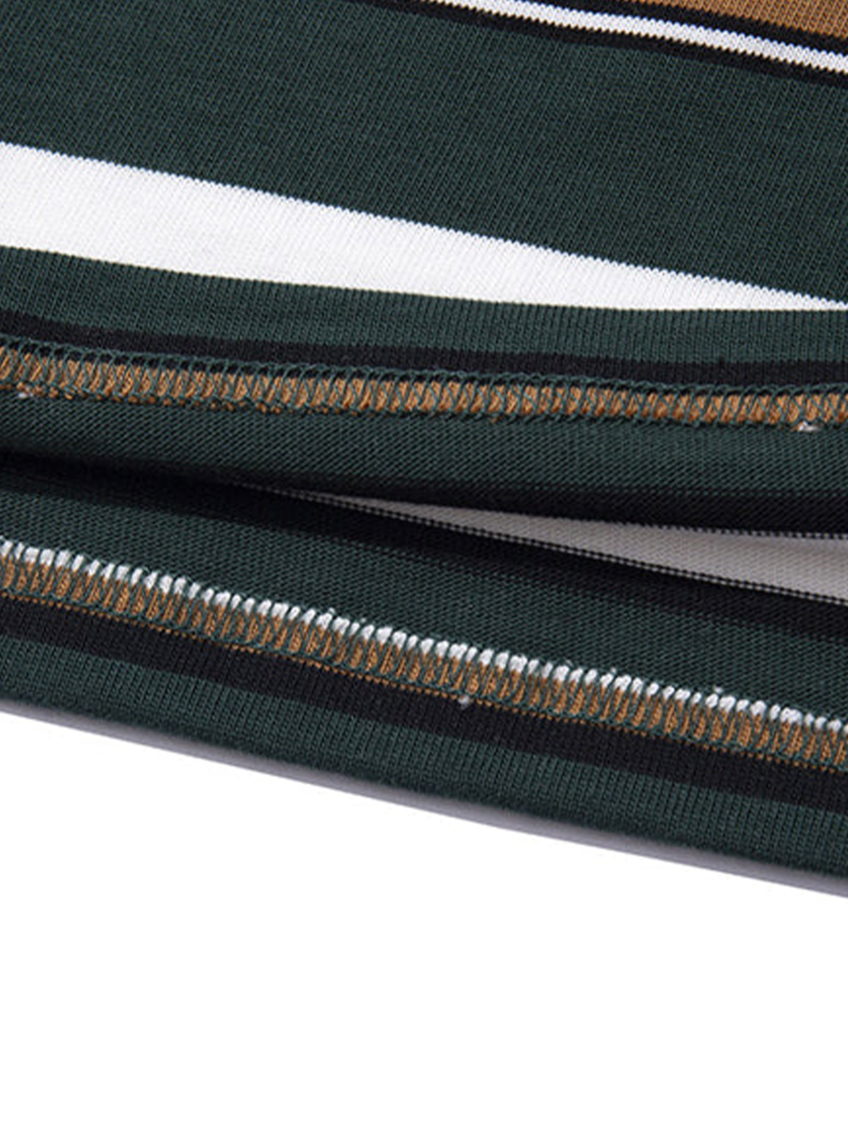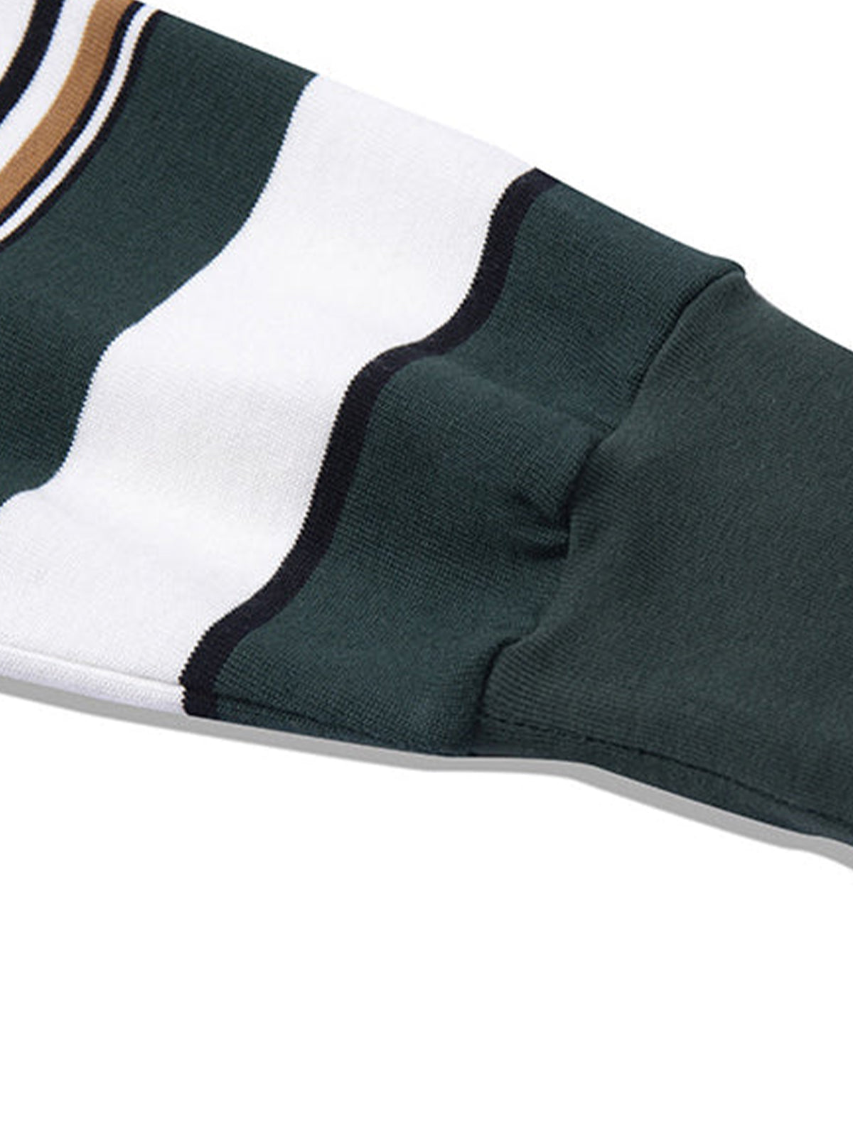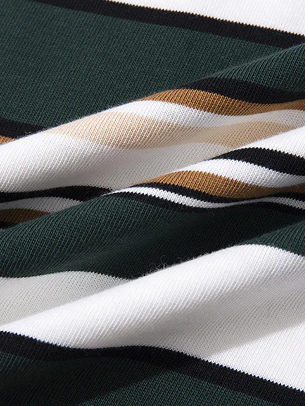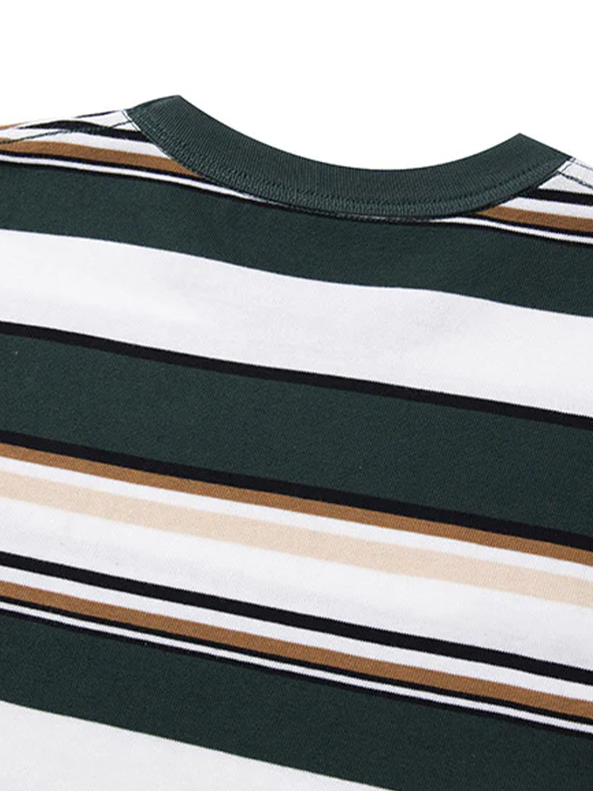 This striped long-sleeve tee features multiple stripe patterns with variations in color and line thickness, creating a dynamic and distinctive look. Designed with a classic crew neck, ribbed cuffs, and hem for a secure fit, it delivers comfort and casual style perfect for transitional seasons and layering. Available in a range of color variations to suit different personal styles.