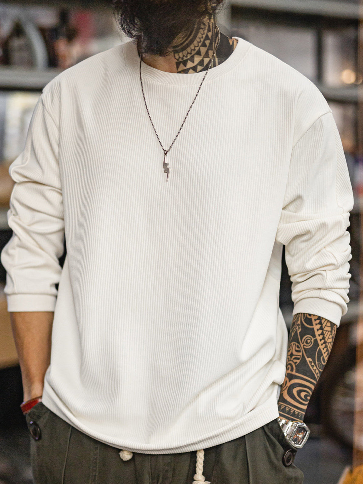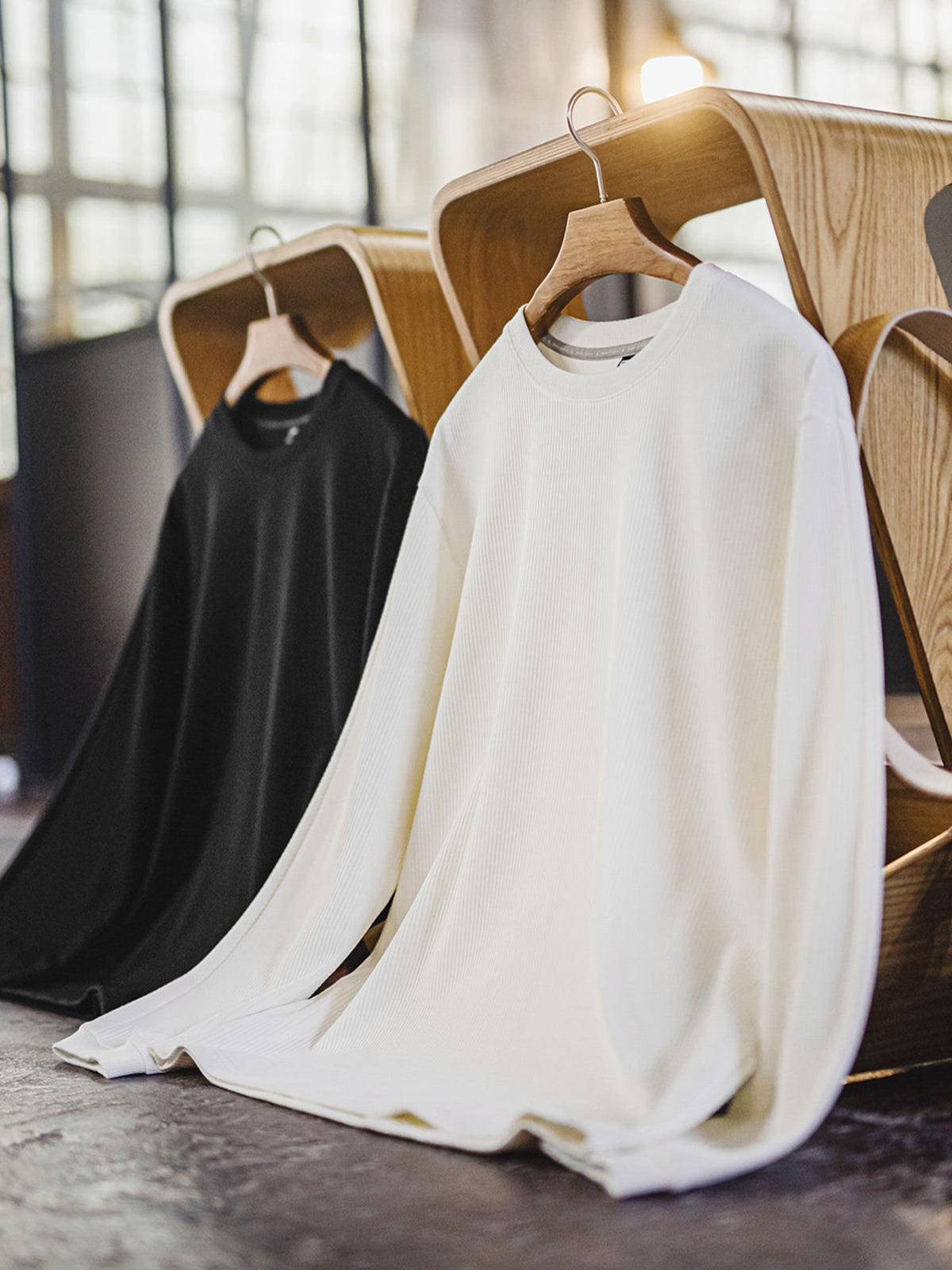 3D Ribbed Lightweight Knit Long-Sleeve Tee