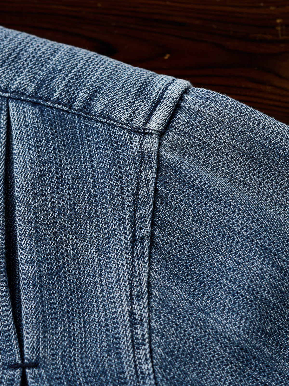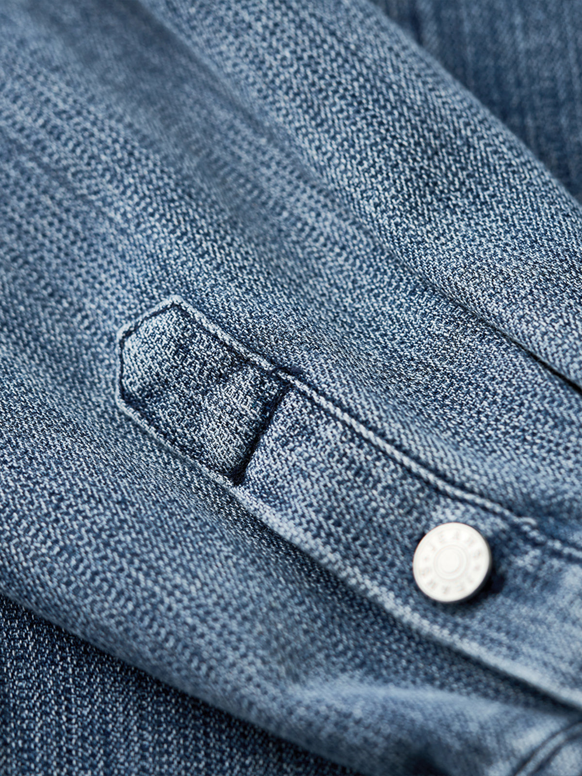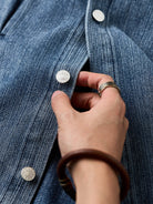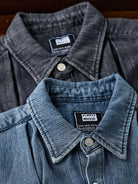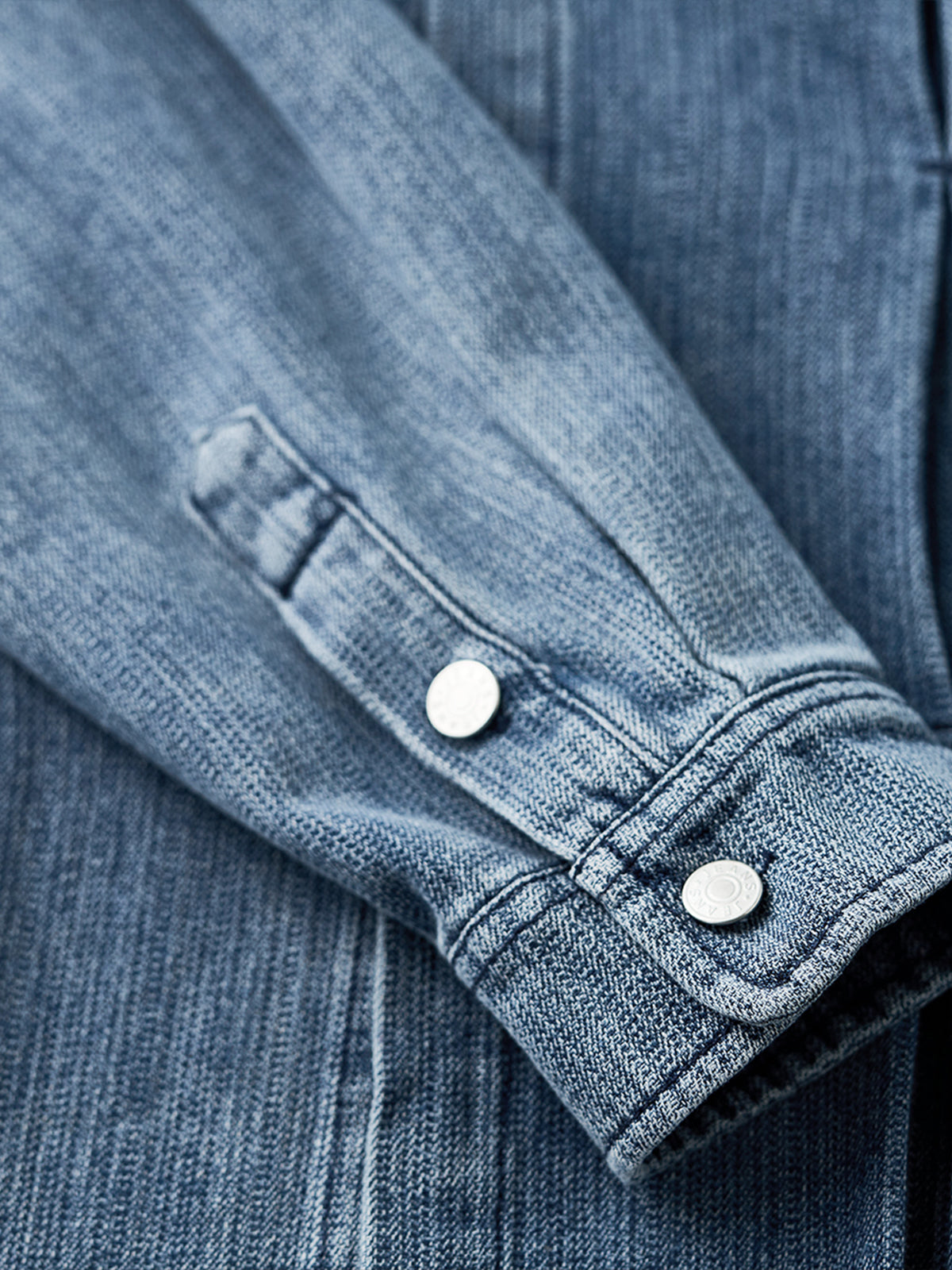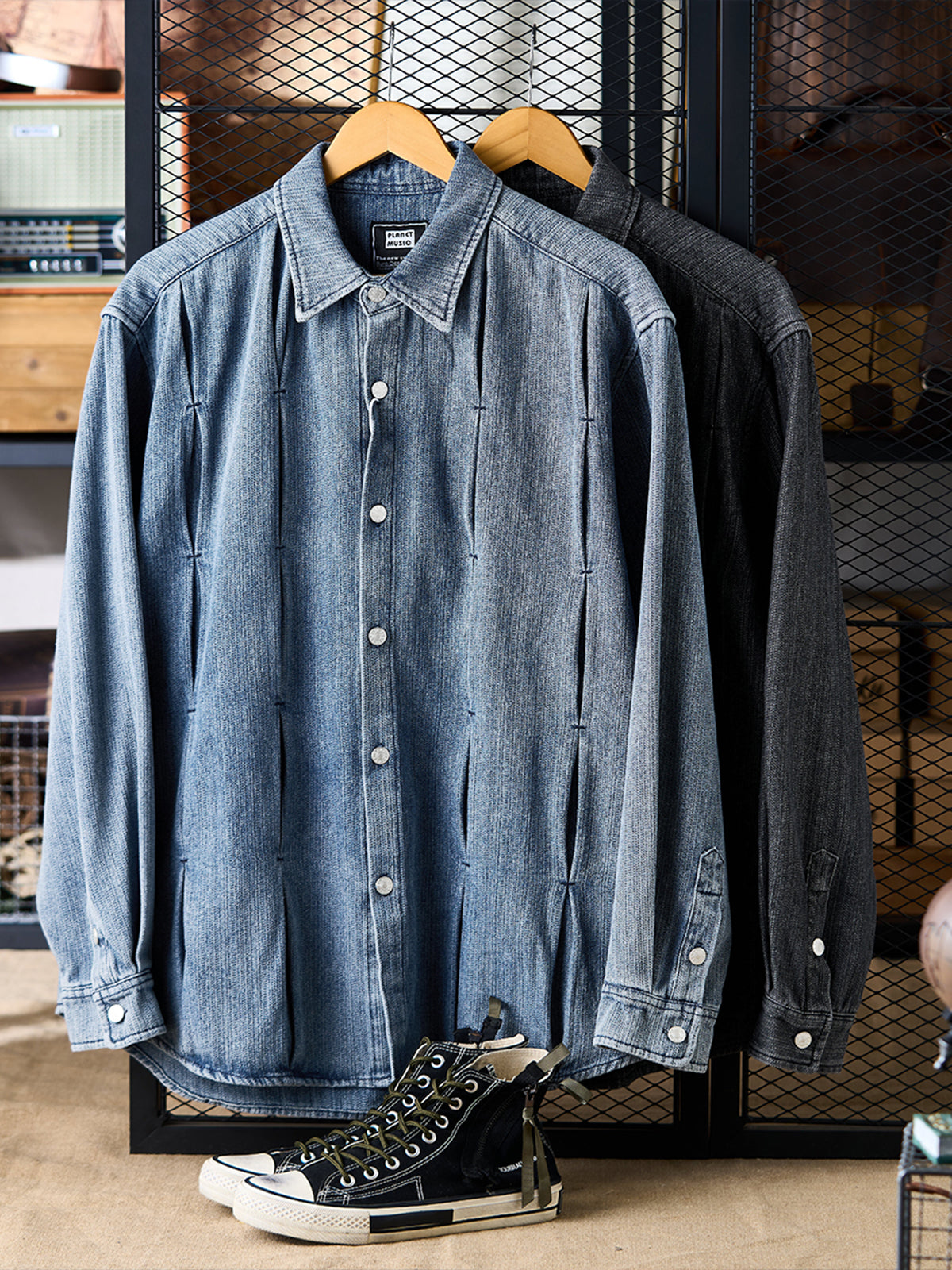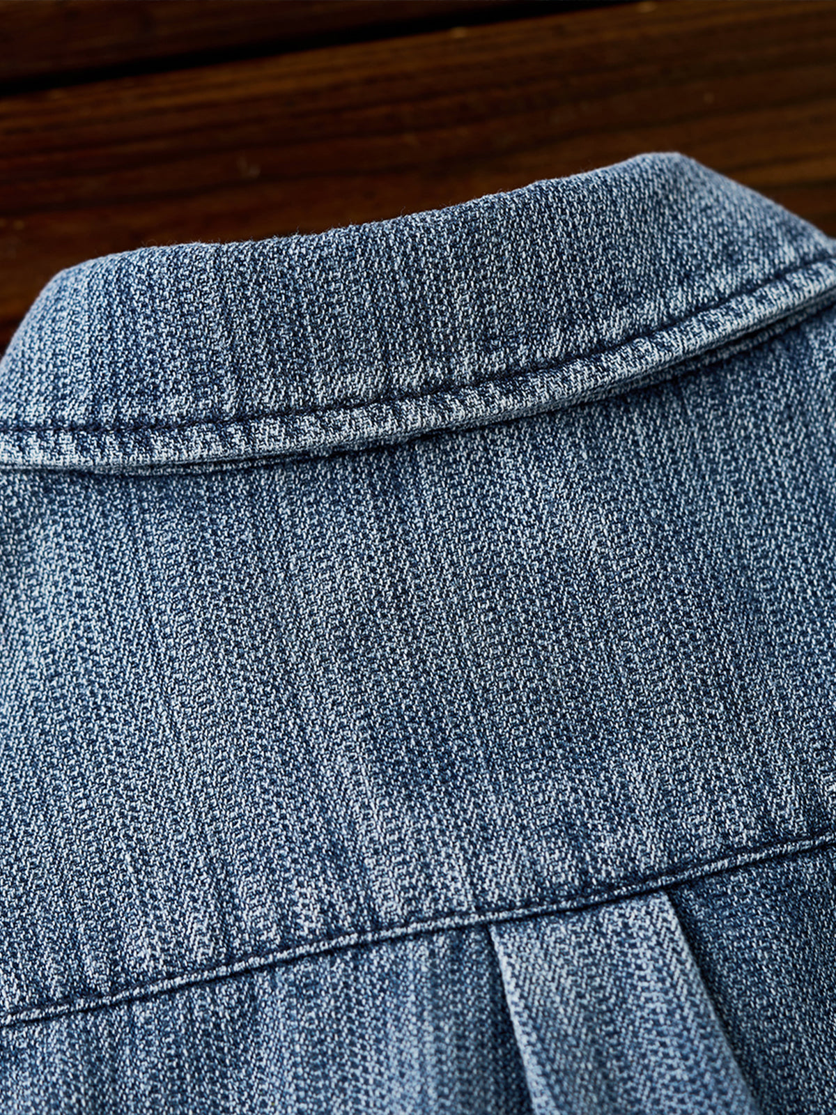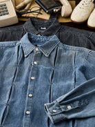 Pin-Tuck Stitch Washed Denim Long Sleeve Shirt