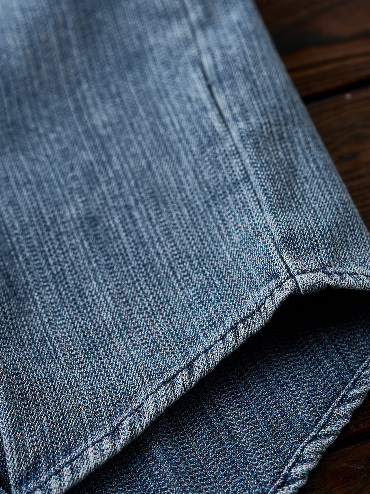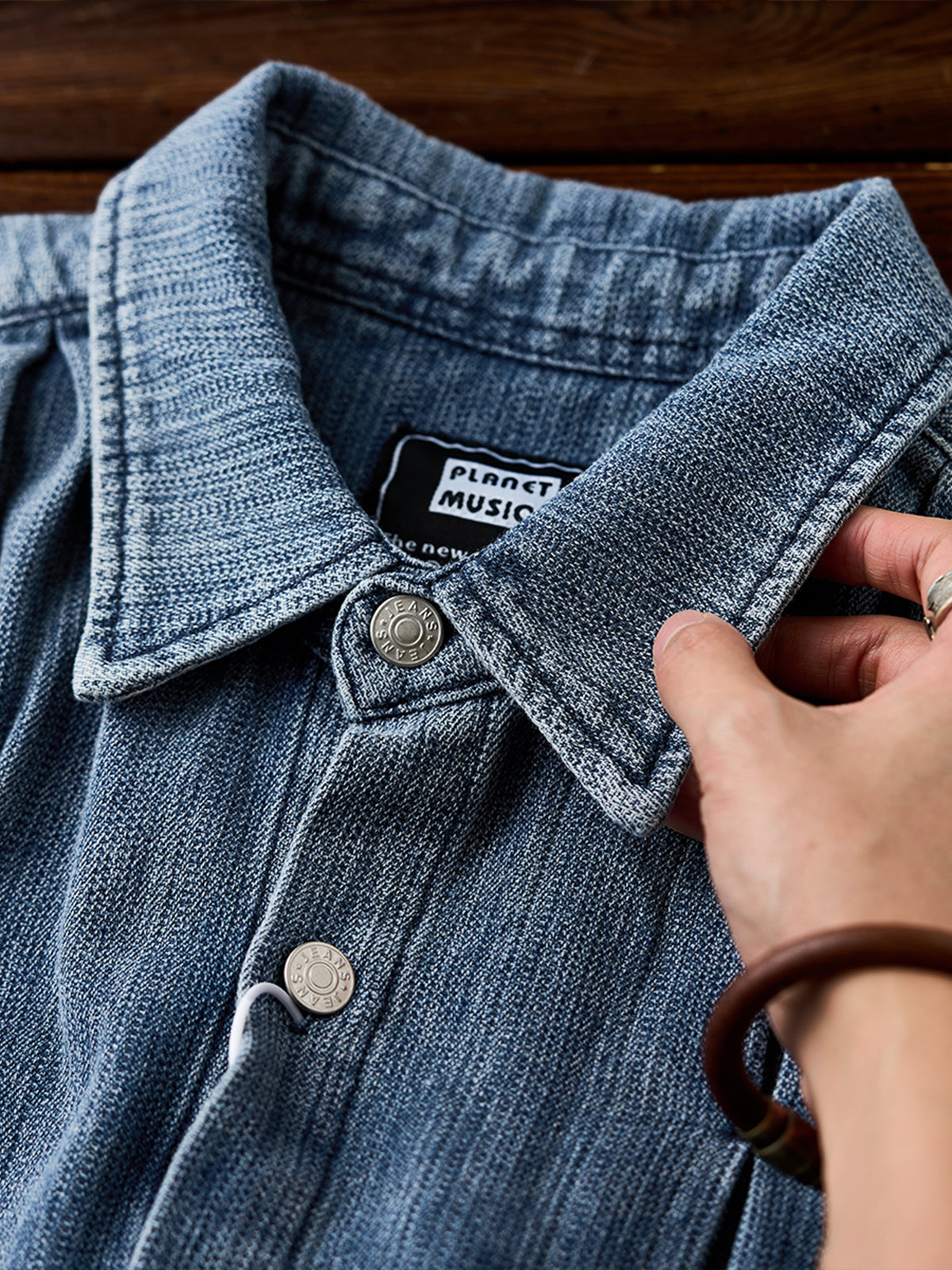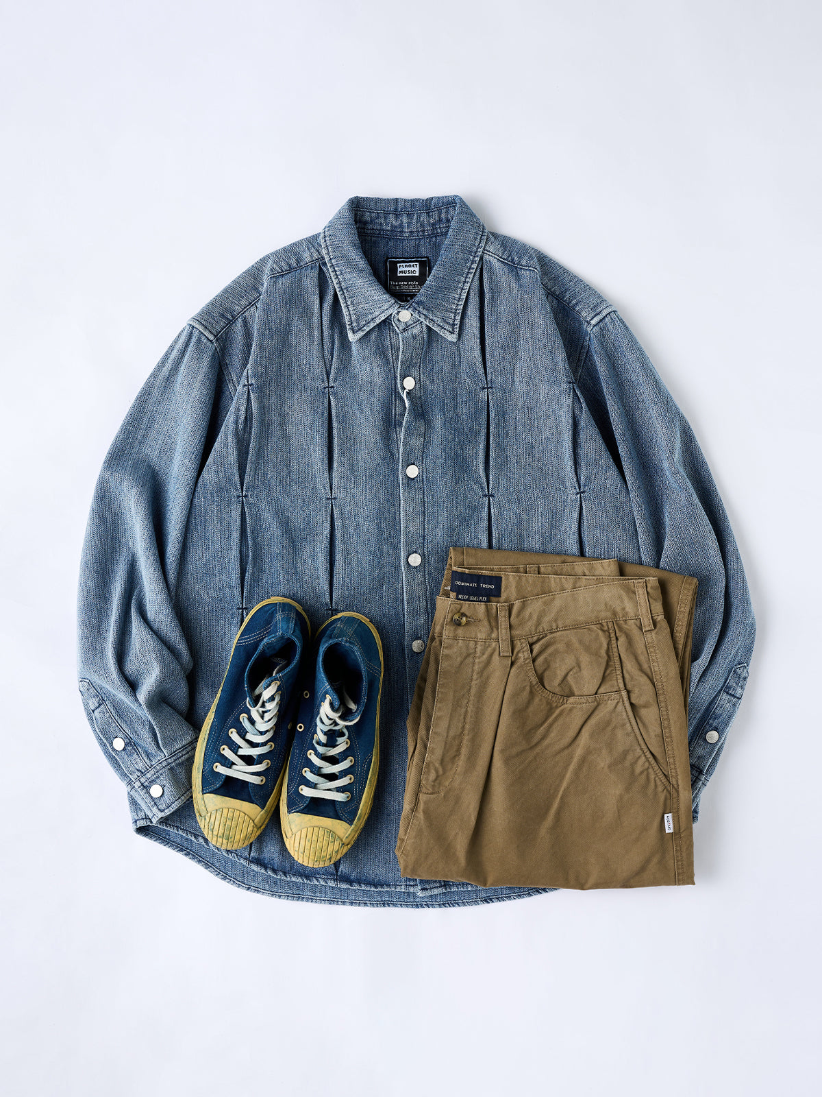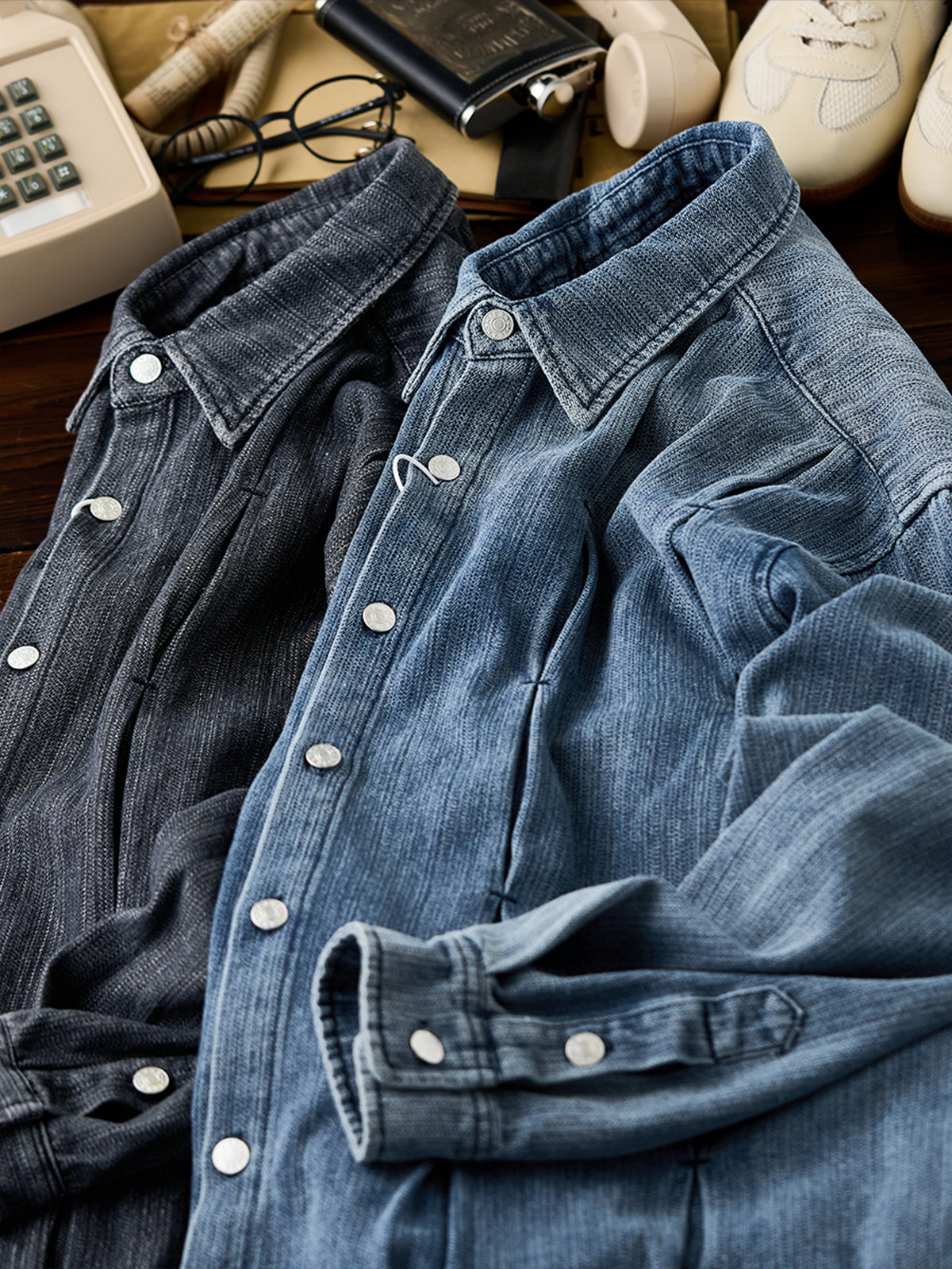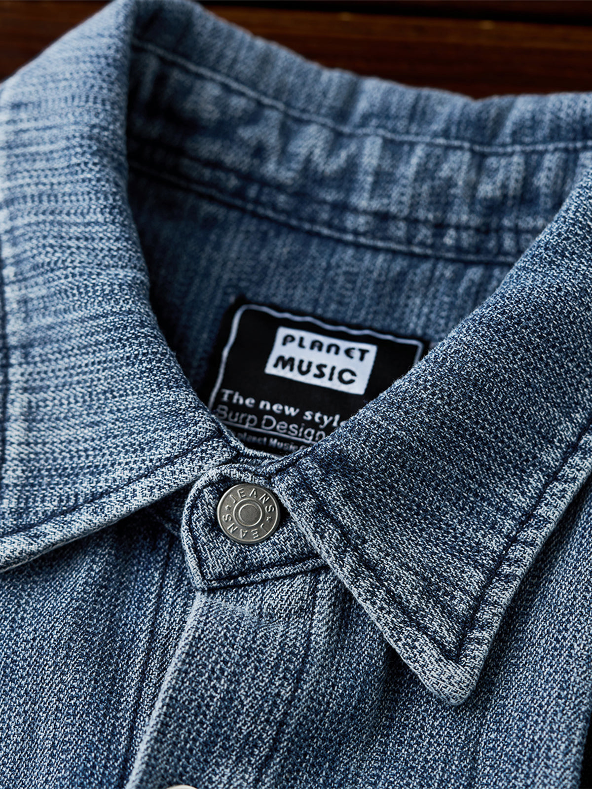 Pin-Tuck Stitch Washed Denim Long Sleeve Shirt