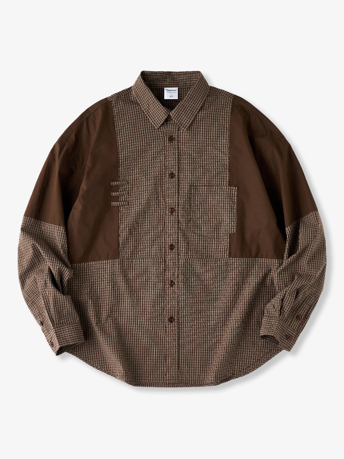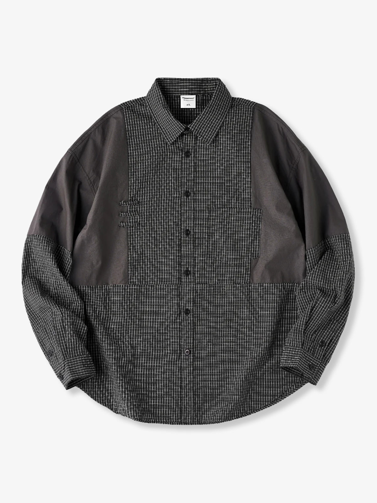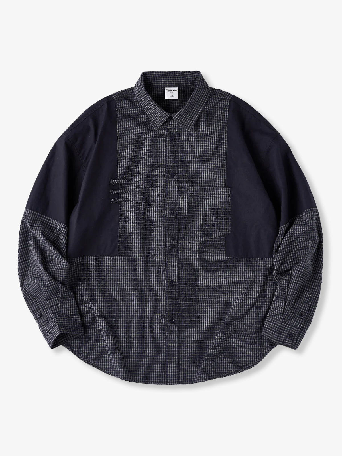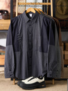 Solid Panel Patchwork Plaid Work Shirt - Three Colors
