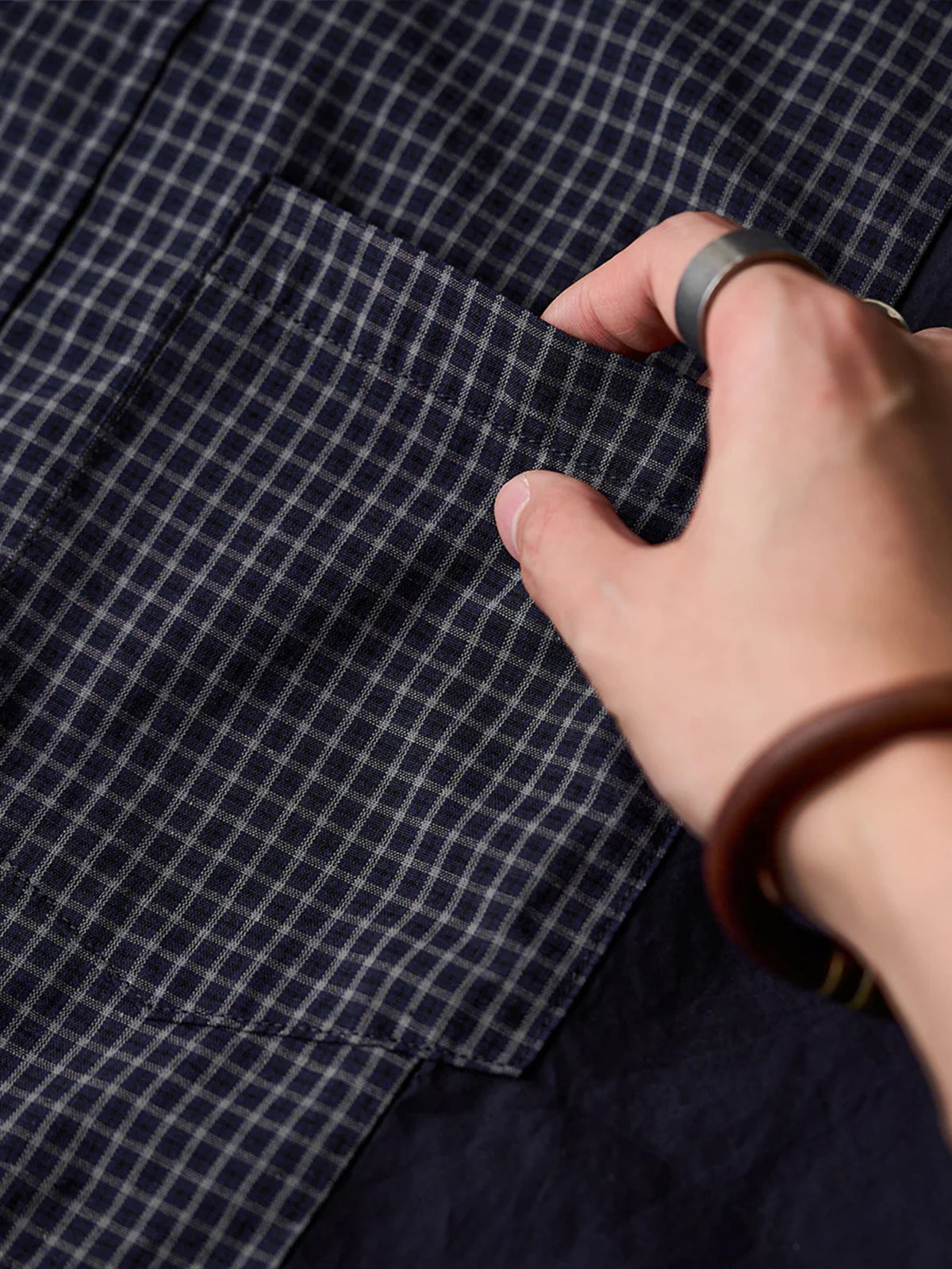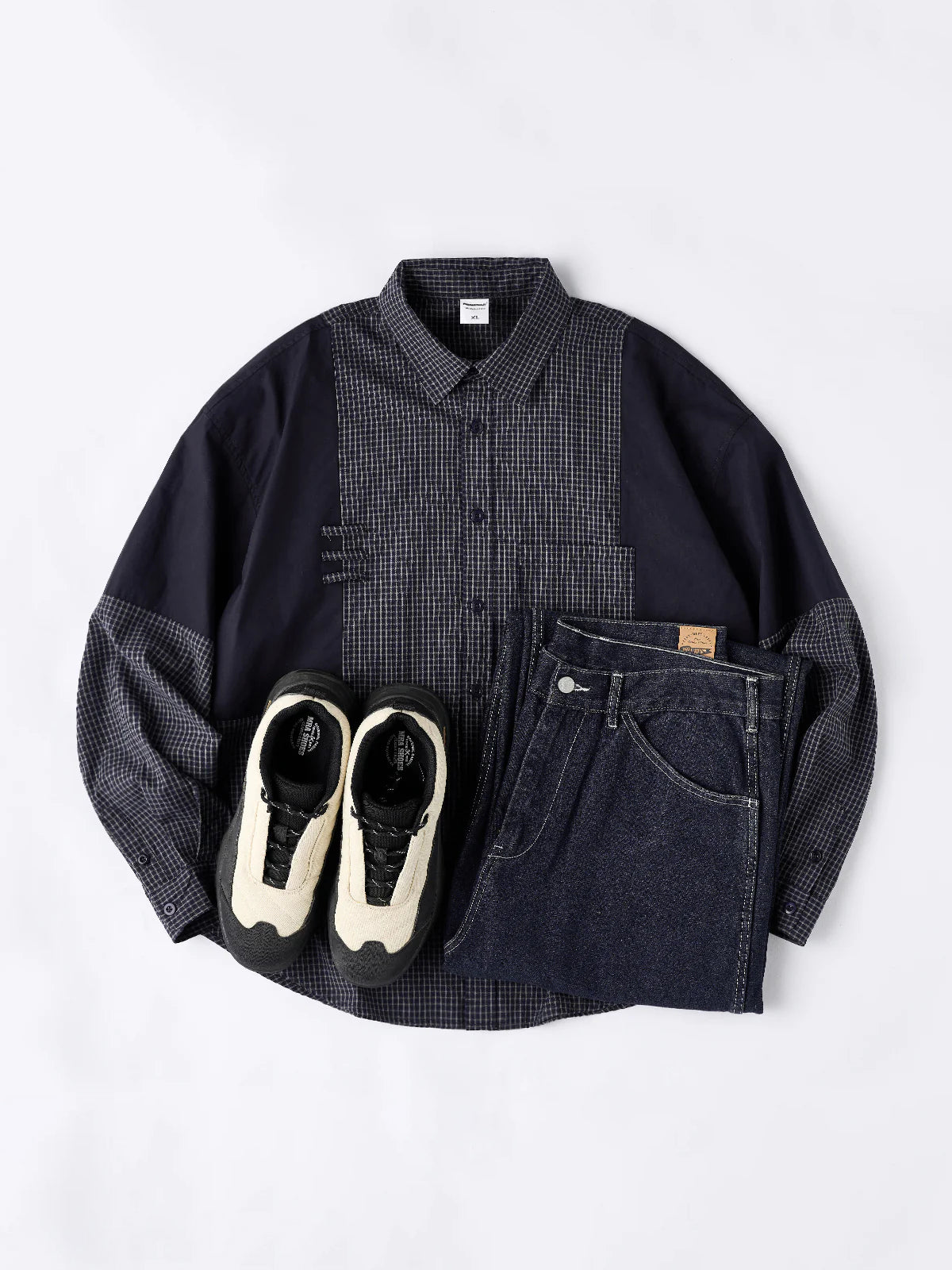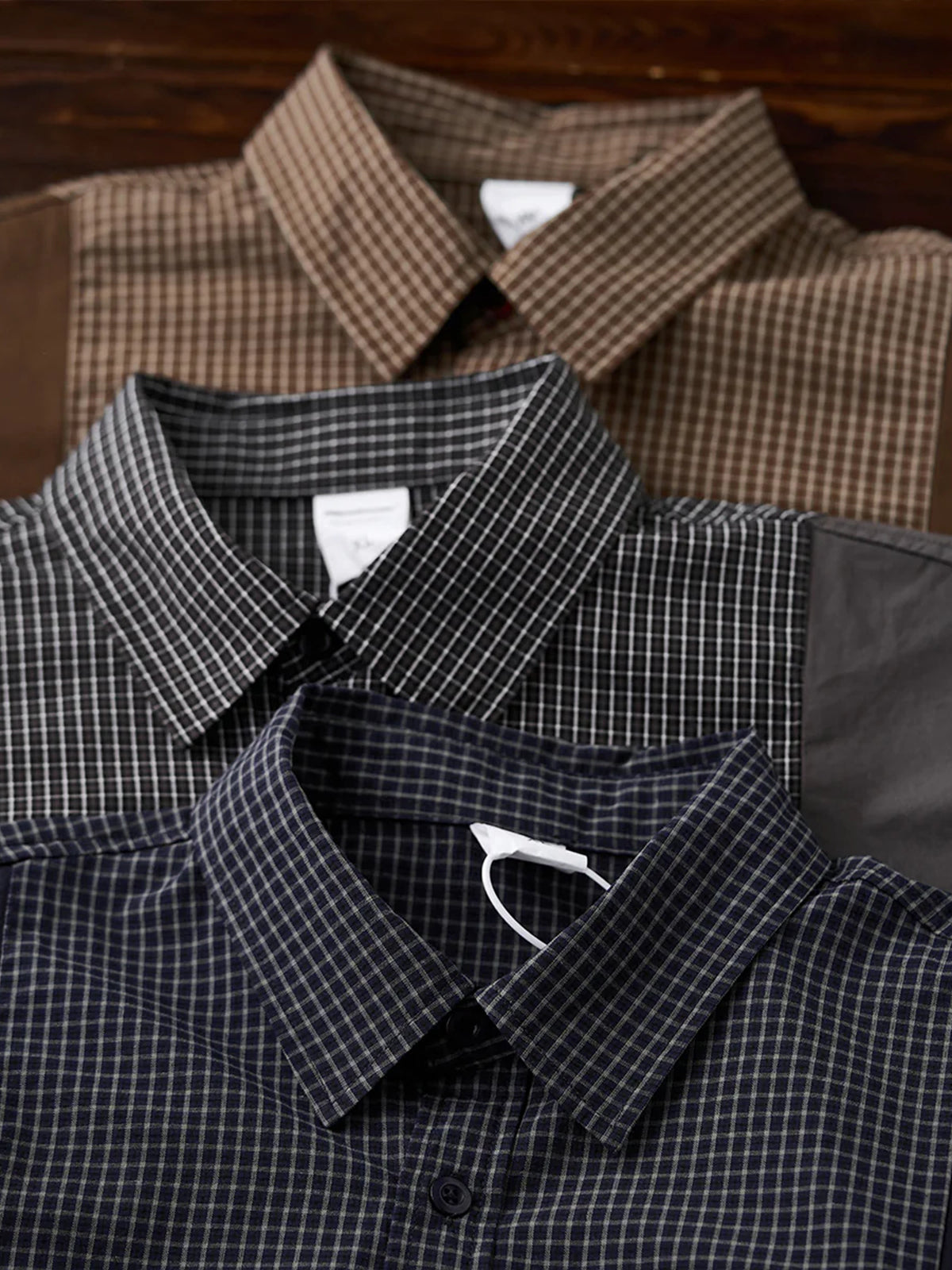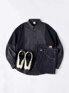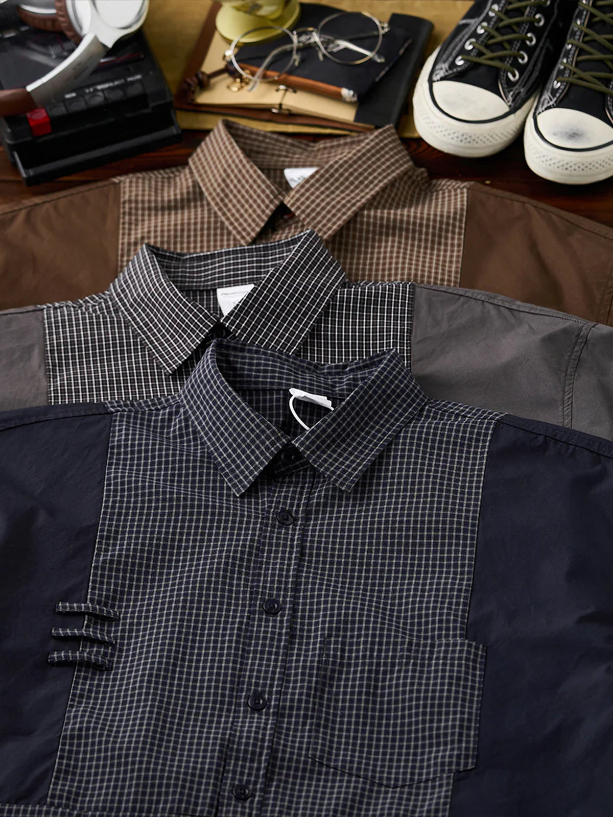 Solid Panel Patchwork Plaid Work Shirt - Three Colors