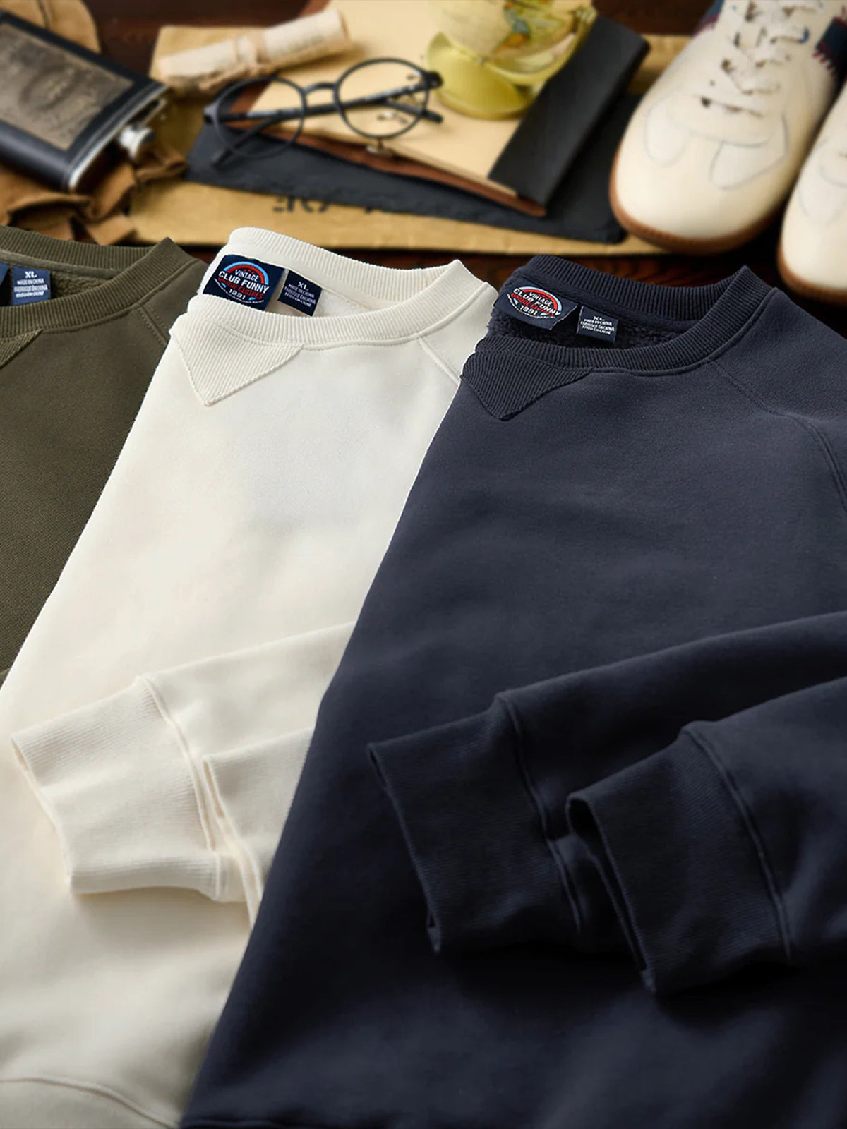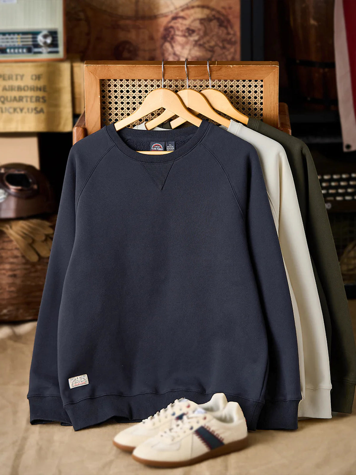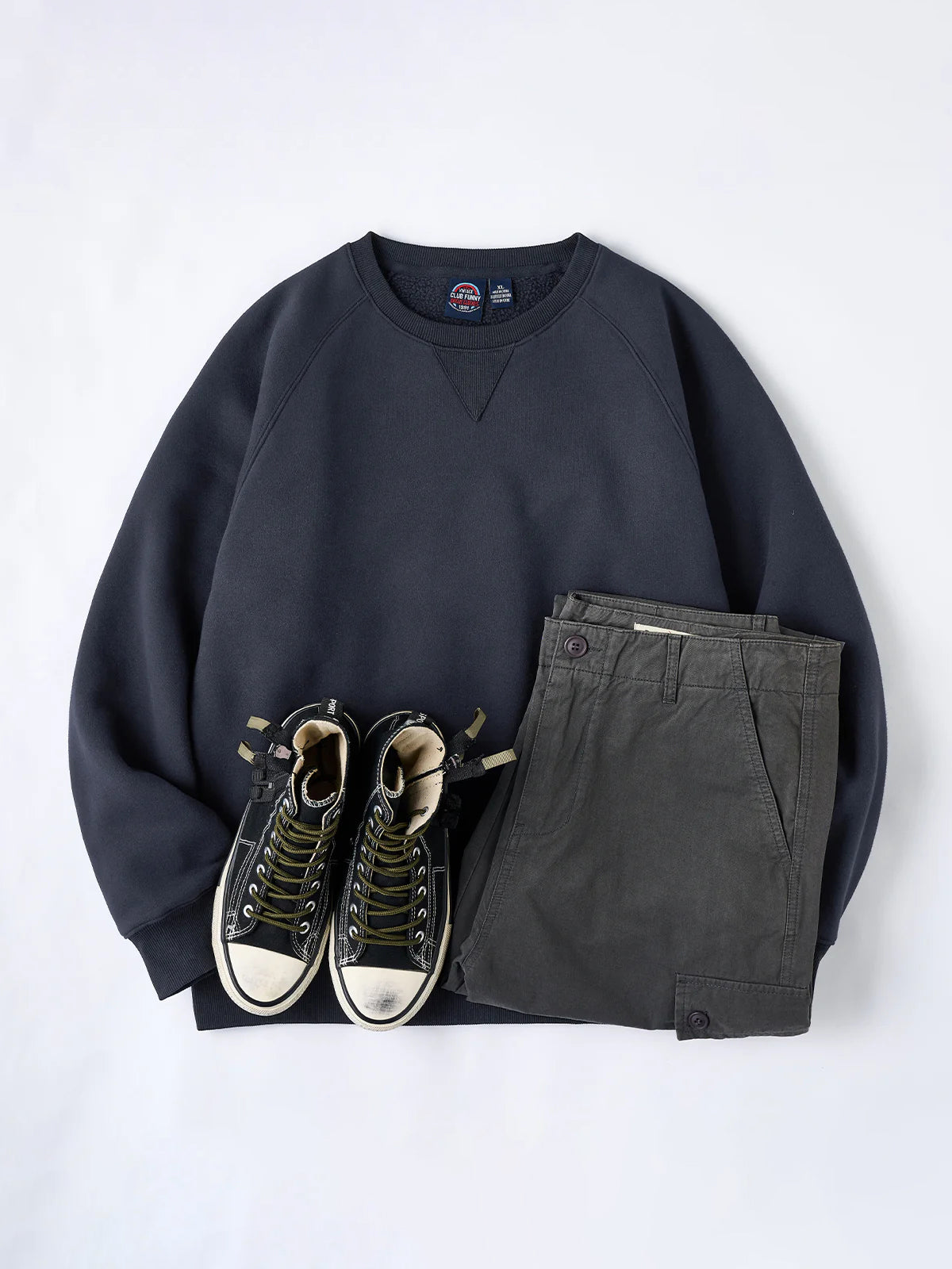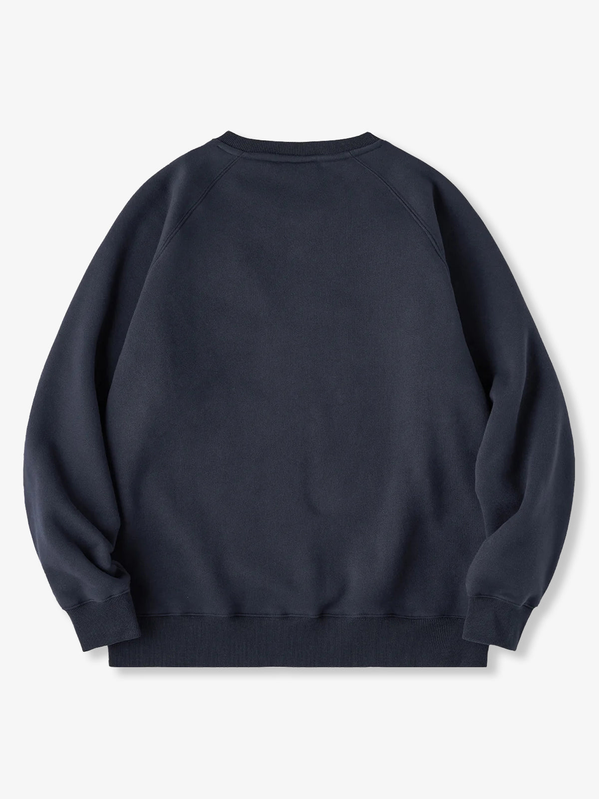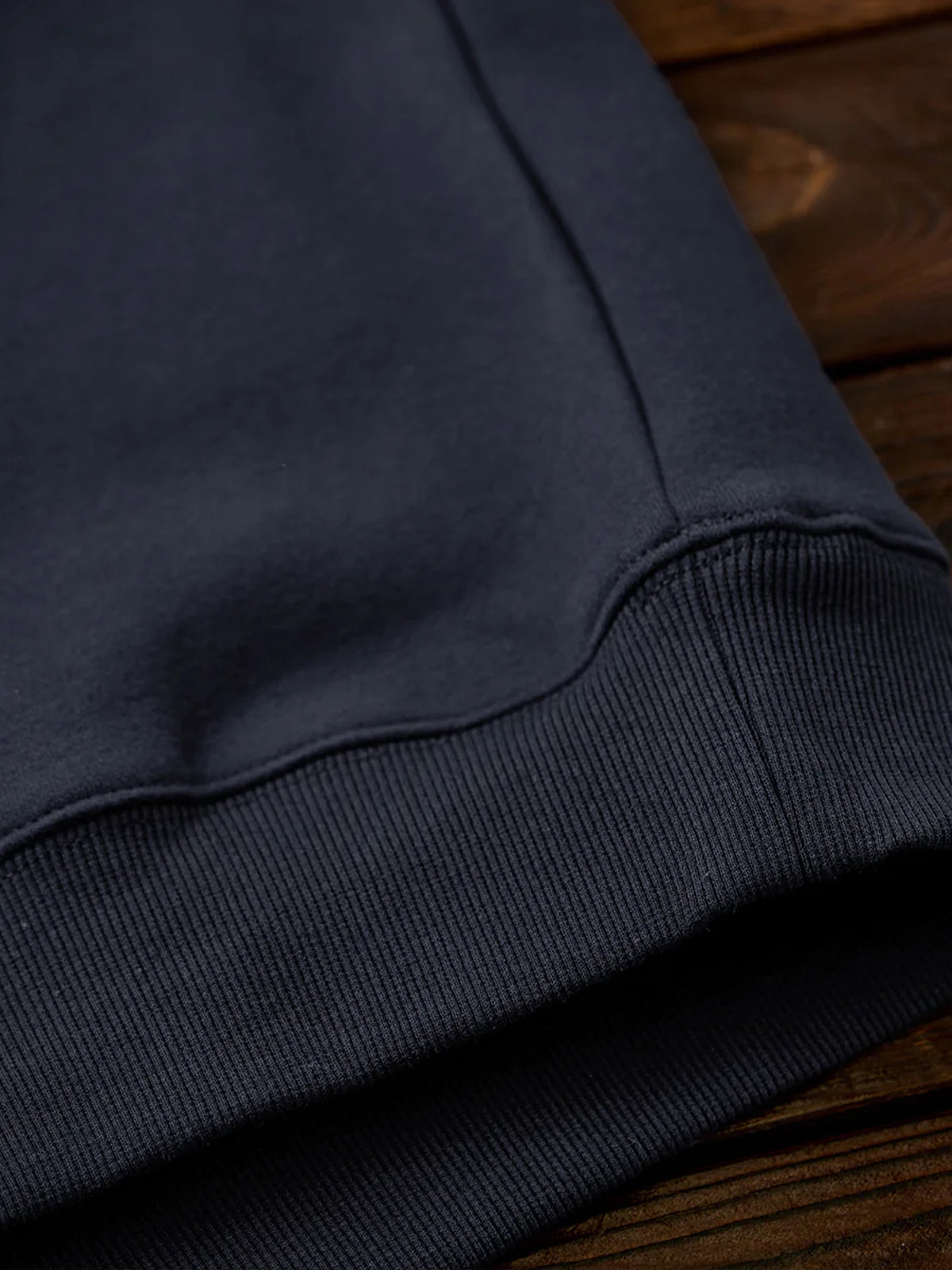Brushed Fleece American Casual Heavyweight Navy Crewneck Sweatshirt