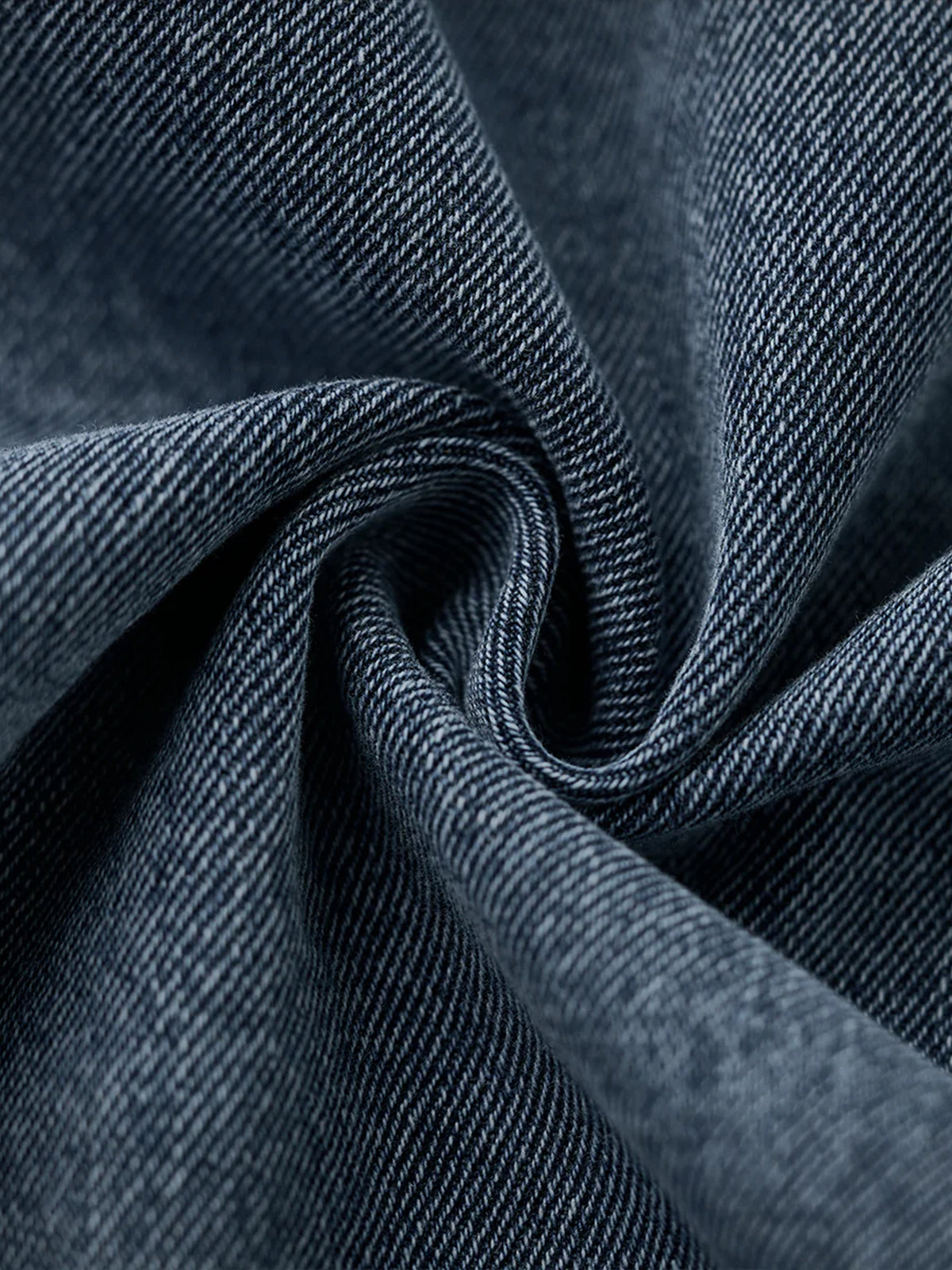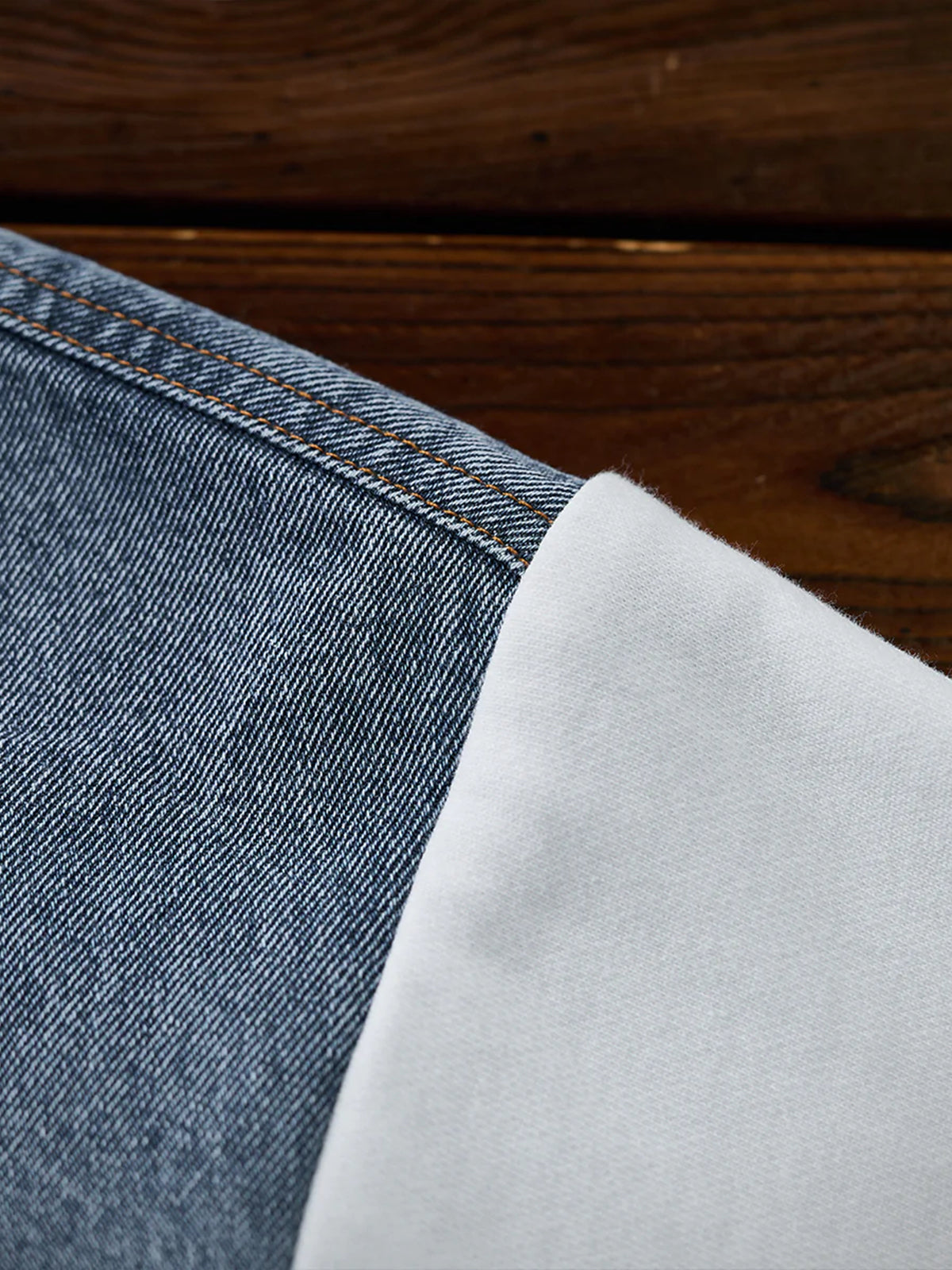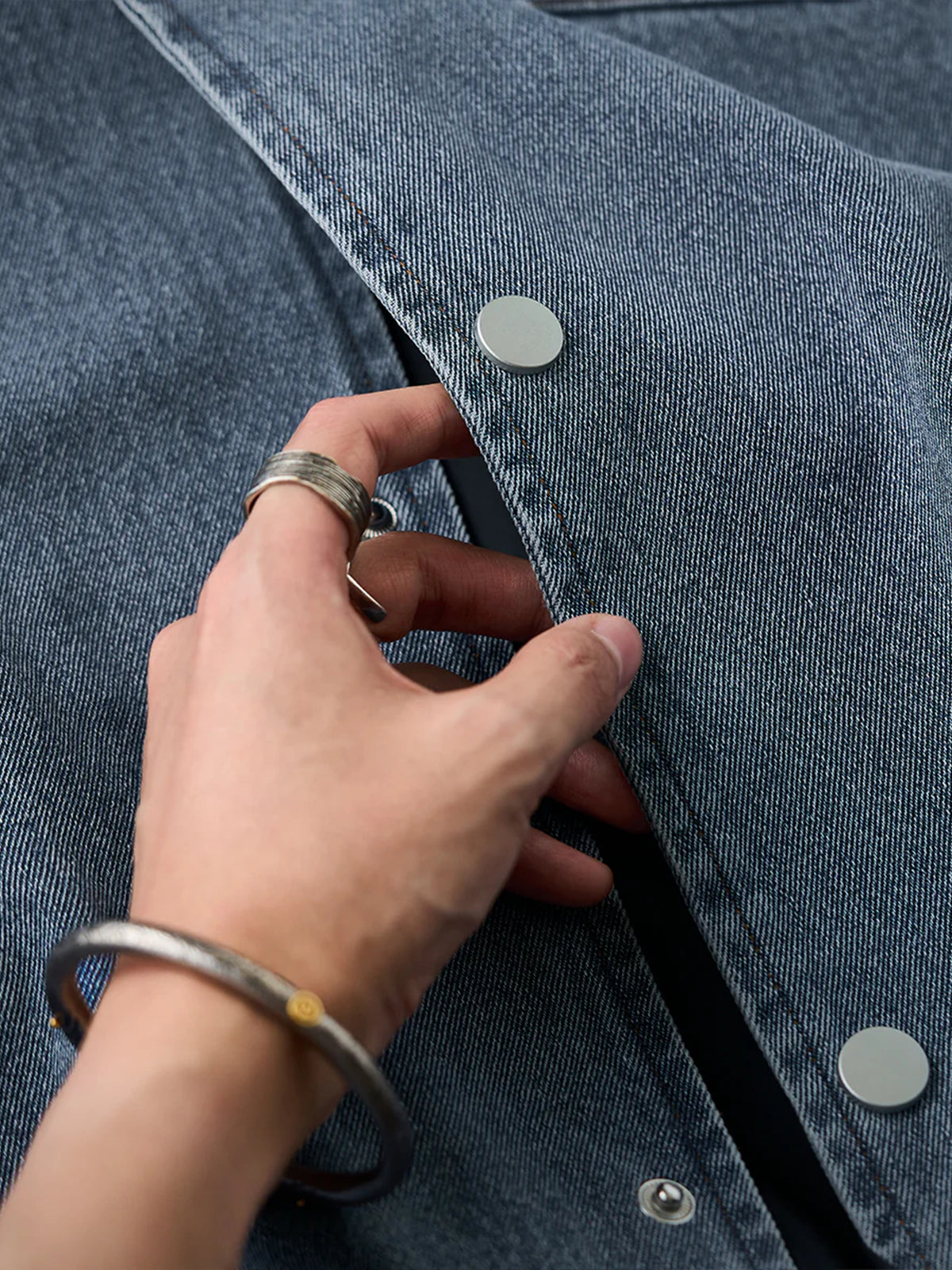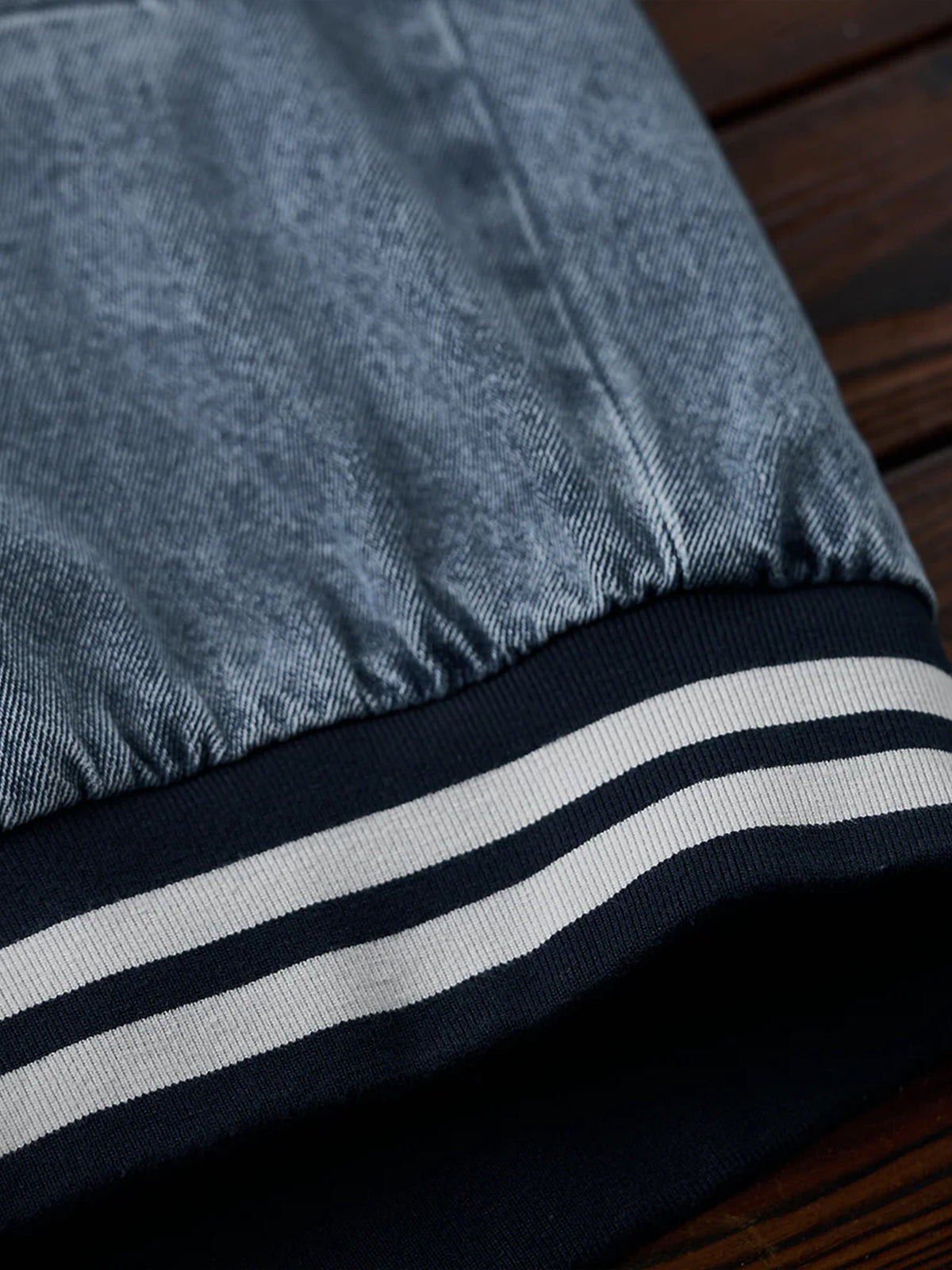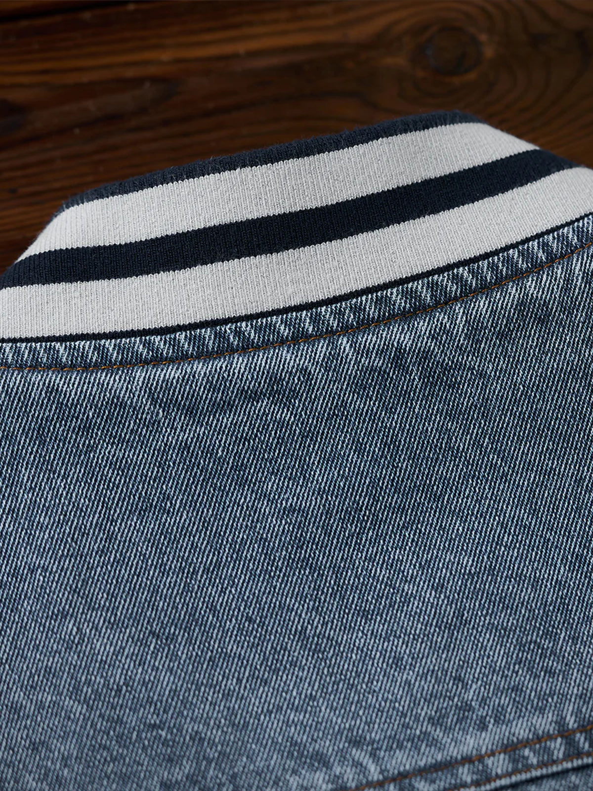 [Pre-Order] Denim Baseball Jacket with Contrasting Sleeve Material & Multiple Pockets