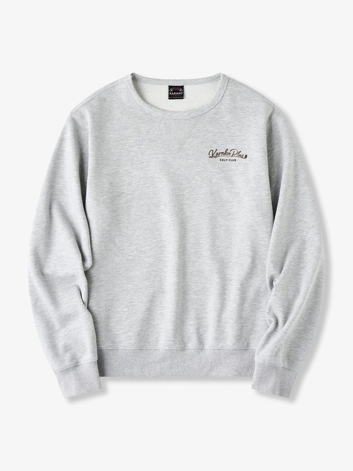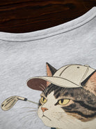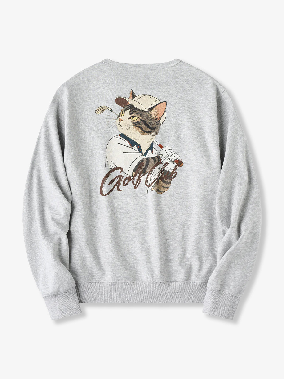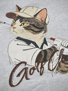 A simple logo print is placed on the front for a clean, understated look. The V-gusset detail at the neckline incorporates a traditional element of classic sweatshirts, balancing design appeal with functionality. On the back, a bold graphic depicts a cat wearing a hat turning mid-golf swing, capturing a moment full of movement and energy. The playful illustration adds humor and a sense of story to the piece. Designed with a basic silhouette, it works well worn on its own or layered under outerwear, making it an ideal sweatshirt for adding subtle character to casual outfits.