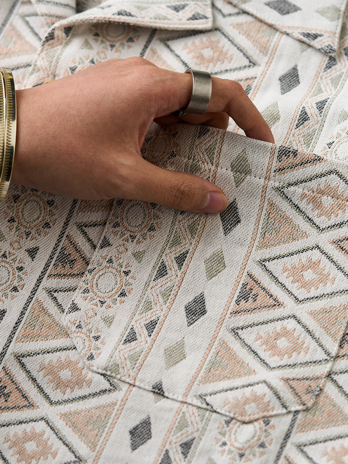 [Pre-order] Ethnic Jacquard-Woven Tencel-Blend Cuban Shirt