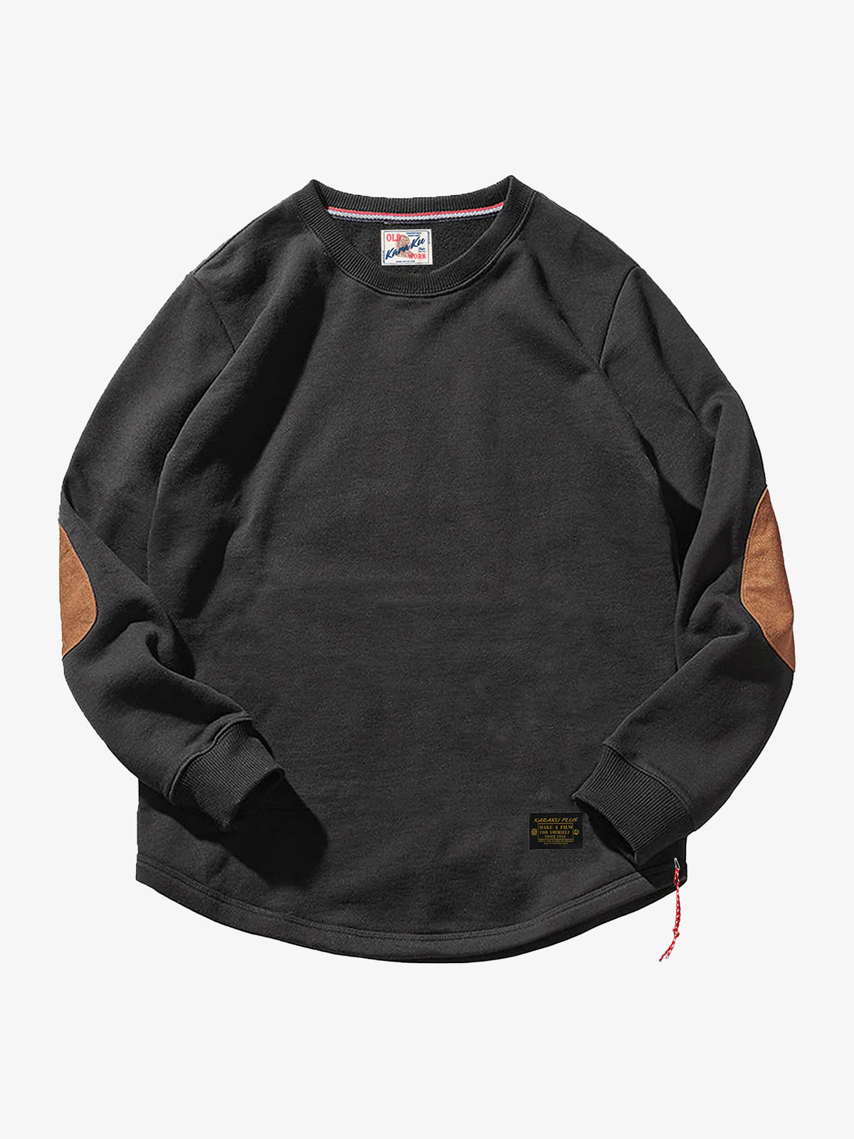 [Pre-Order] Terry-Lined Crewneck Sweatshirt with Red Drawstring & Suede Elbow Patches