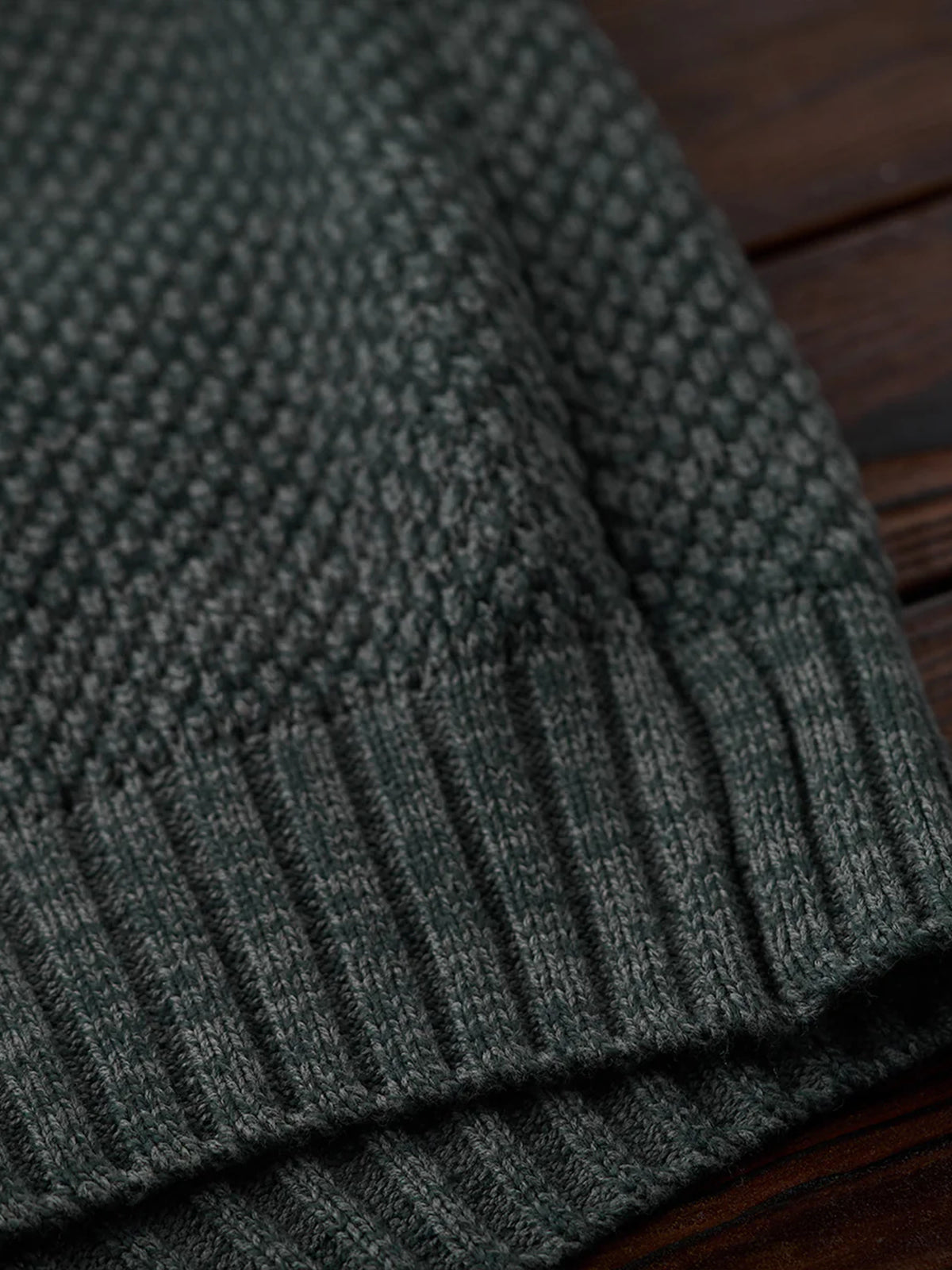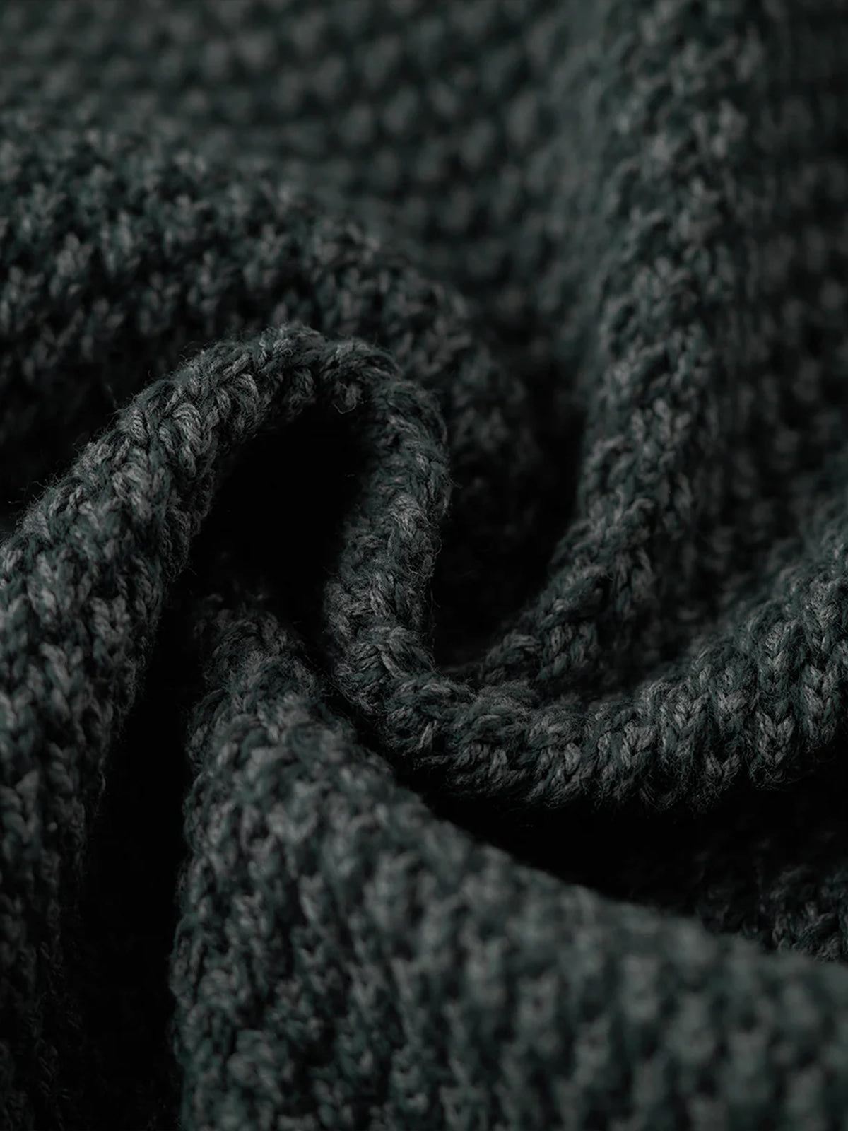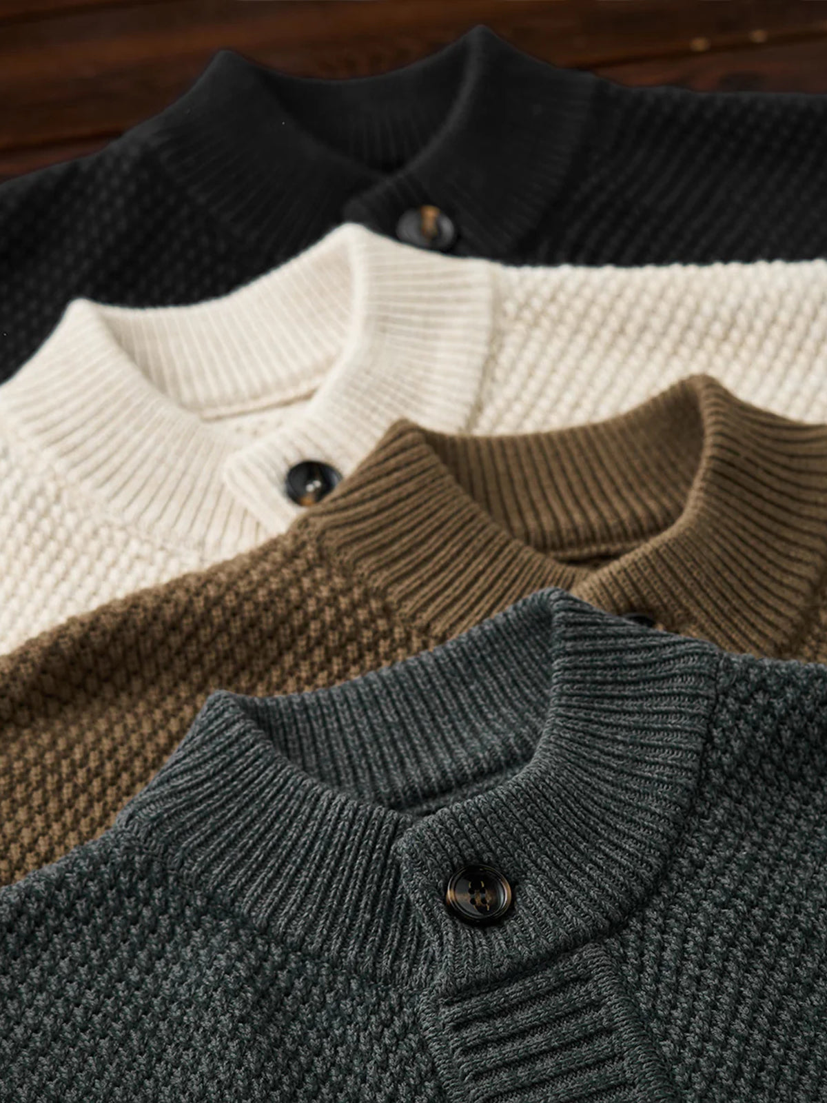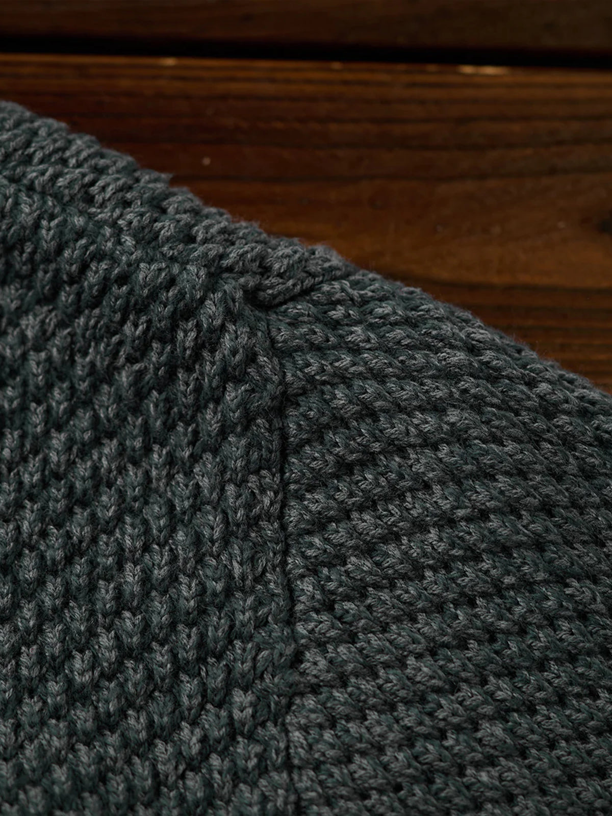 A relaxed-fit cardigan featuring a classic button-front closure for a clean, understated look. The cuffs, hem, and collar are ribbed, providing stretch and a comfortable, snug fit. The entire piece showcases a fine pineapple pile knit texture, adding depth, durability, and warmth while maintaining a luxurious feel. Its relaxed silhouette allows for easy layering, making it ideal for colder seasons.