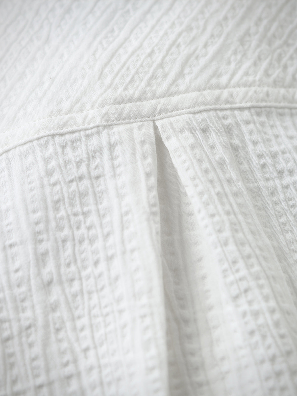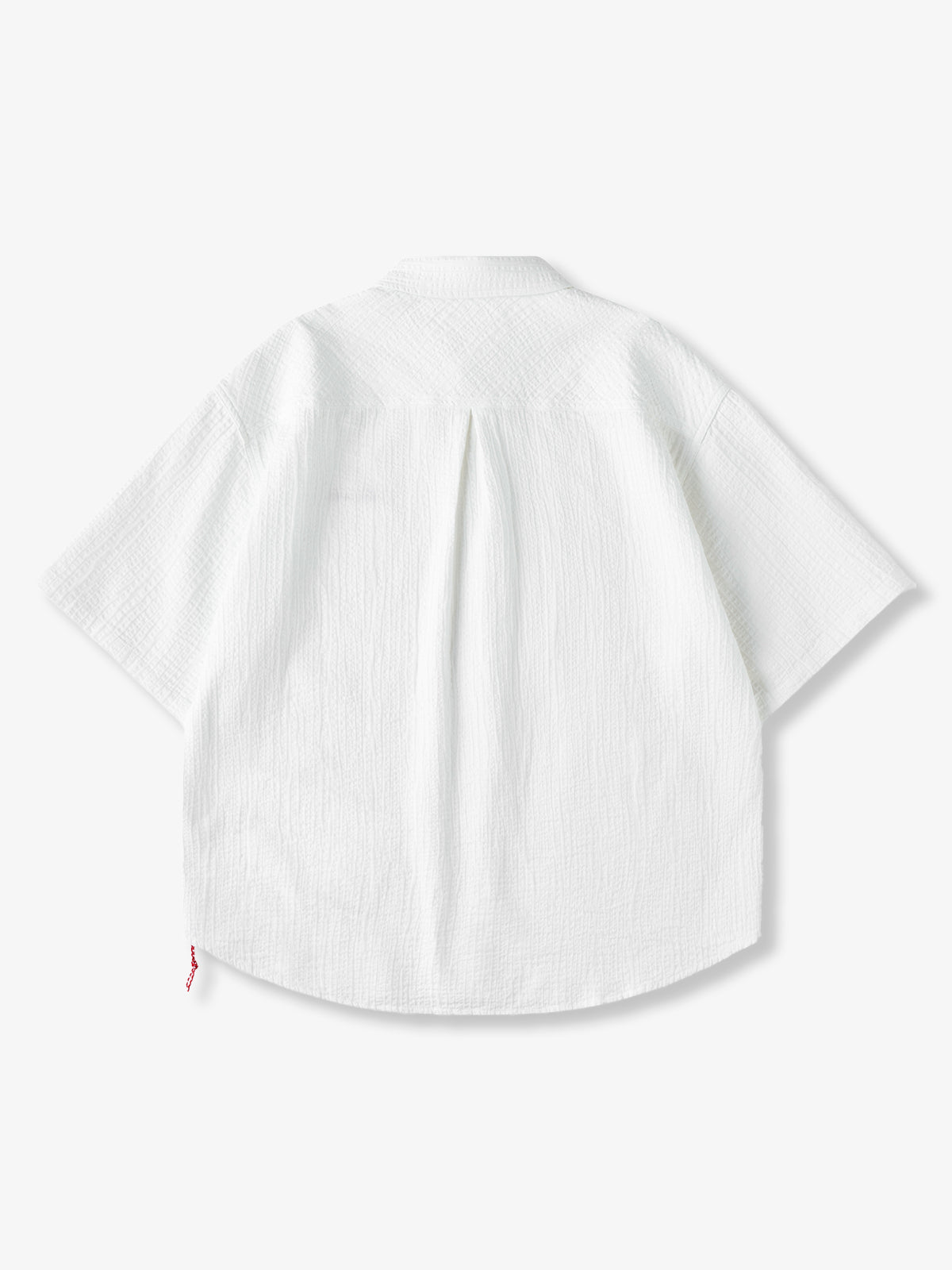 A textured short-sleeve shirt designed for those who appreciate understated character. The fabric features a subtle woven surface with raised texture, giving depth and dimension to an otherwise minimalist design.