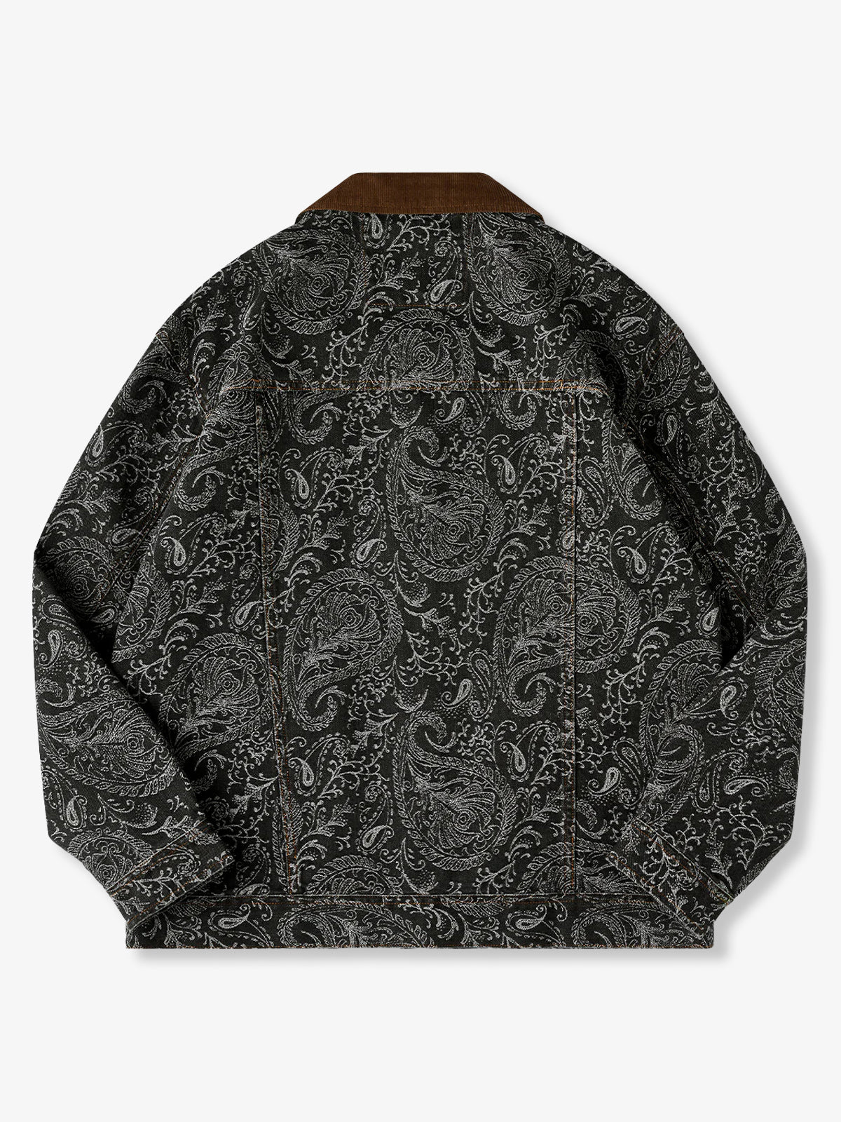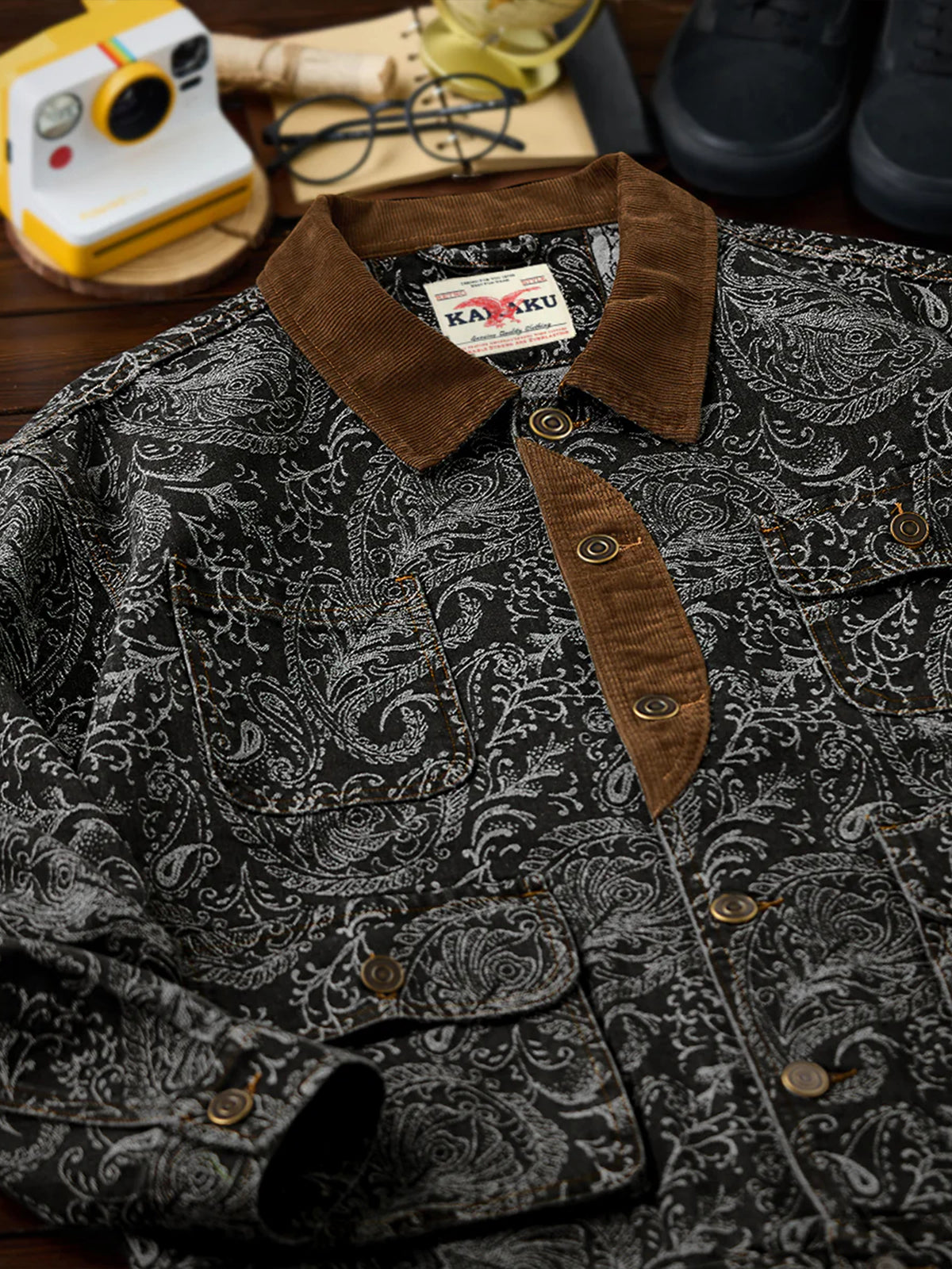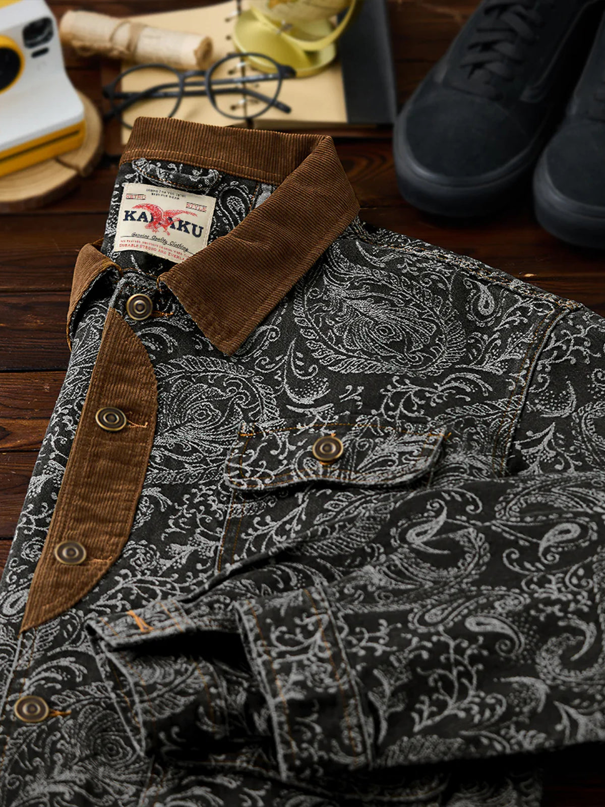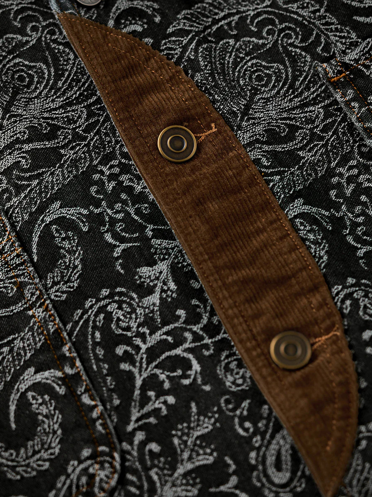 [Pre-Order] Paisley Jacquard Denim Jacket with Corduroy Contrast Panels
