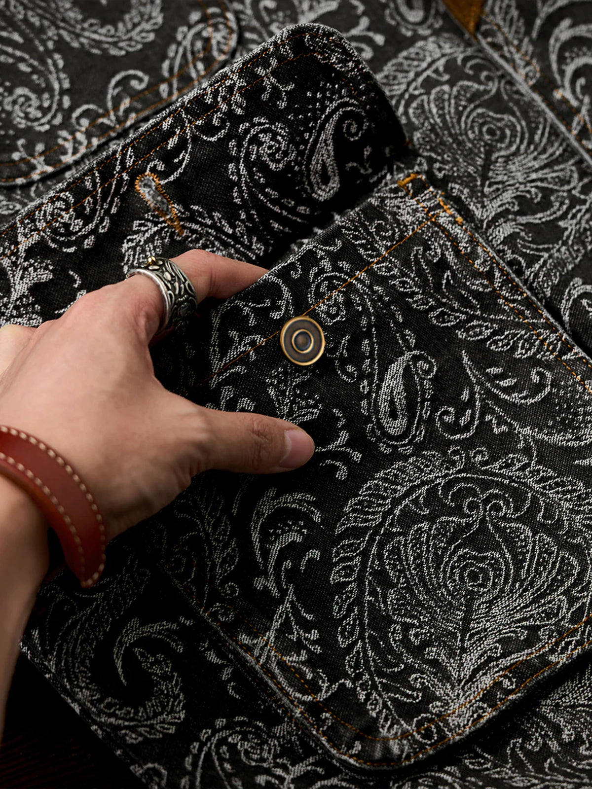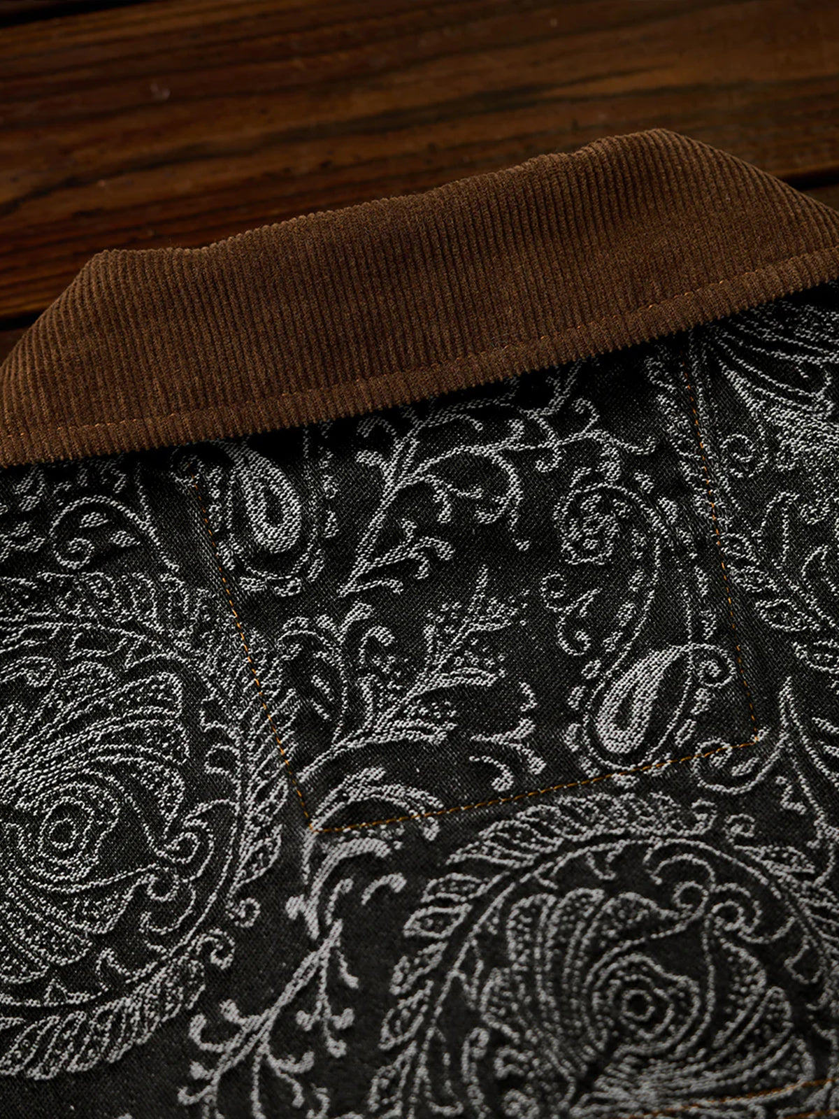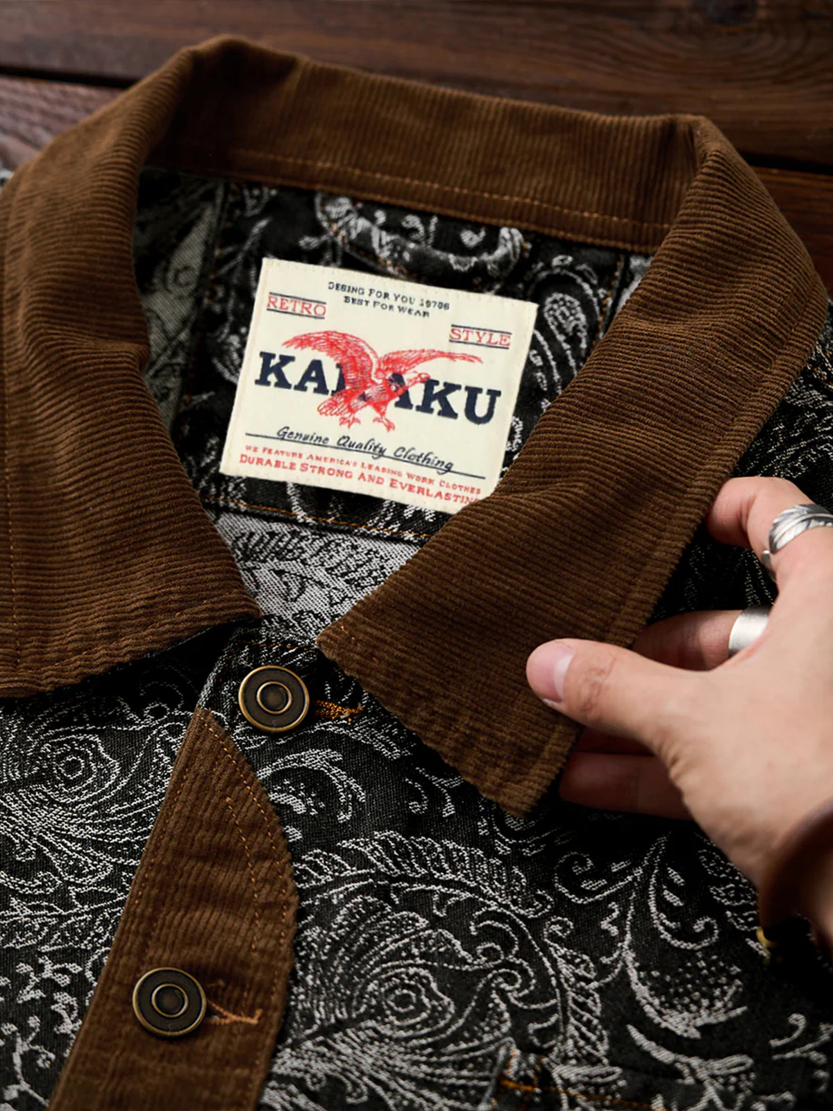 [Pre-Order] Paisley Jacquard Denim Jacket with Corduroy Contrast Panels